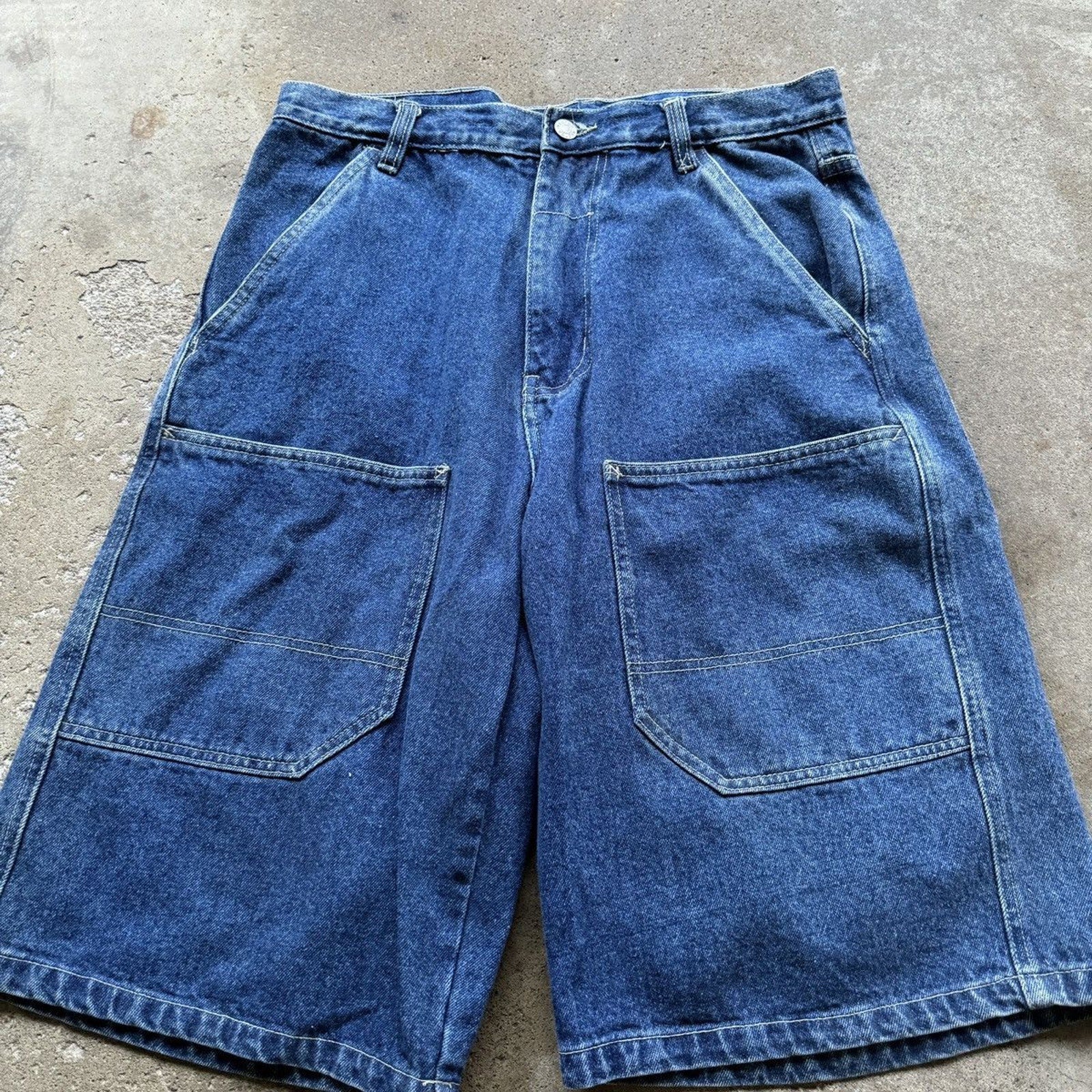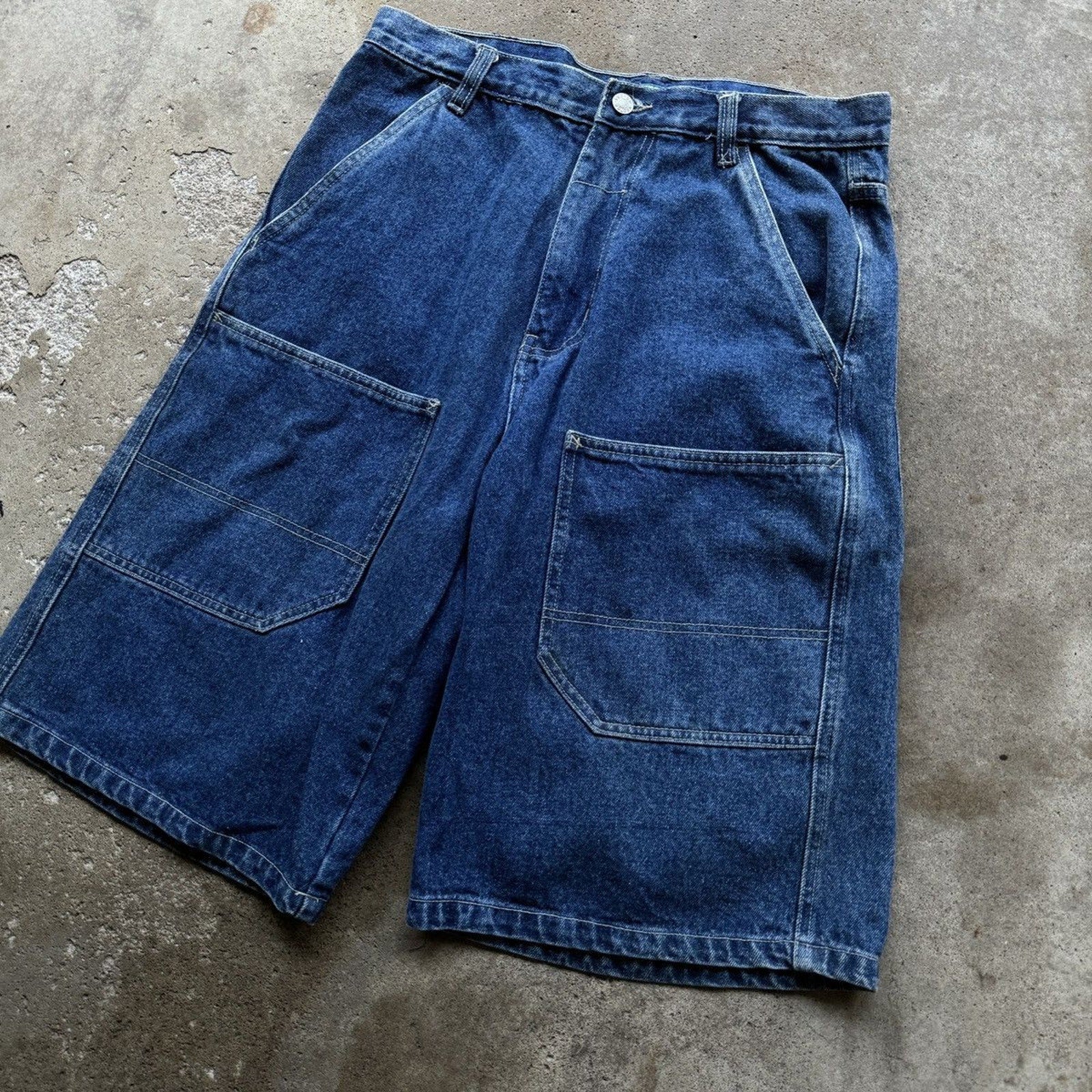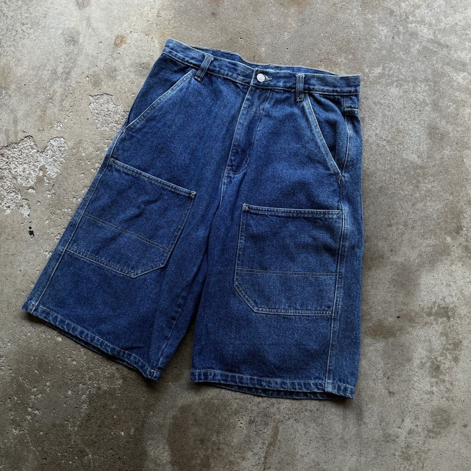 PANTALONES CORTOS VAQUEROS DE PATINISTA CON DOBLE BOLSILLOS Y HONDUREÑOS DE LA DÉCADA DE 1990/2000