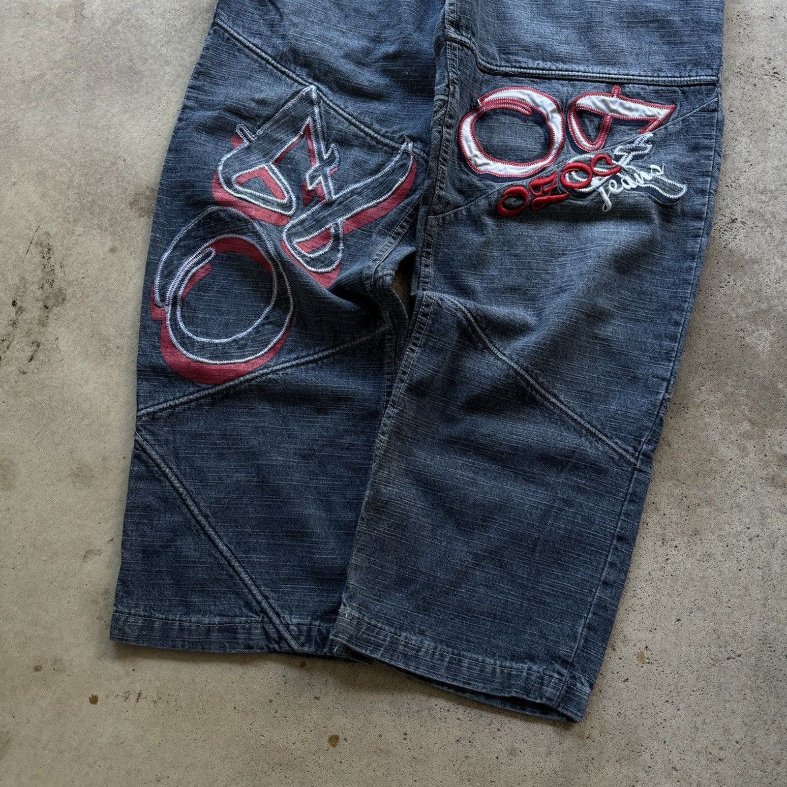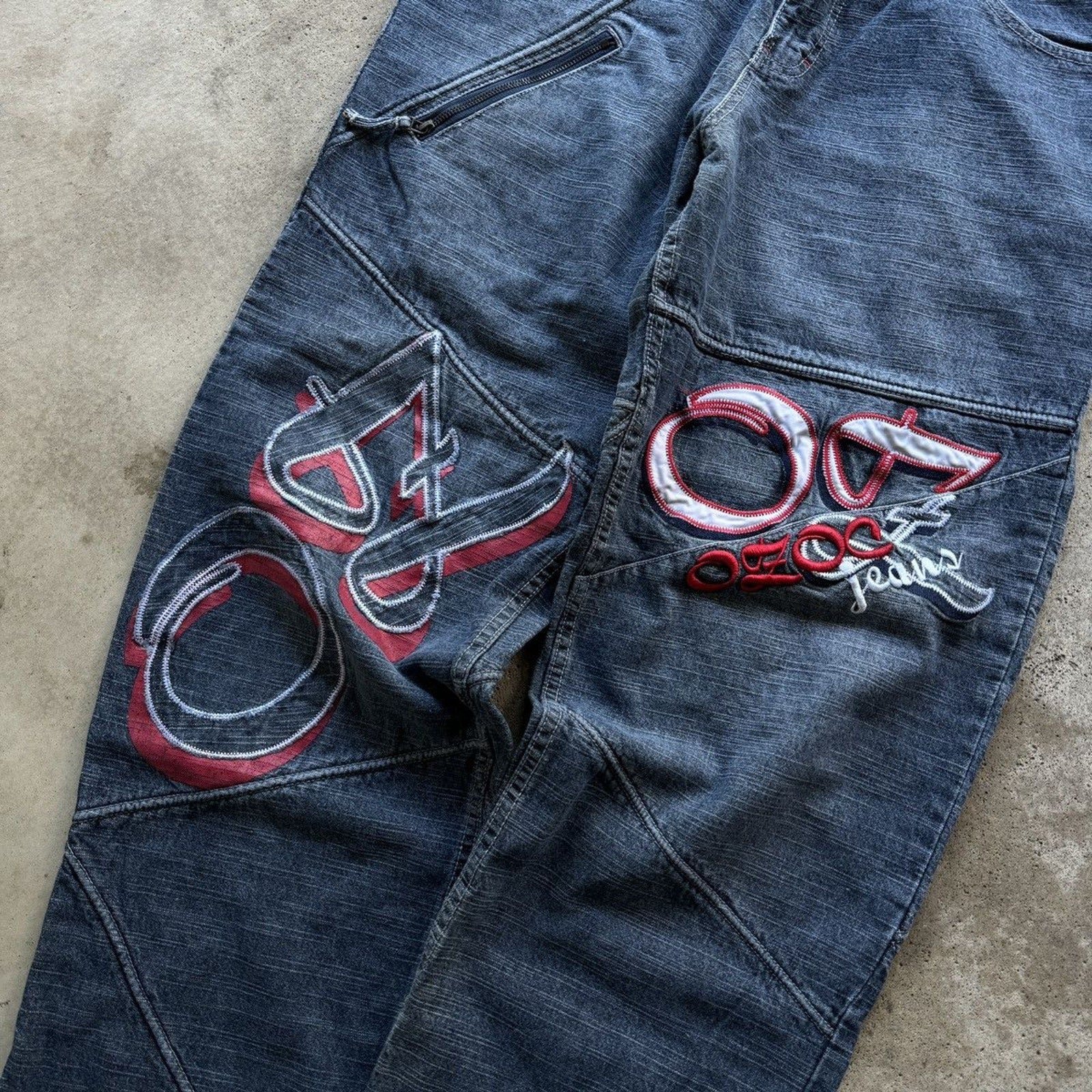 Vaqueros holgados de mezclilla con bordados OZOC, años 90 y 2000, años 2020