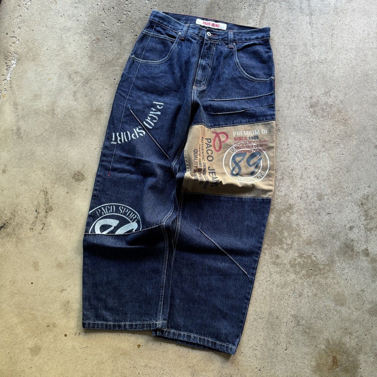 Vaqueros holgados de mezclilla con parches Paco Jeans, años 1990/2000, Y2K