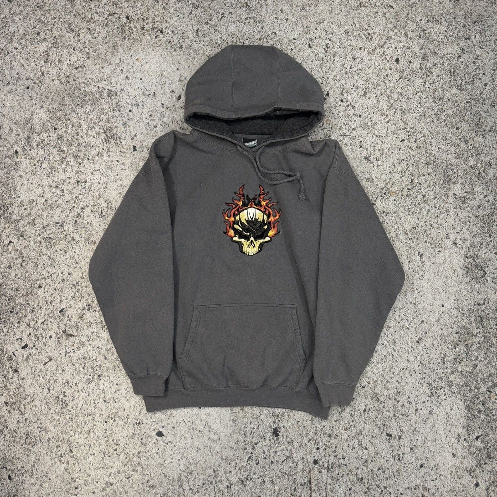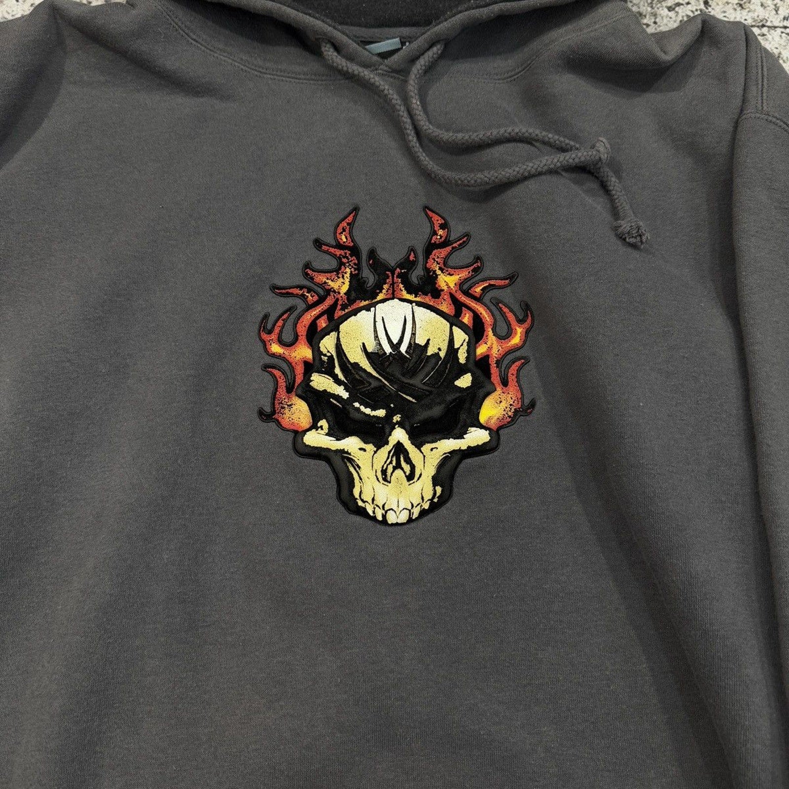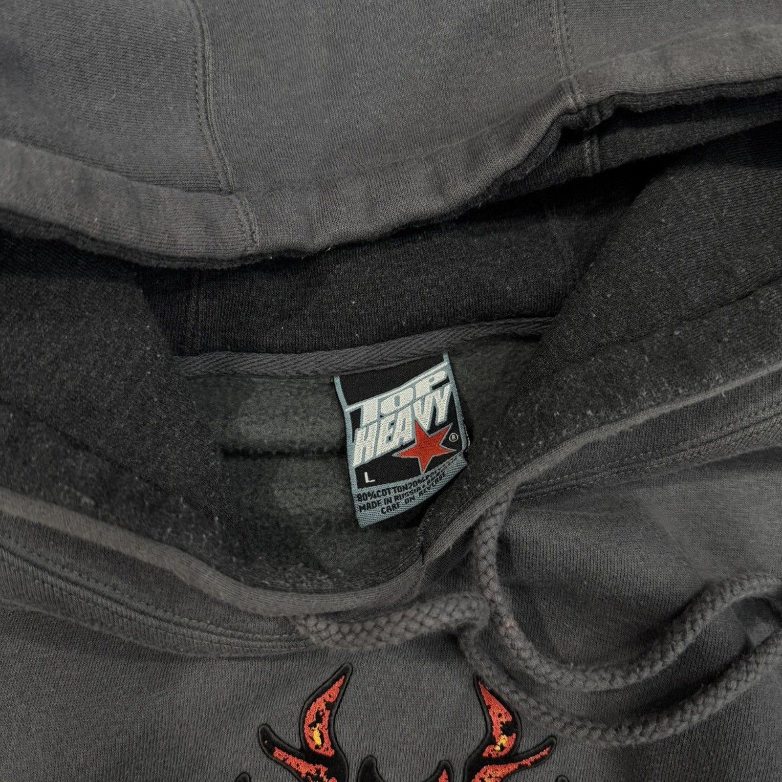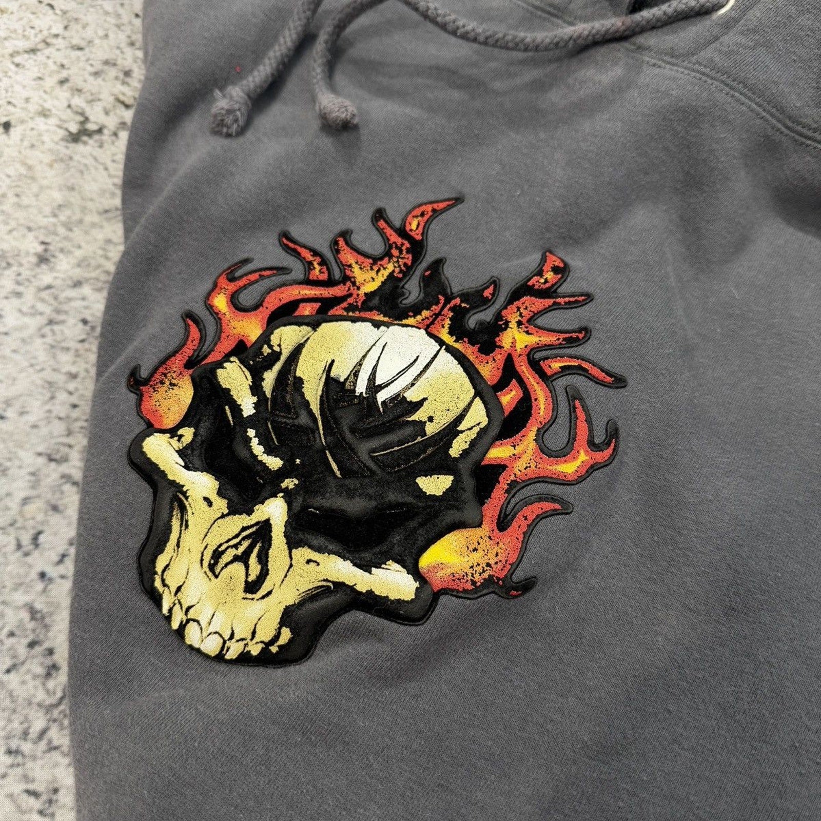 Sudadera con capucha gris con llamas en relieve, años 90/2000, Y2K