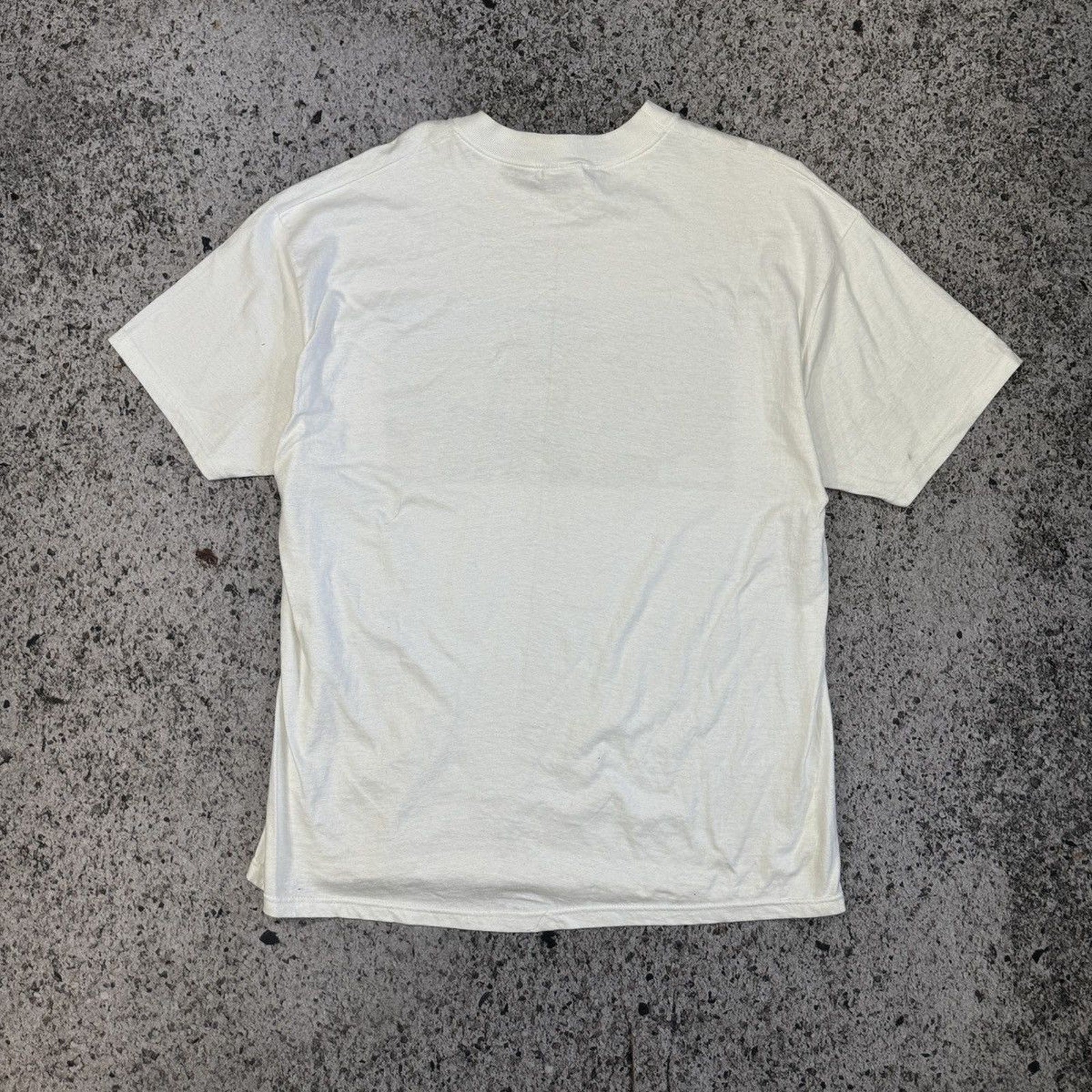 Nuestras tallas se determinan según las medidas tomadas a mano, en lugar de la talla indicada en la etiqueta de la prenda. Muchas prendas, especialmente la ropa vintage, suelen tener medidas diferentes a las indicadas en la etiqueta. Una camiseta talla grande estándar de hace décadas suele tener un calce distinto al de una talla grande estándar de tallas modernas, debido a cambios en los estándares de fabricación, diferentes prácticas según la marca, encogimiento, envejecimiento, variaciones en los tejidos y materiales, etc.