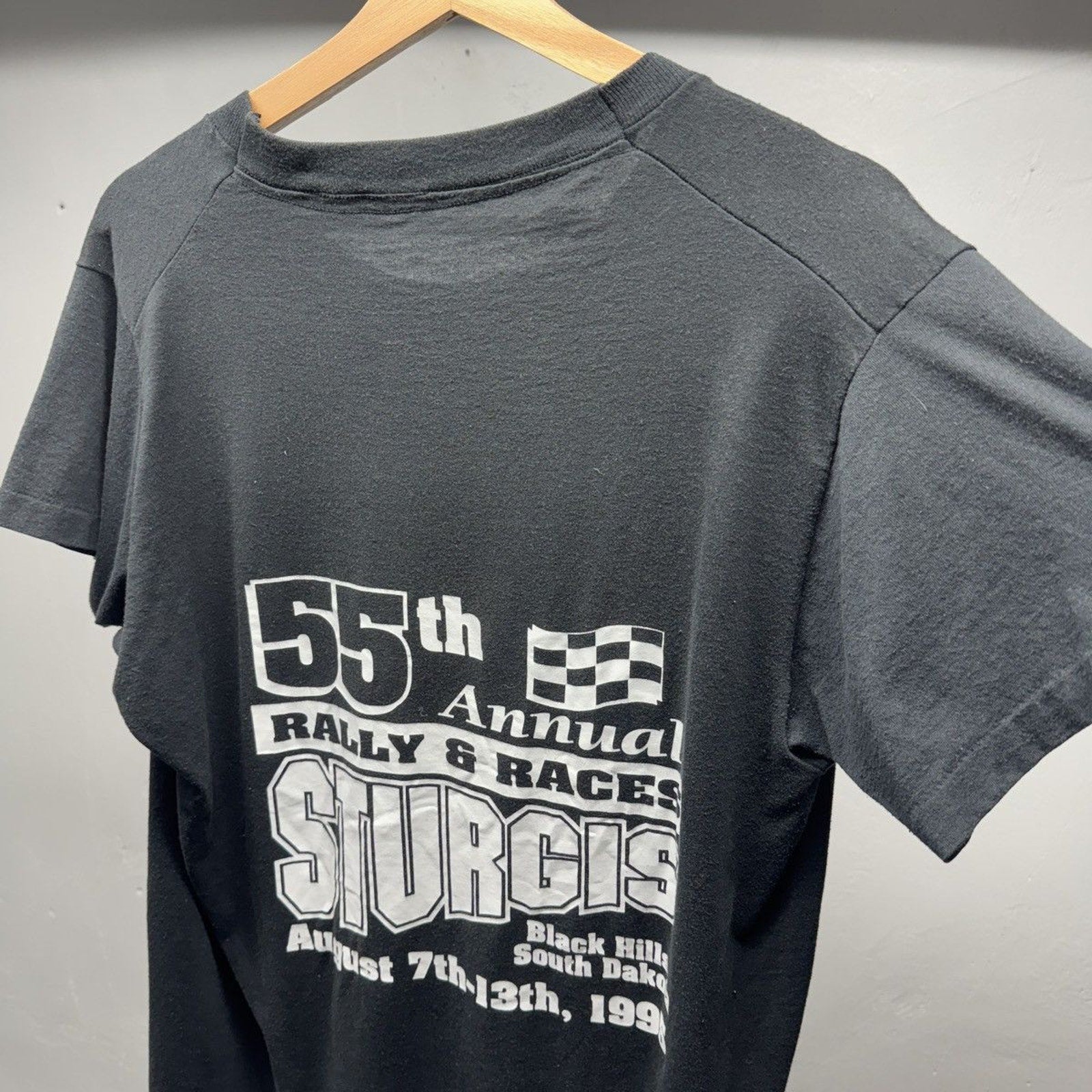 Nuestras tallas se determinan según las medidas tomadas a mano, en lugar de la talla indicada en la etiqueta de la prenda. Muchas prendas, especialmente la ropa vintage, suelen tener medidas diferentes a las indicadas en la etiqueta. Una camiseta talla grande estándar de hace décadas suele tener un calce distinto al de una talla grande estándar de tallas modernas, debido a cambios en los estándares de fabricación, diferentes prácticas según la marca, encogimiento, envejecimiento, variaciones en los tejidos y materiales, etc.