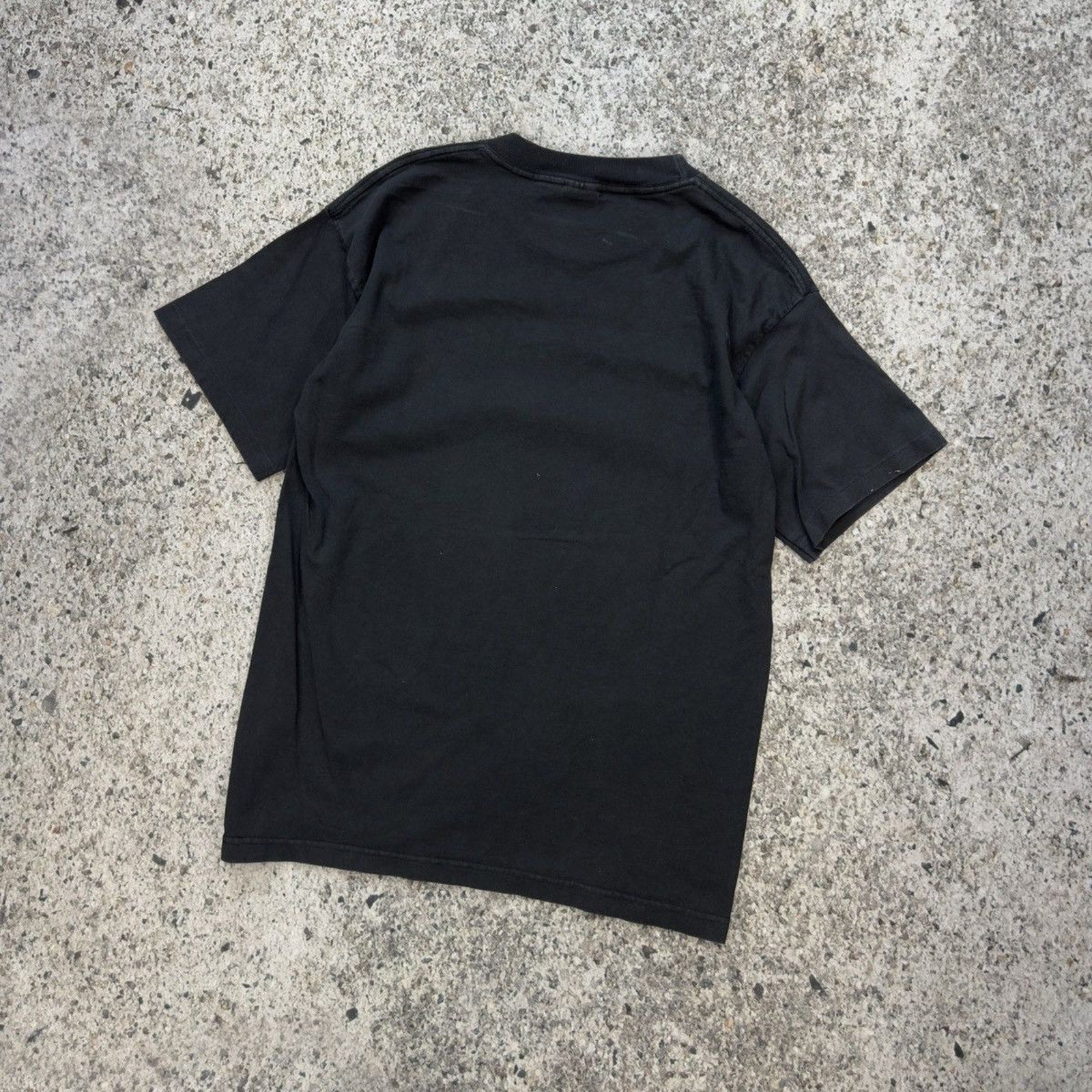 Nuestras tallas se determinan según las medidas tomadas a mano, en lugar de la talla indicada en la etiqueta de la prenda. Muchas prendas, especialmente la ropa vintage, suelen tener medidas diferentes a las indicadas en la etiqueta. Una camiseta talla grande estándar de hace décadas suele tener un calce distinto al de una talla grande estándar de tallas modernas, debido a cambios en los estándares de fabricación, diferentes prácticas según la marca, encogimiento, envejecimiento, variaciones en los tejidos y materiales, etc.