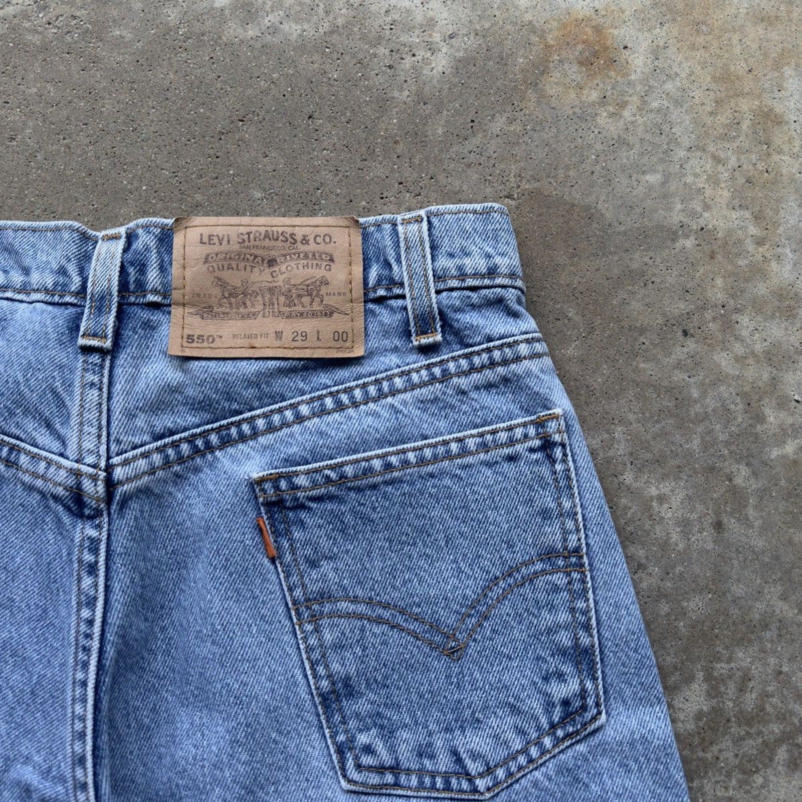 Pantalones cortos vaqueros holgados de mezclilla estilo skater con pestaña naranja de Levi's 550 de los años 90