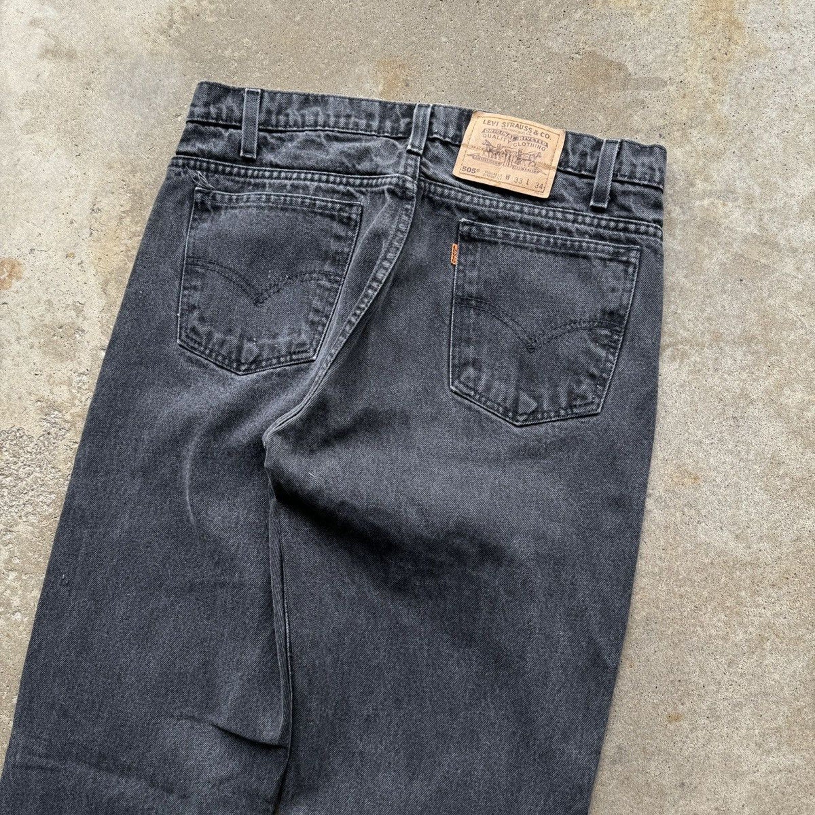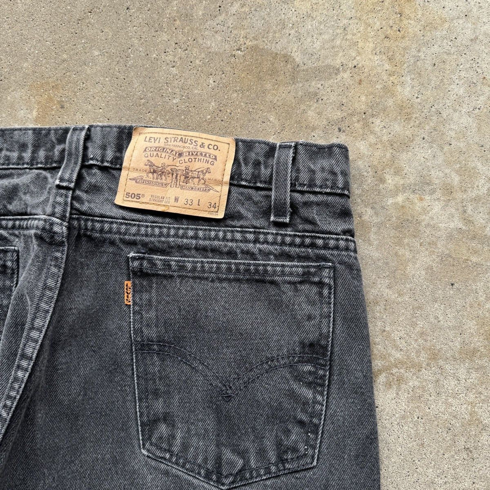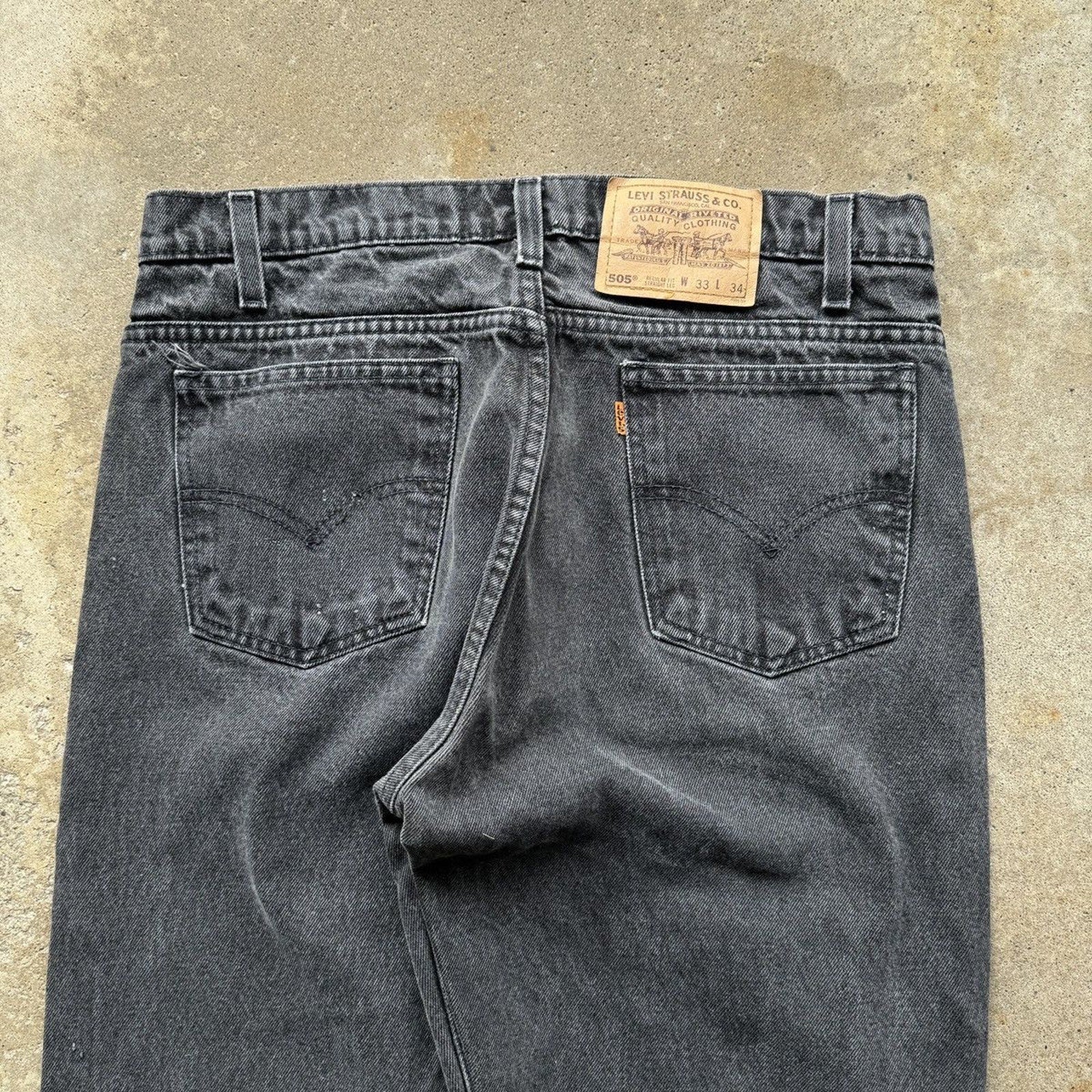 Vaqueros Levi's 505 con lengüeta naranja y negro descolorido de los años 90