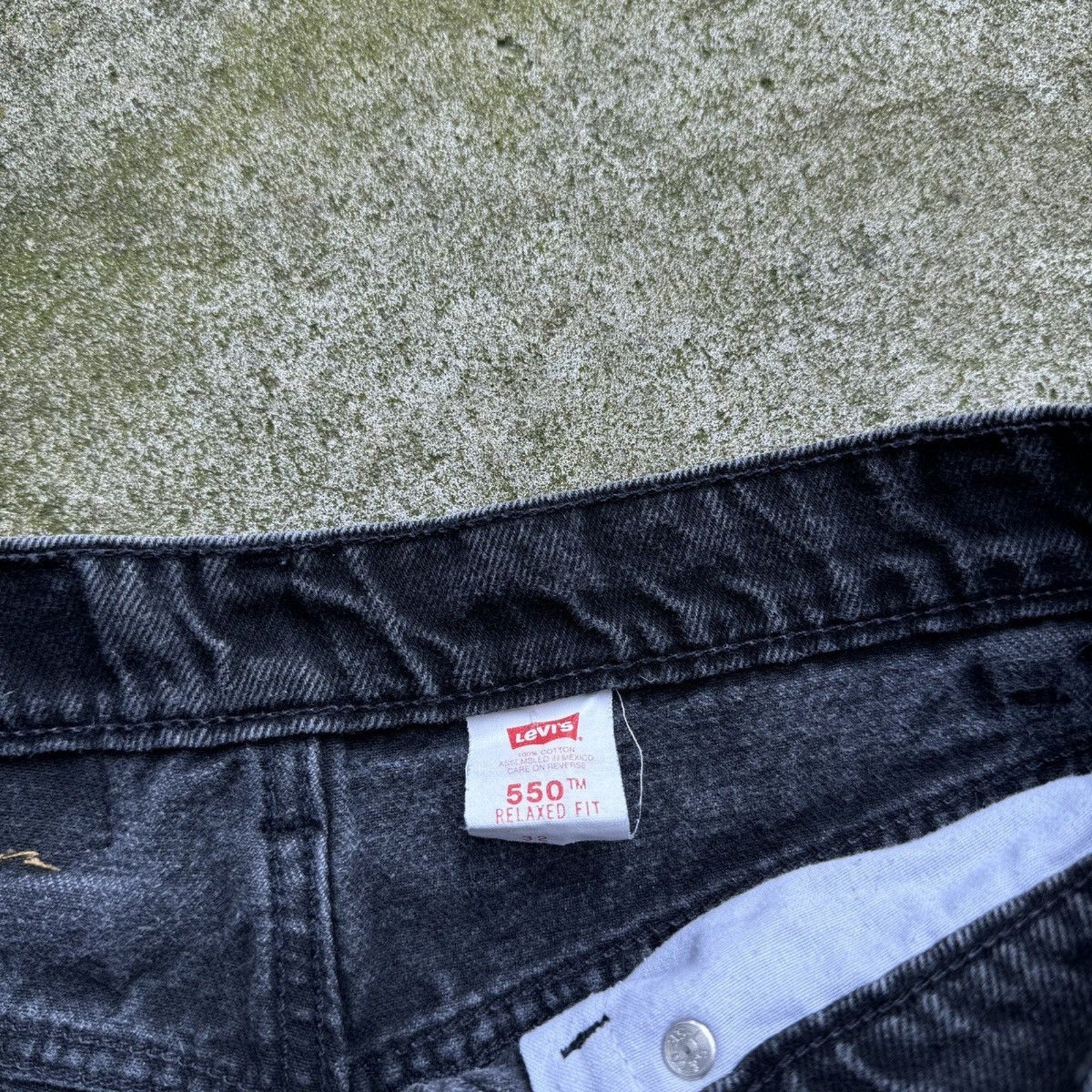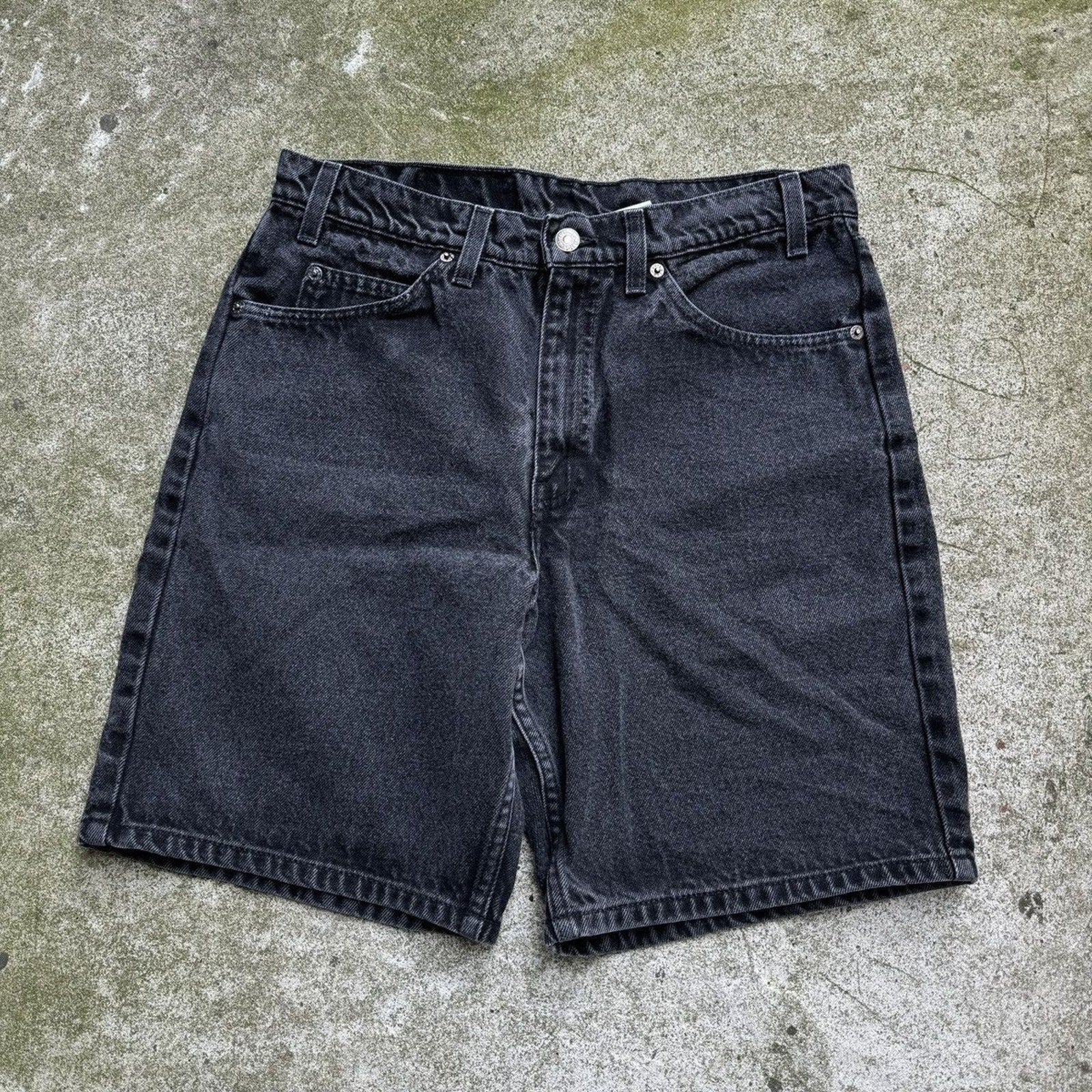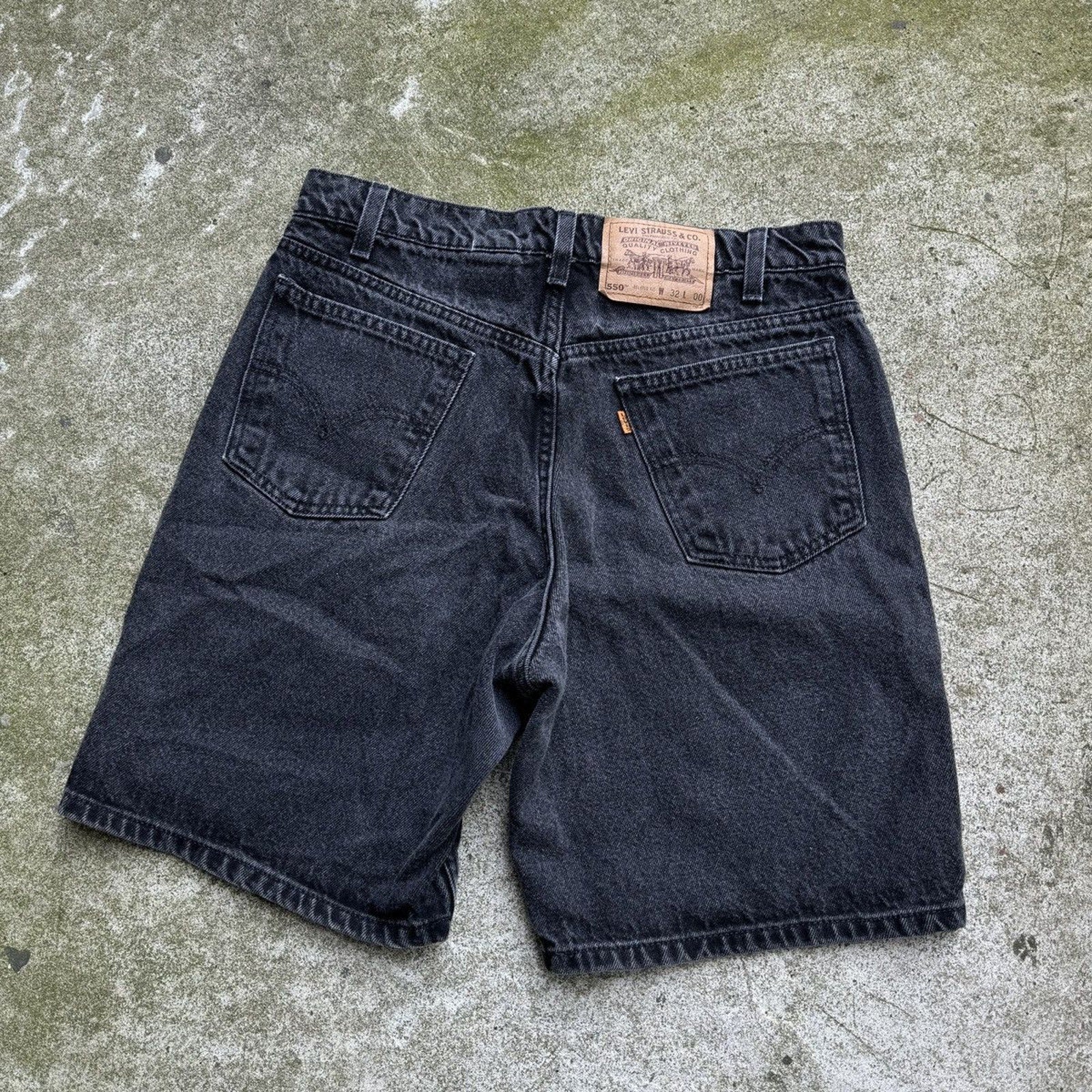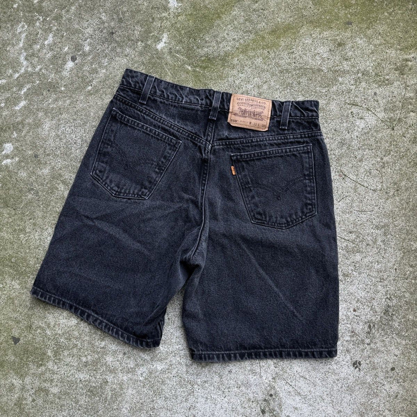 Pantalones cortos vaqueros negros Levi's 550 con pestaña naranja de los años 90