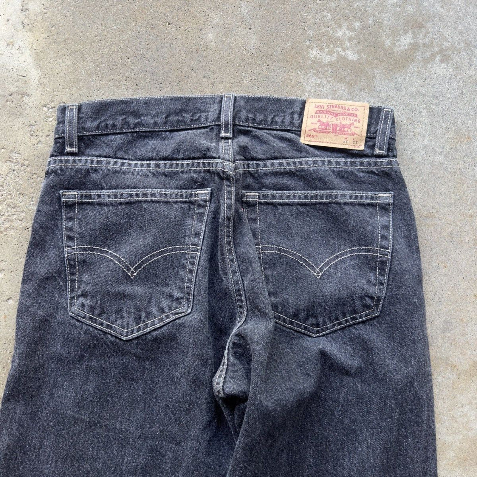 Vaqueros holgados de mezclilla negra Levi's 569 de los años 90