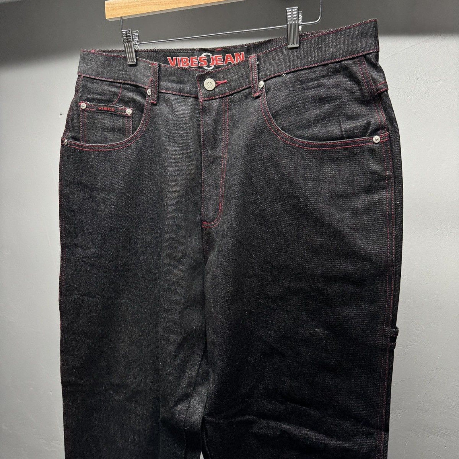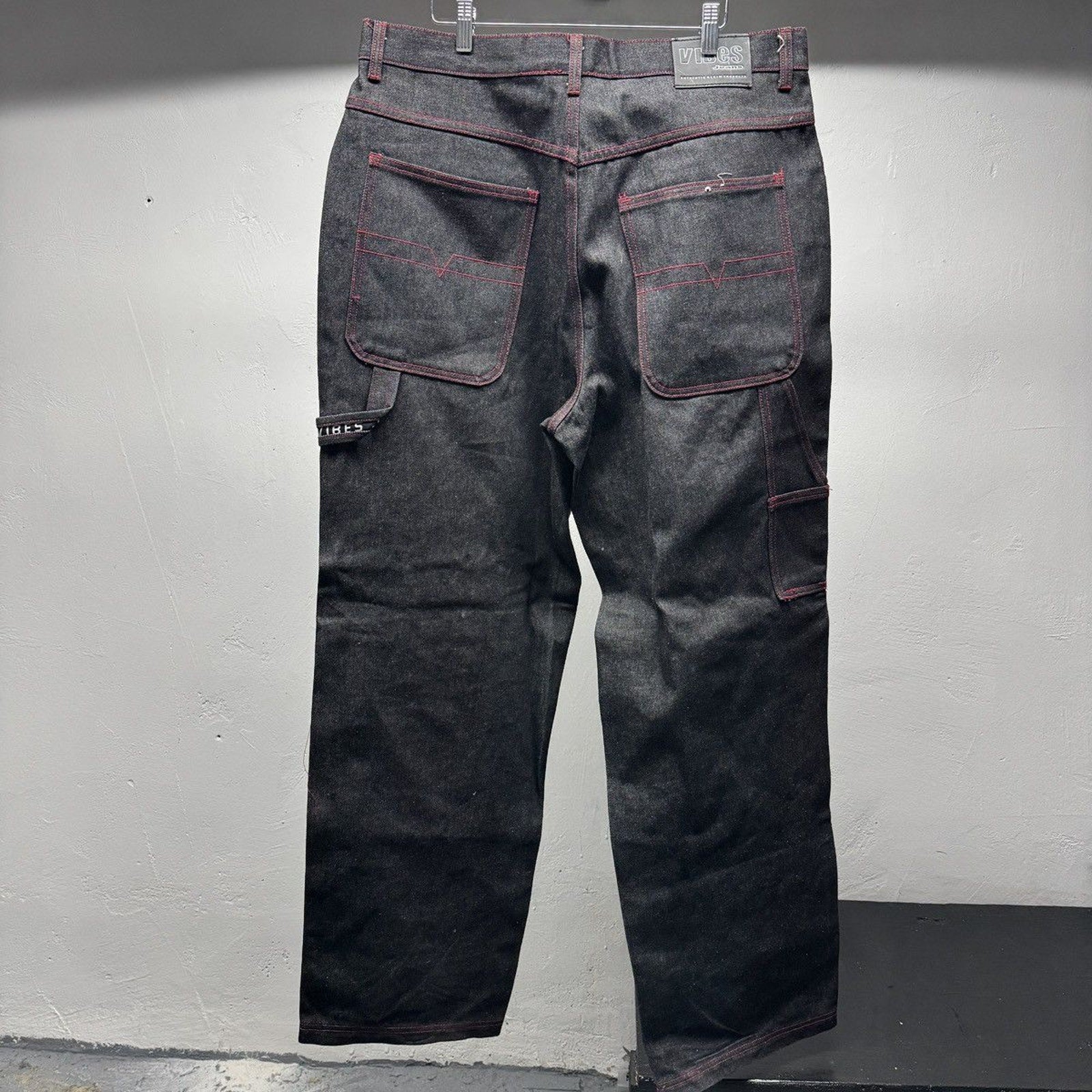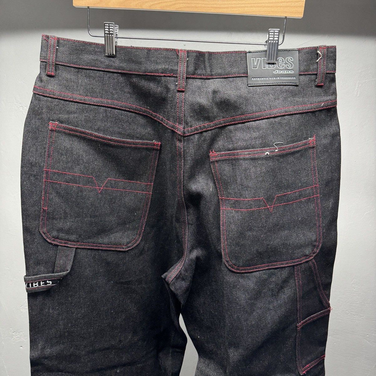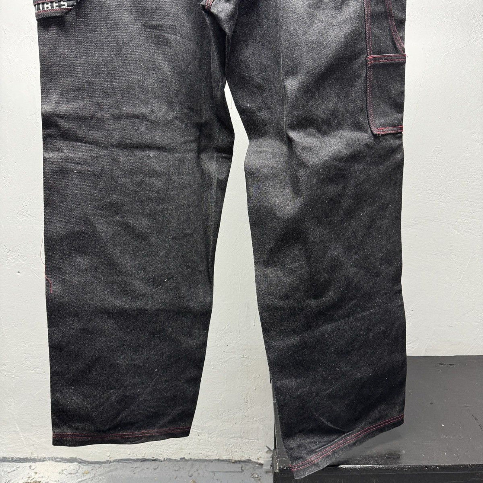 1990s Y2K Black Raw Denim Baggy Wide Leg Skater Jeans