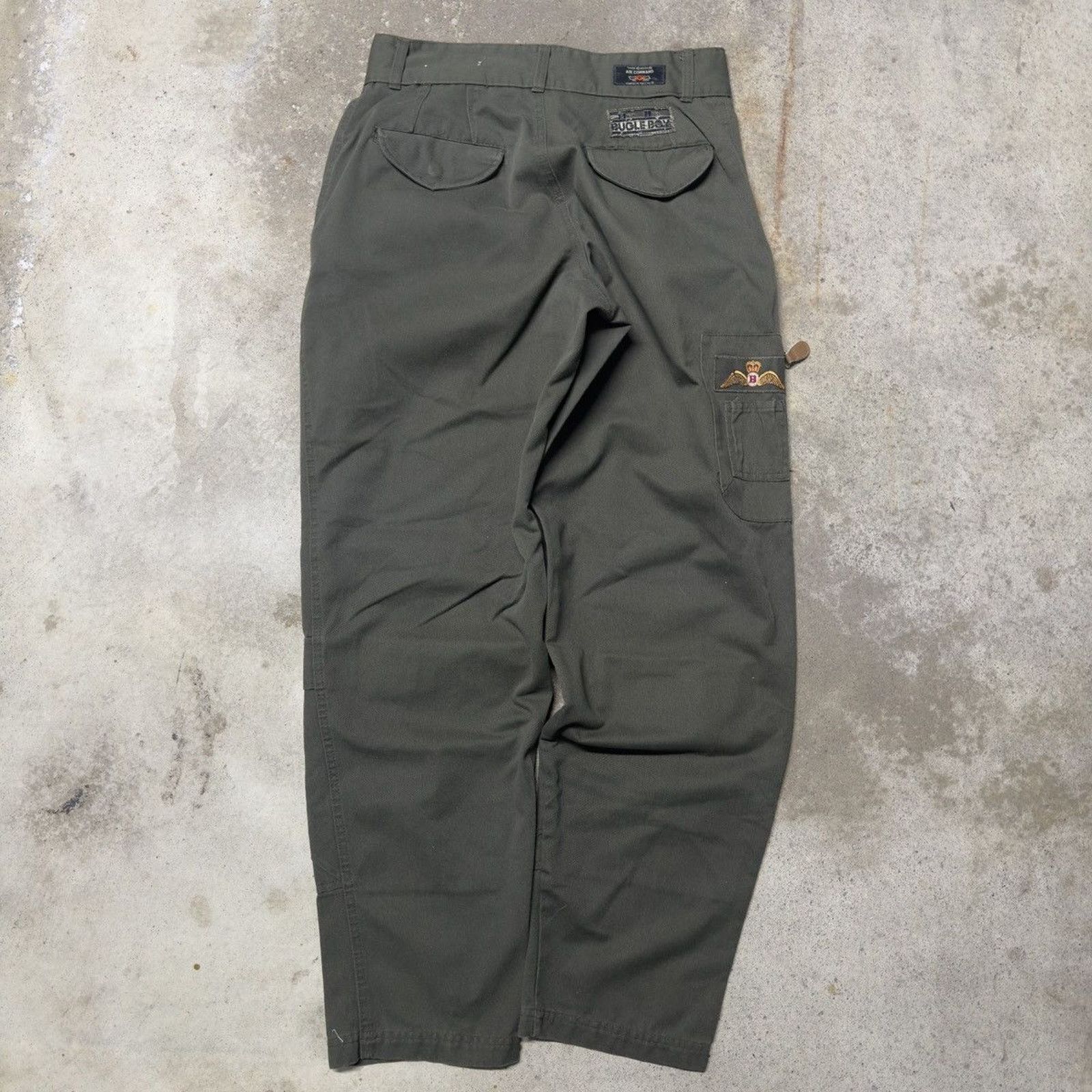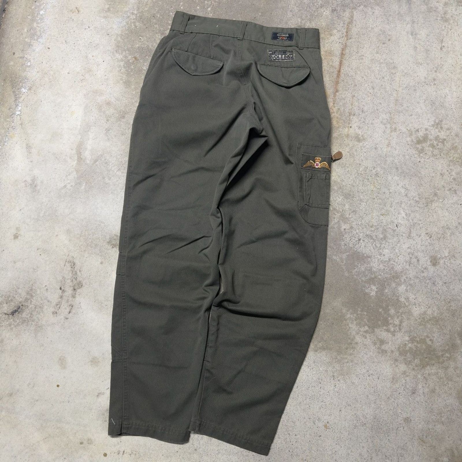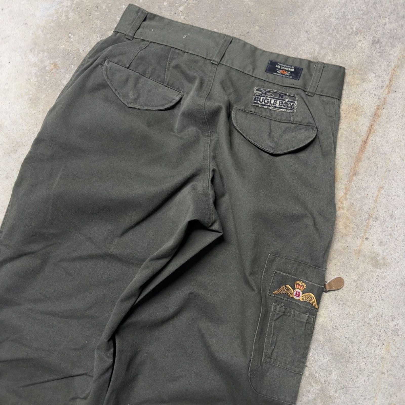Pantalones cargo utilitarios de vuelo Bugle Boy verde militar de los años 2000