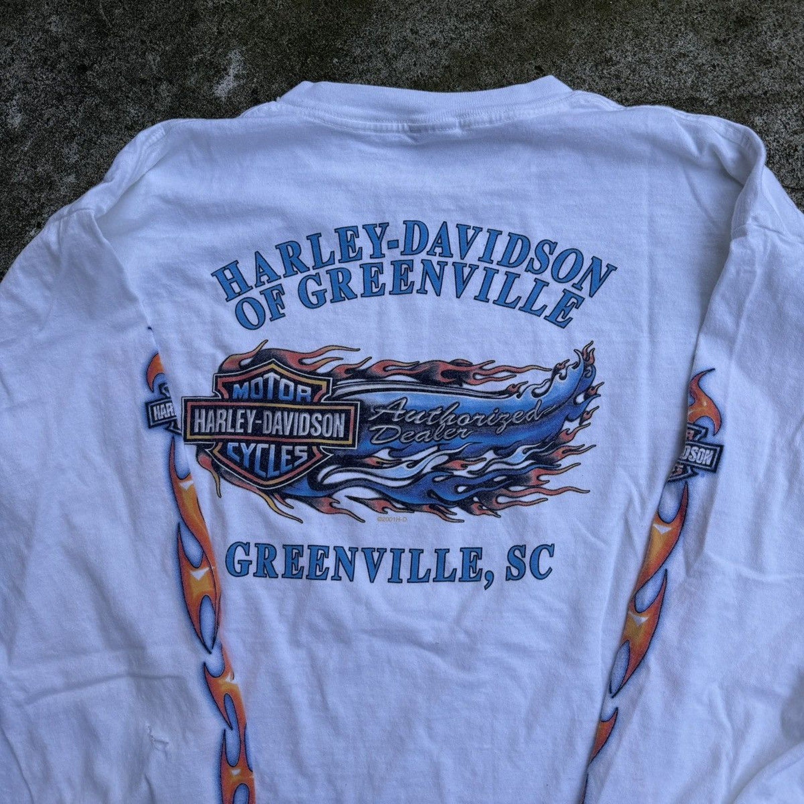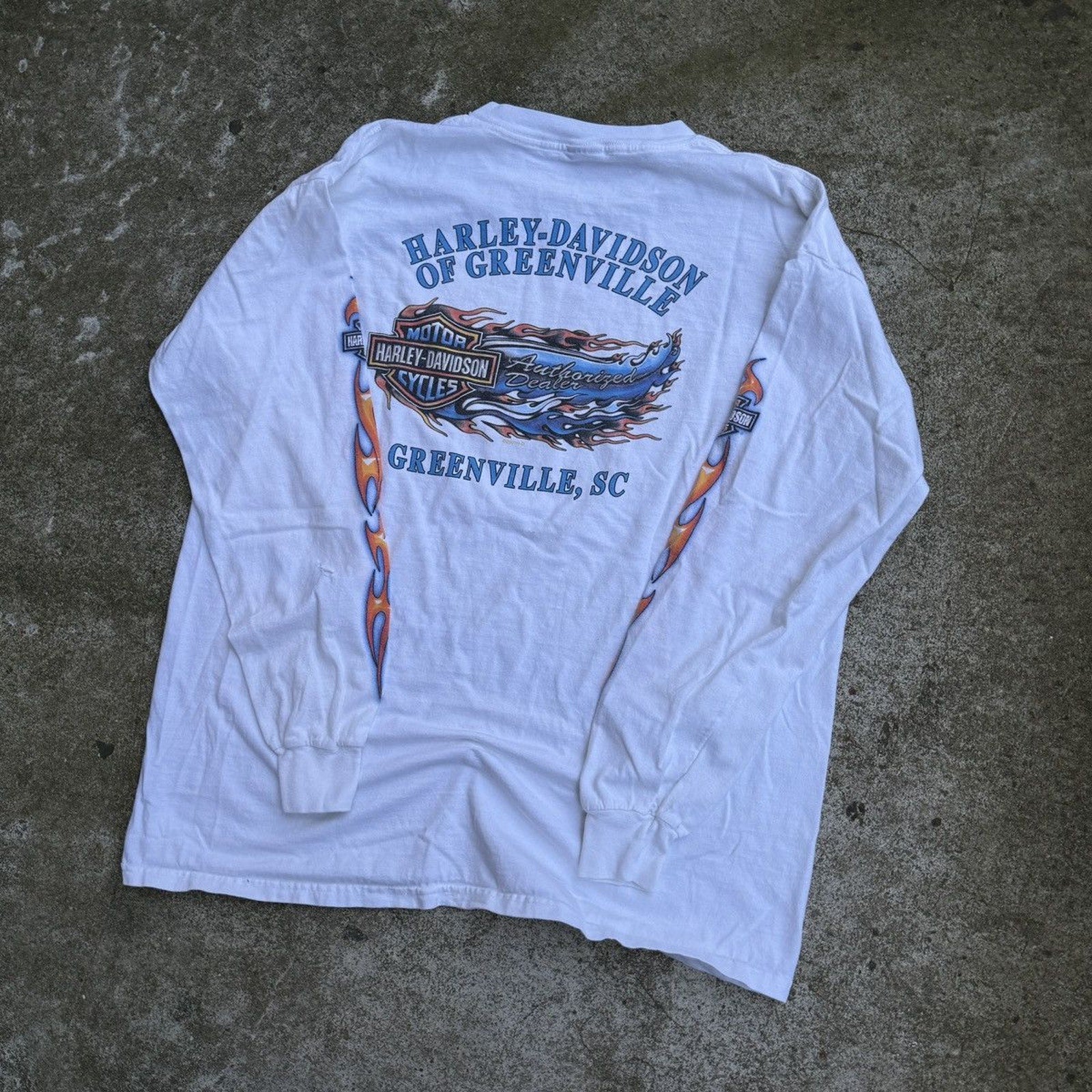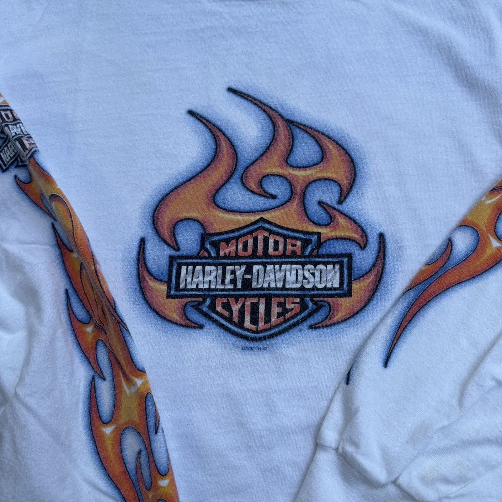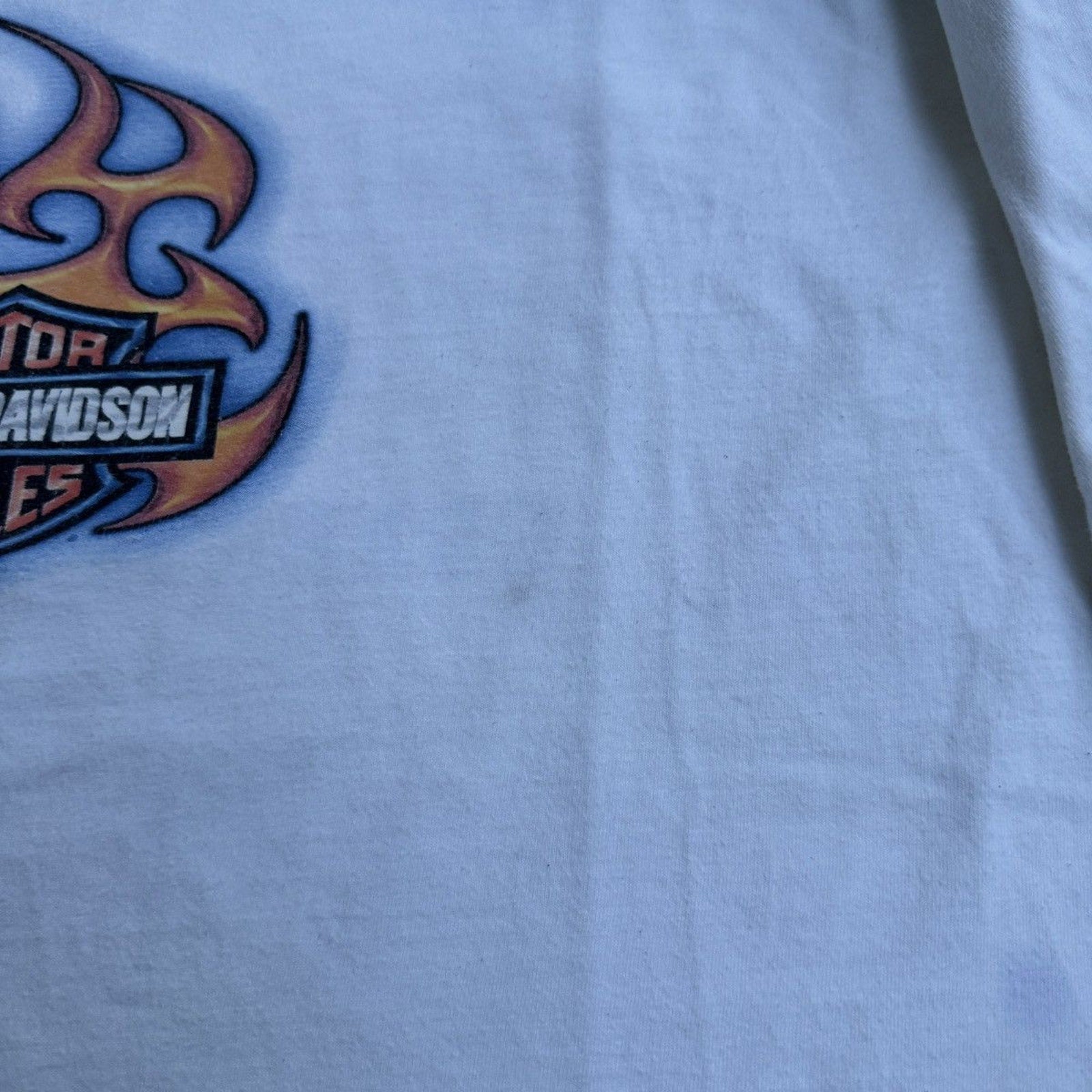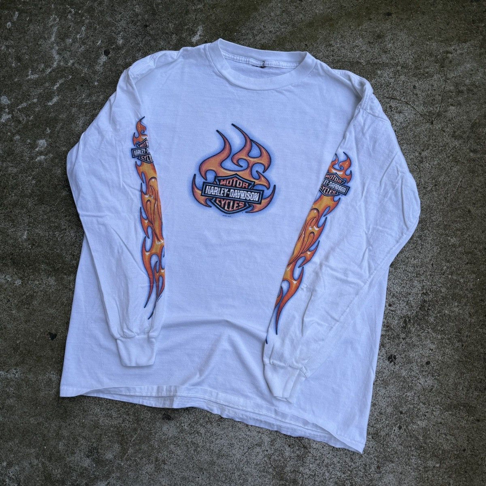 CAMISETA DE MANGA LARGA CON LOGO DE LLAMA DE HARLEY DAVIDSON DE LOS AÑOS 2000 DESGASTADO Y THRASHED