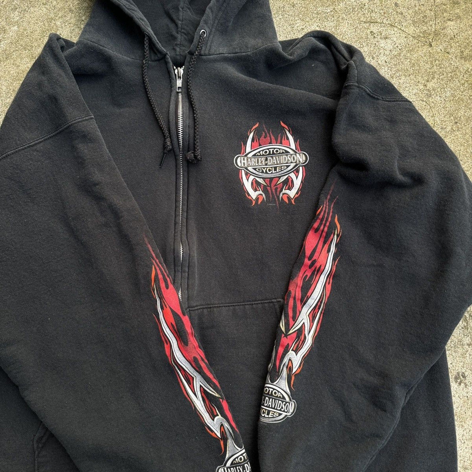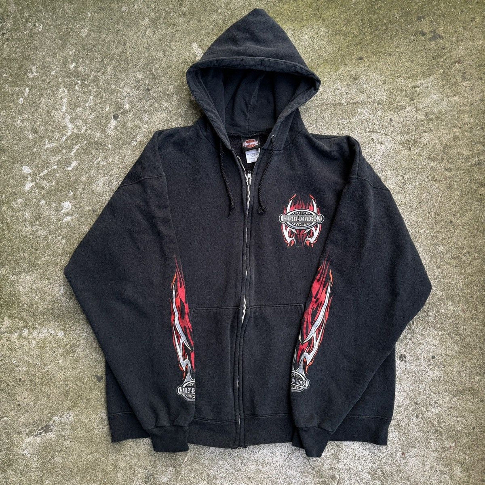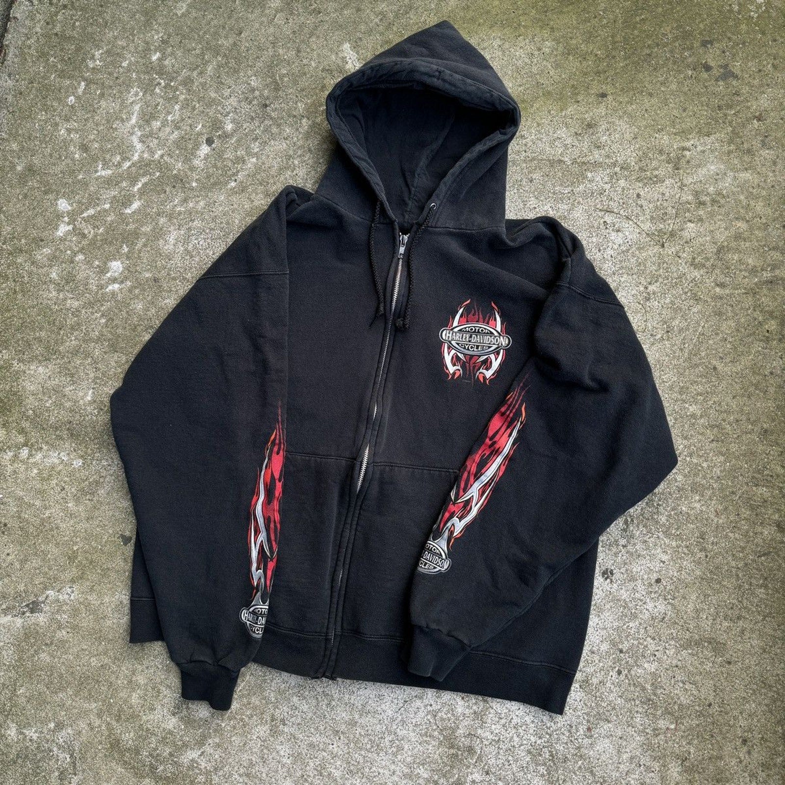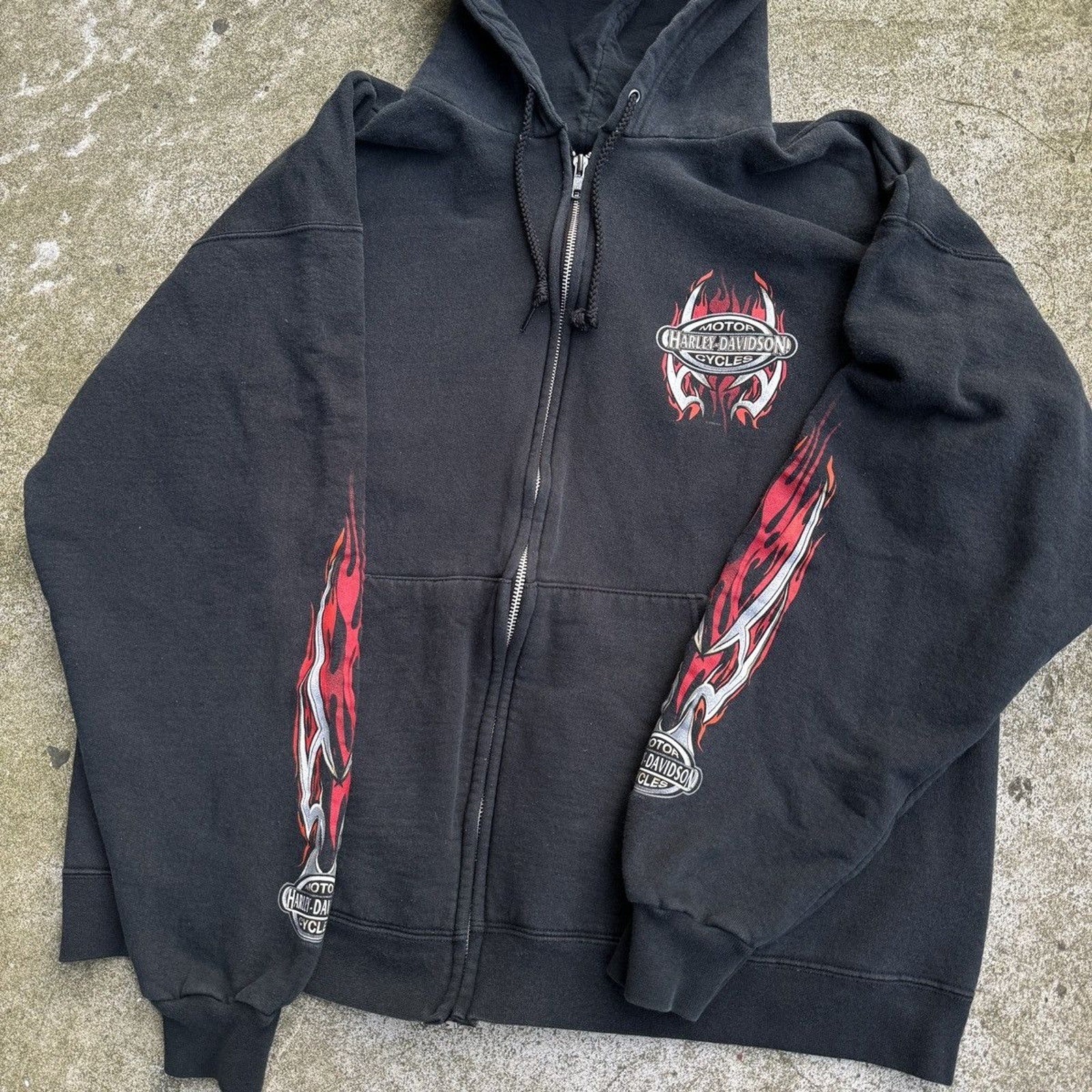 SUDADERA CON CAPUCHA Y CREMALLERA HARLEY DAVIDSON CON LOGO DE LLAMA METÁLICA DE LA DÉCADA DE 2000 OZARK