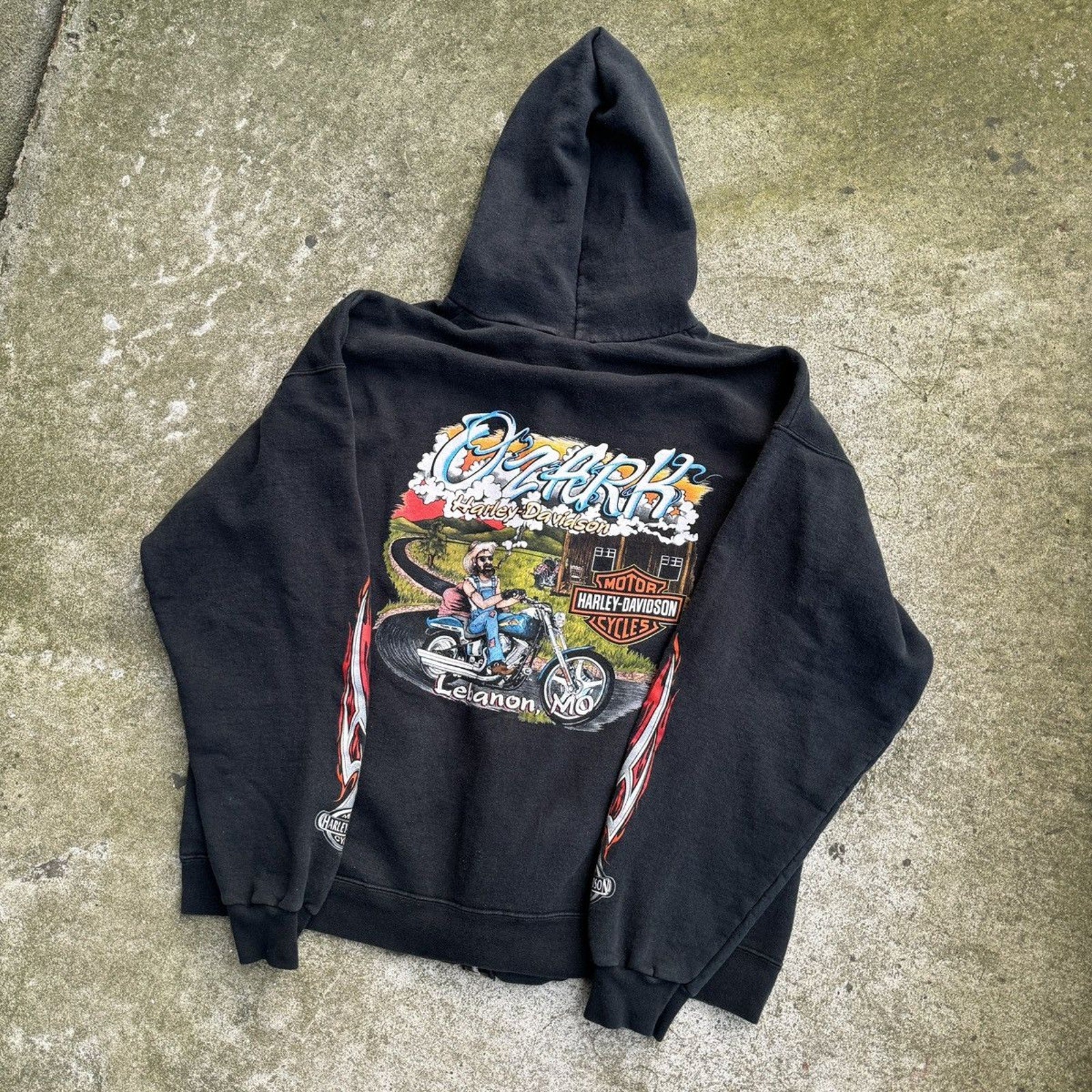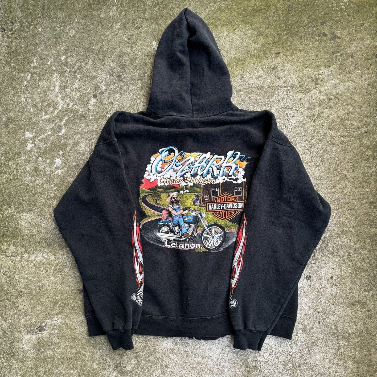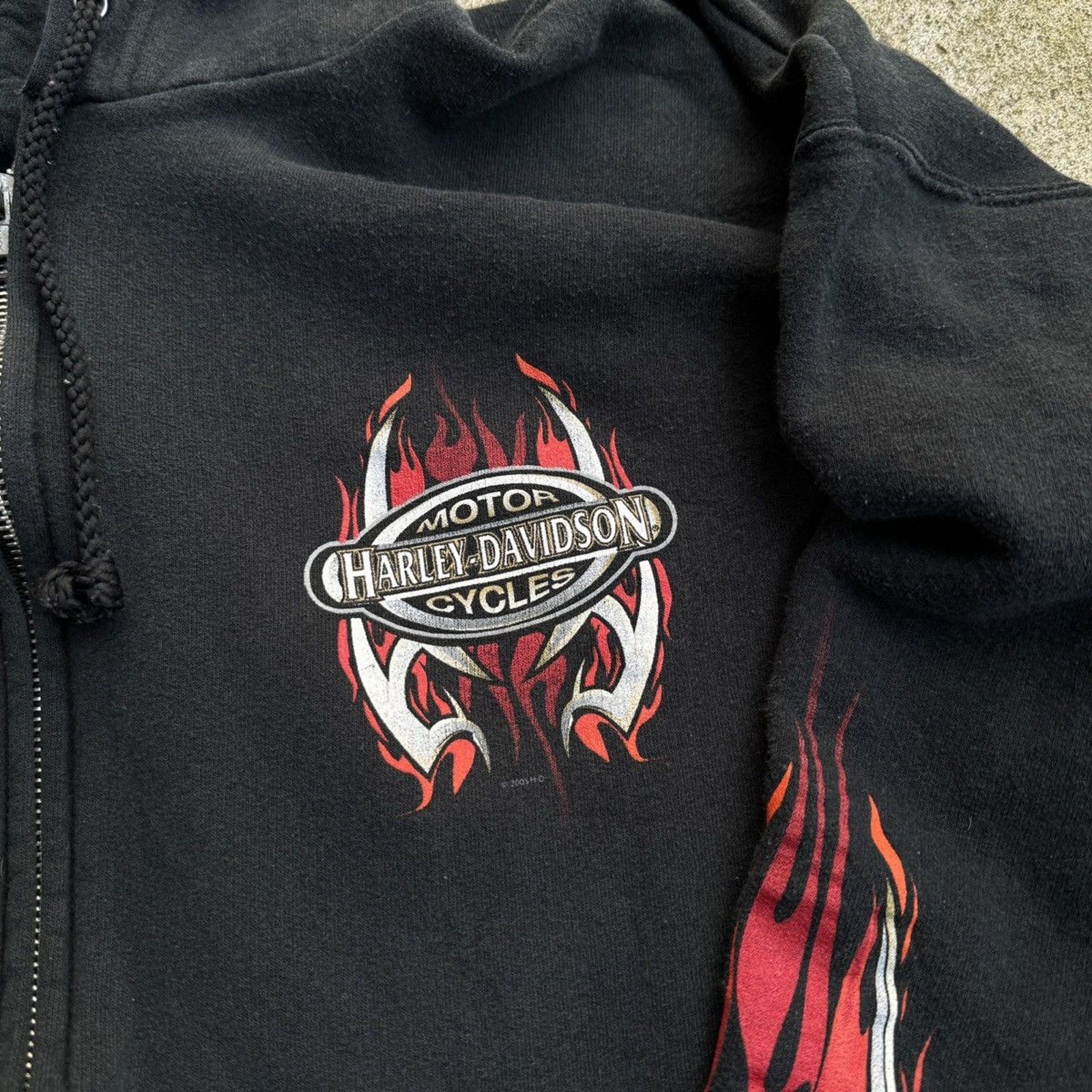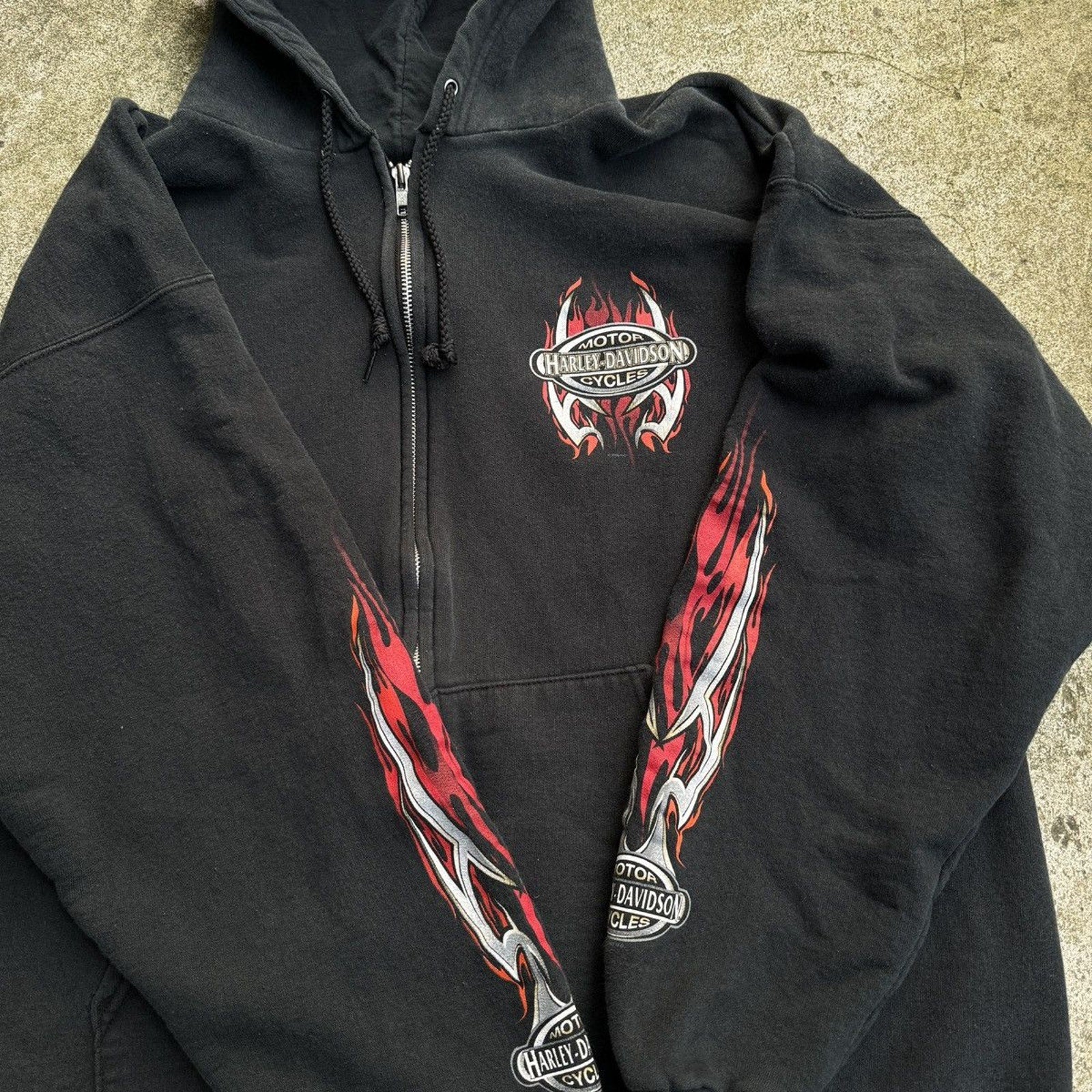 SUDADERA CON CAPUCHA Y CREMALLERA HARLEY DAVIDSON CON LOGO DE LLAMA METÁLICA DE LA DÉCADA DE 2000 OZARK