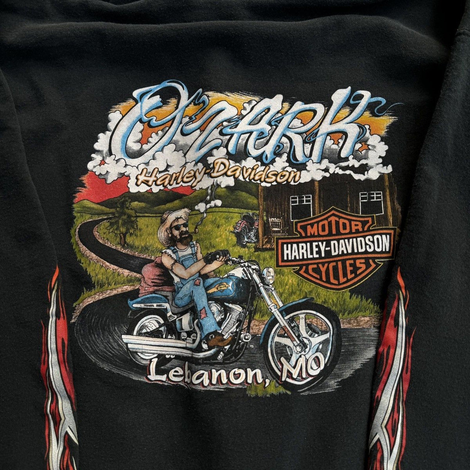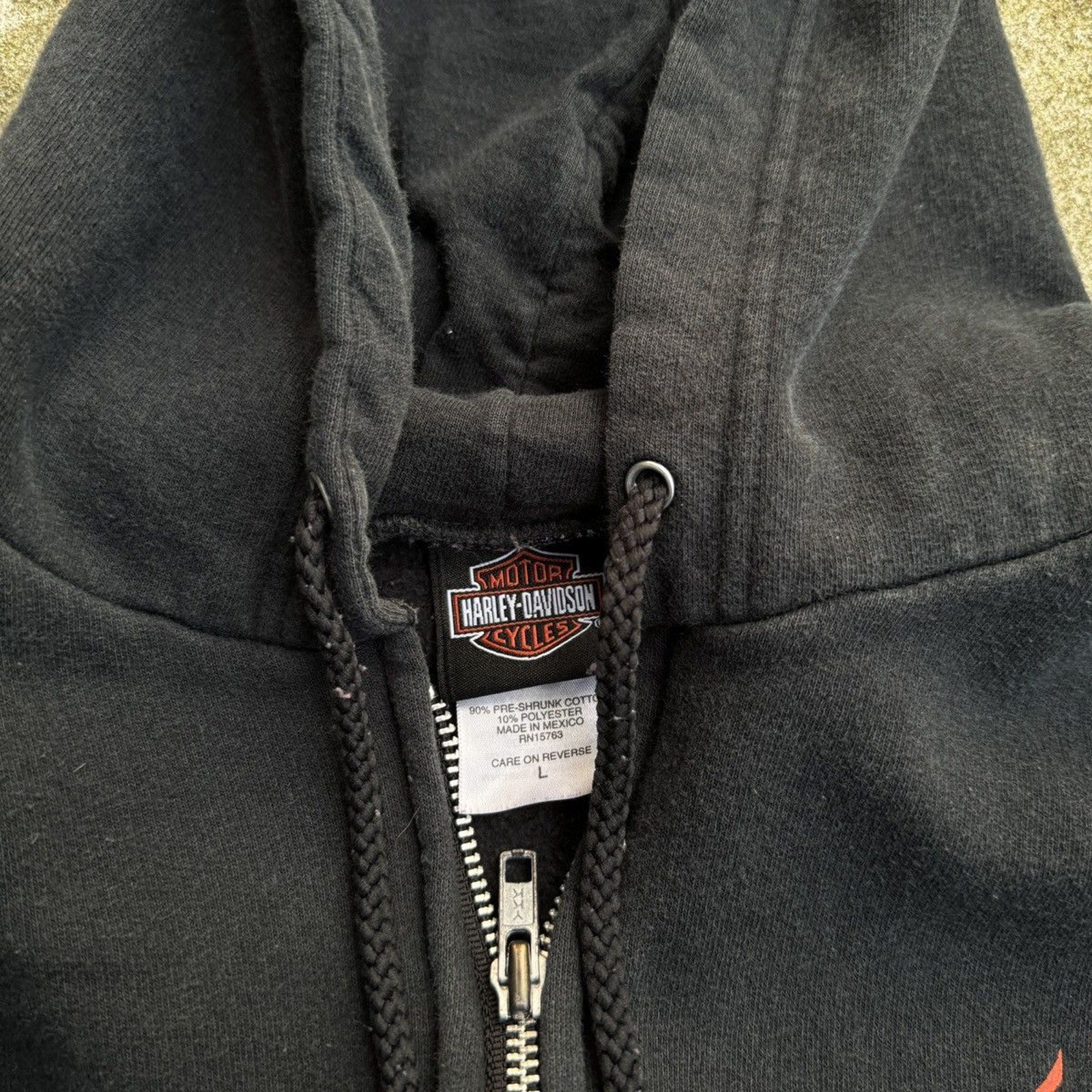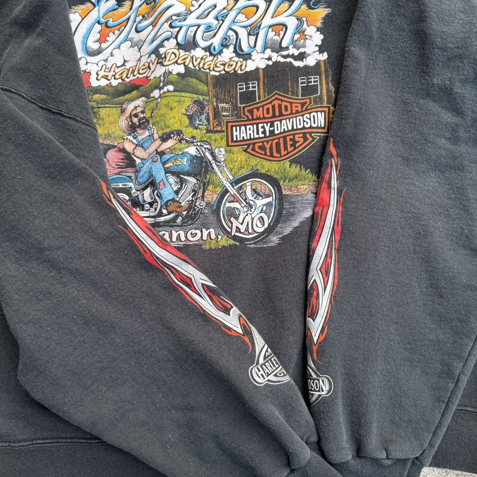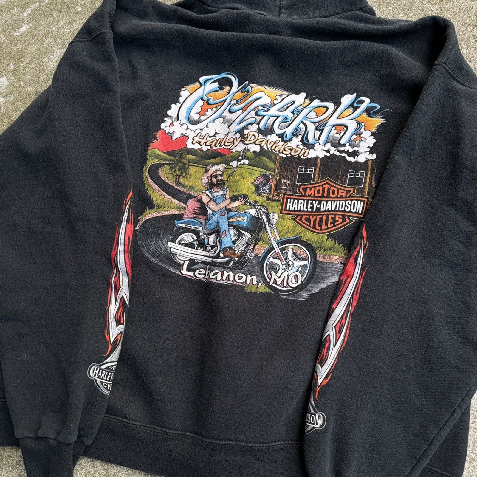 SUDADERA CON CAPUCHA Y CREMALLERA HARLEY DAVIDSON CON LOGO DE LLAMA METÁLICA DE LA DÉCADA DE 2000 OZARK