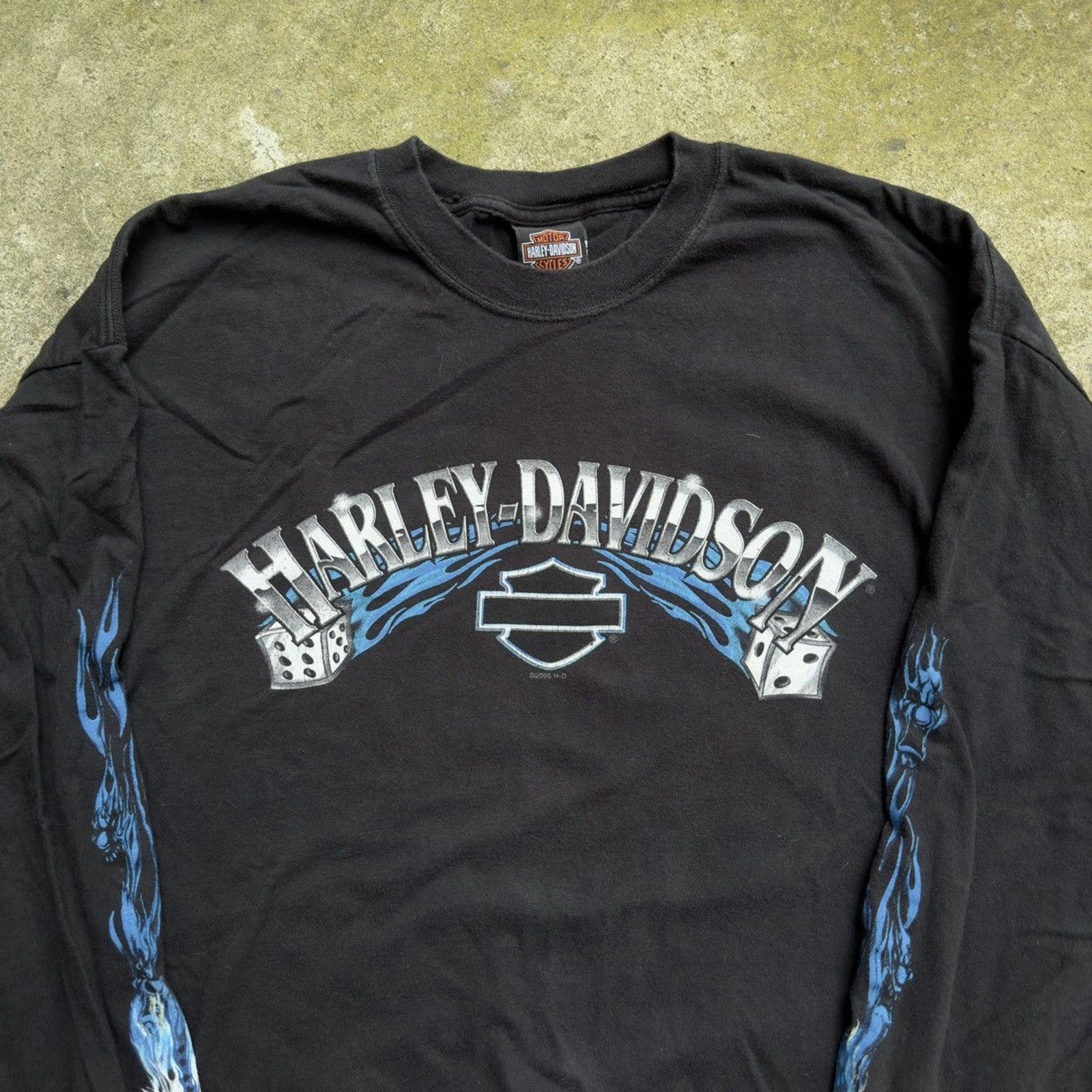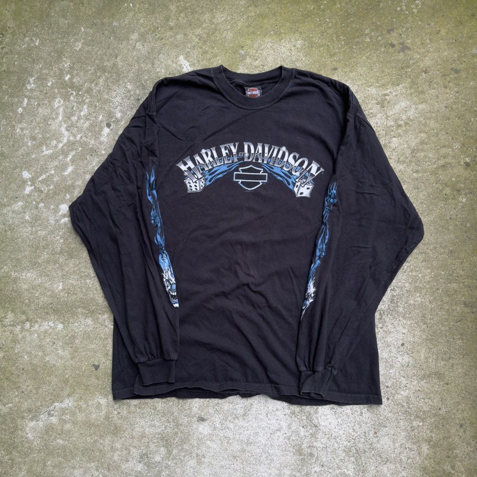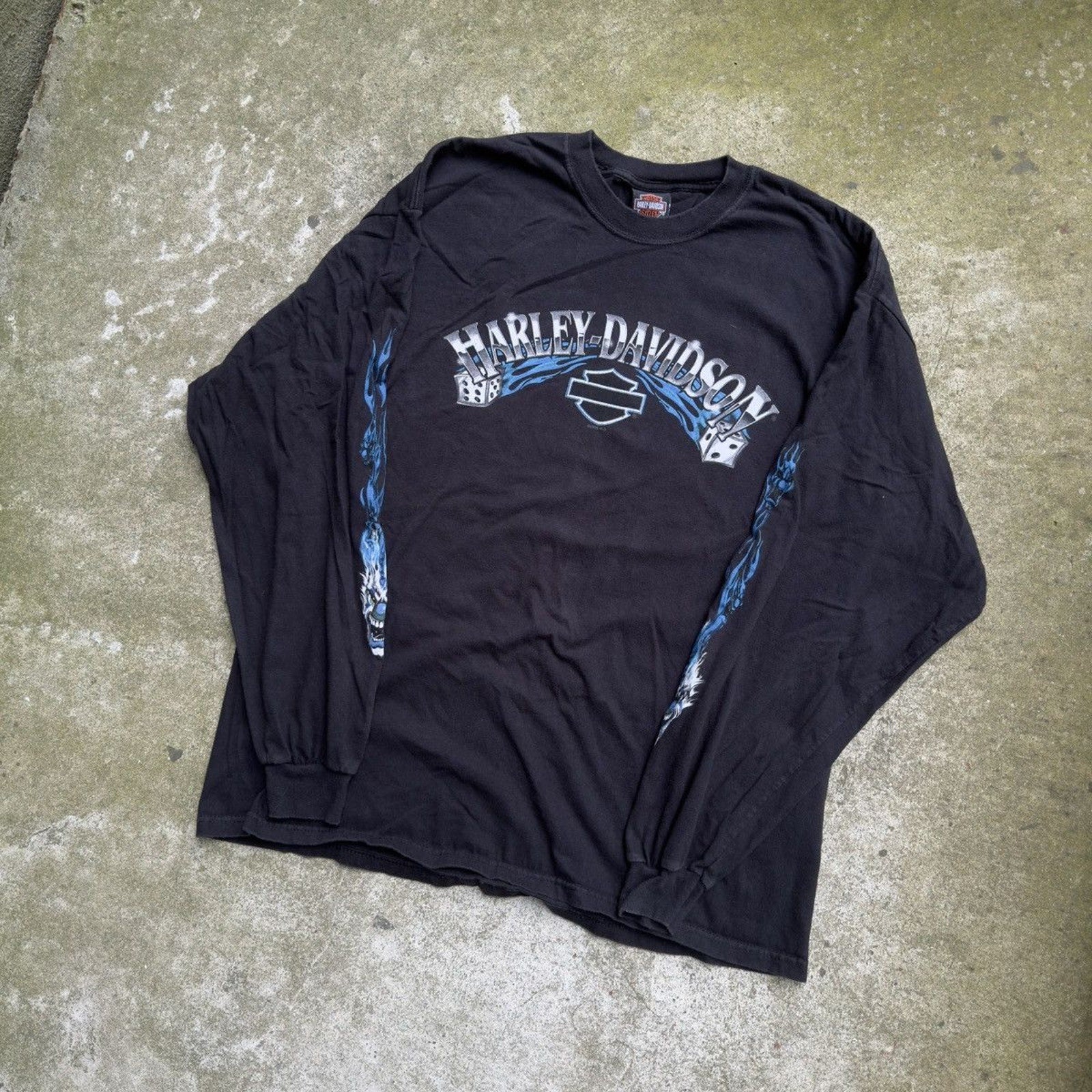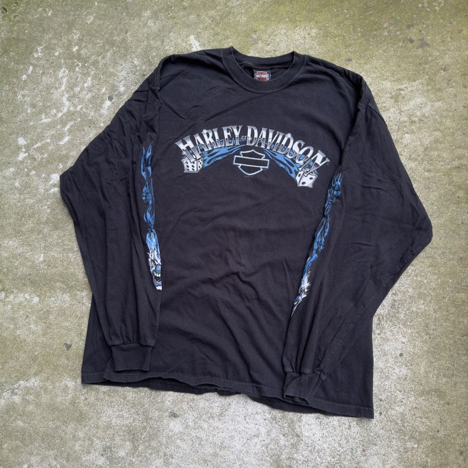 CAMISETA DE MANGA LARGA HARLEY DICE CLOWN FLAME DE LOS AÑOS 2000