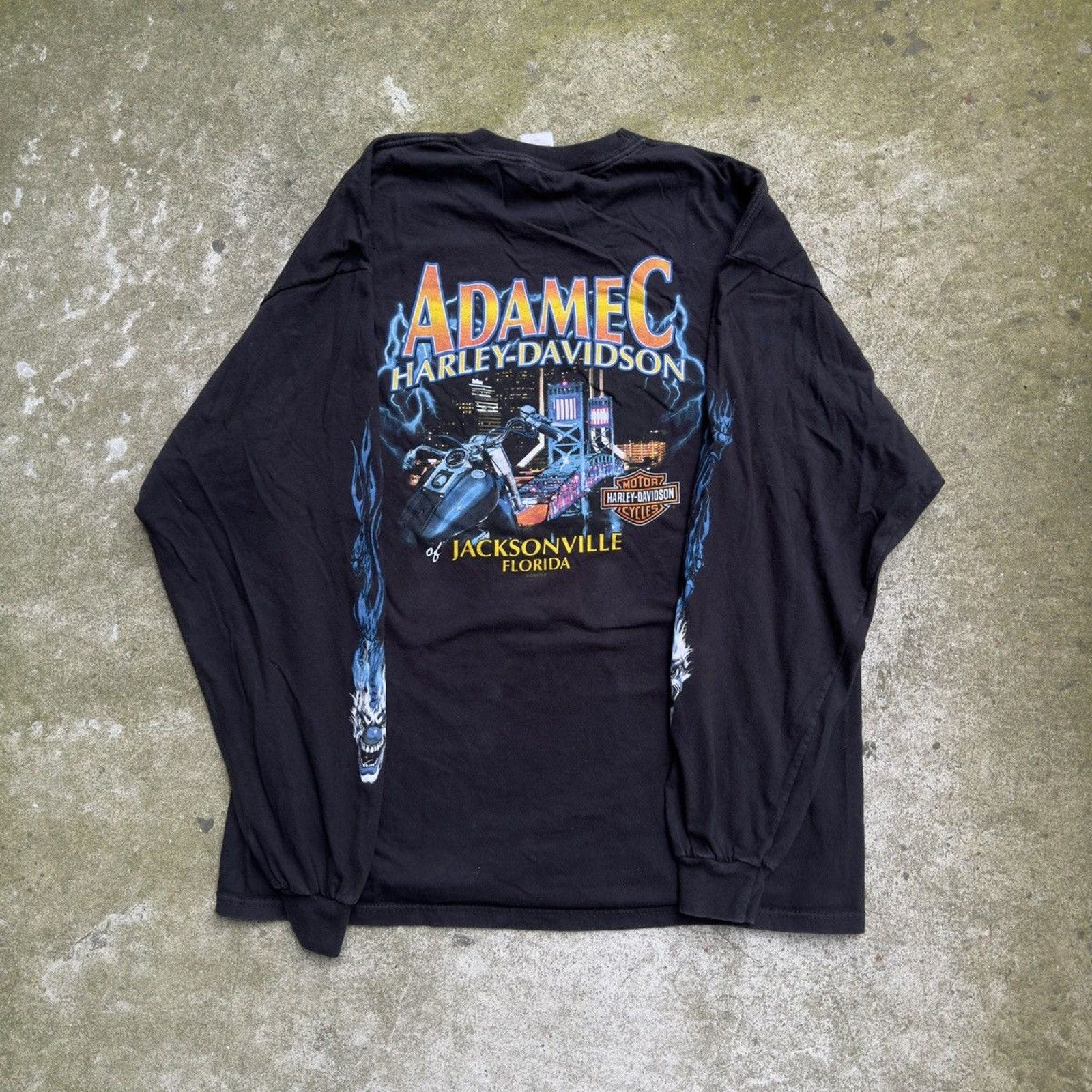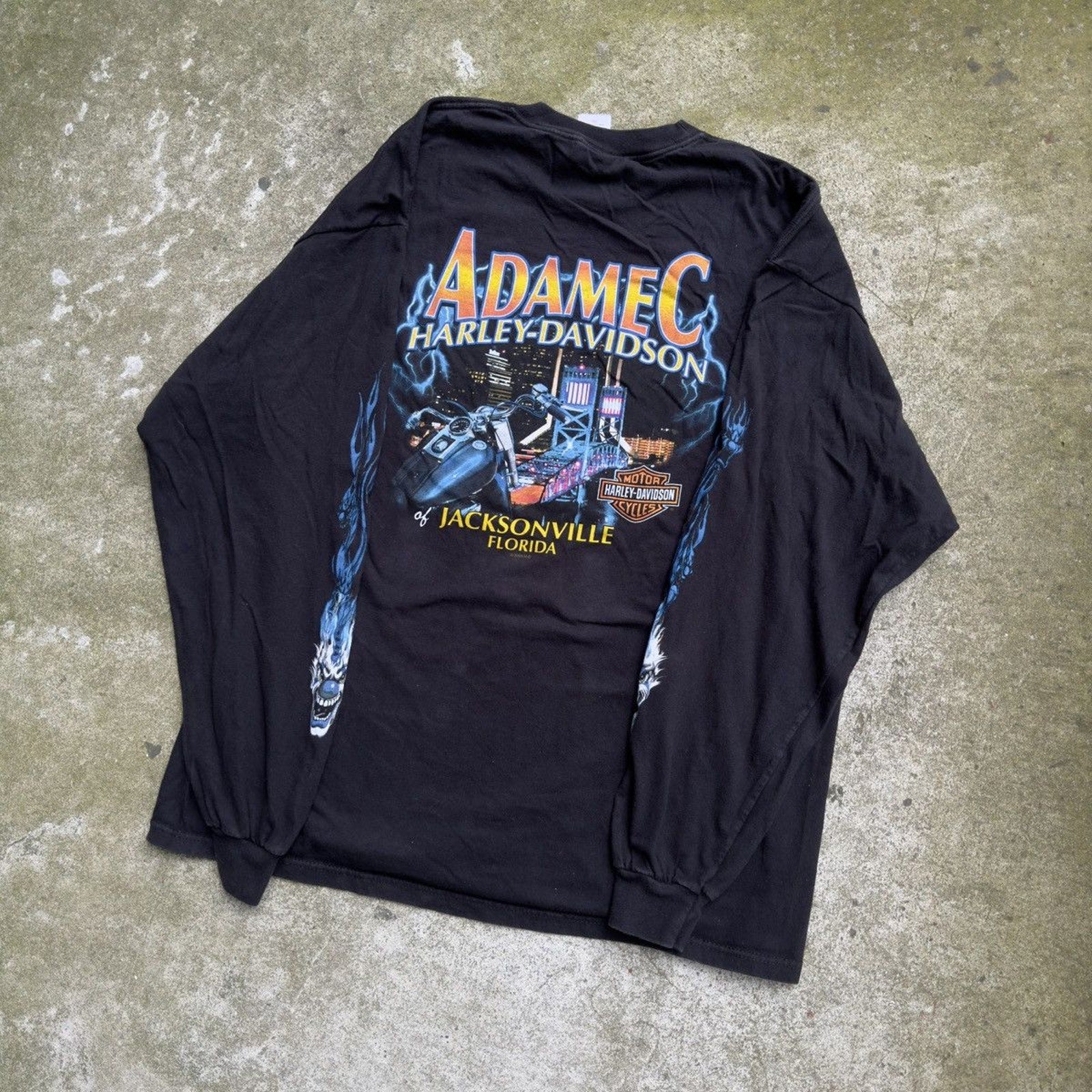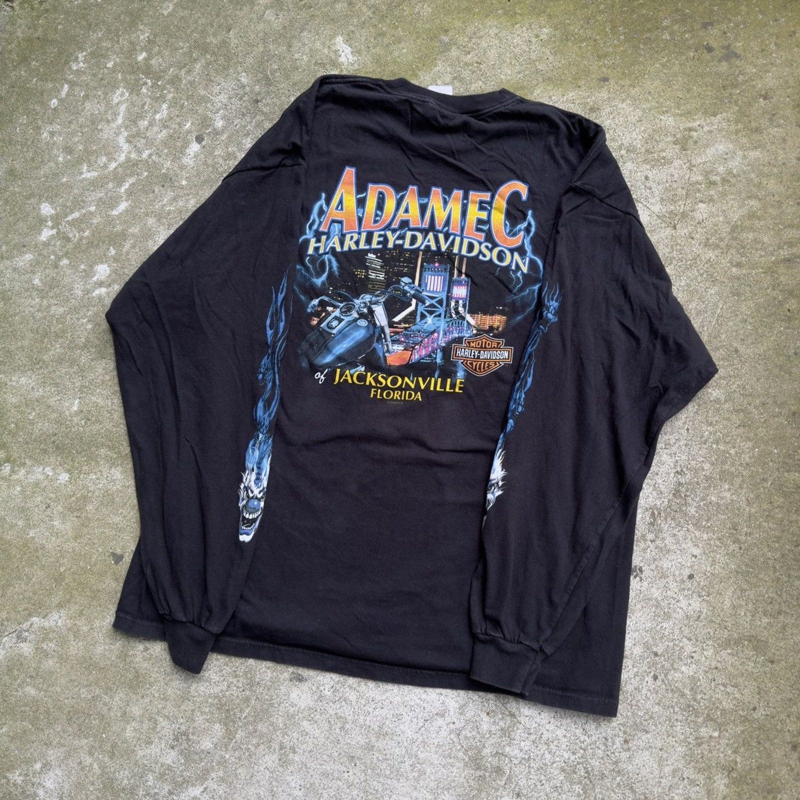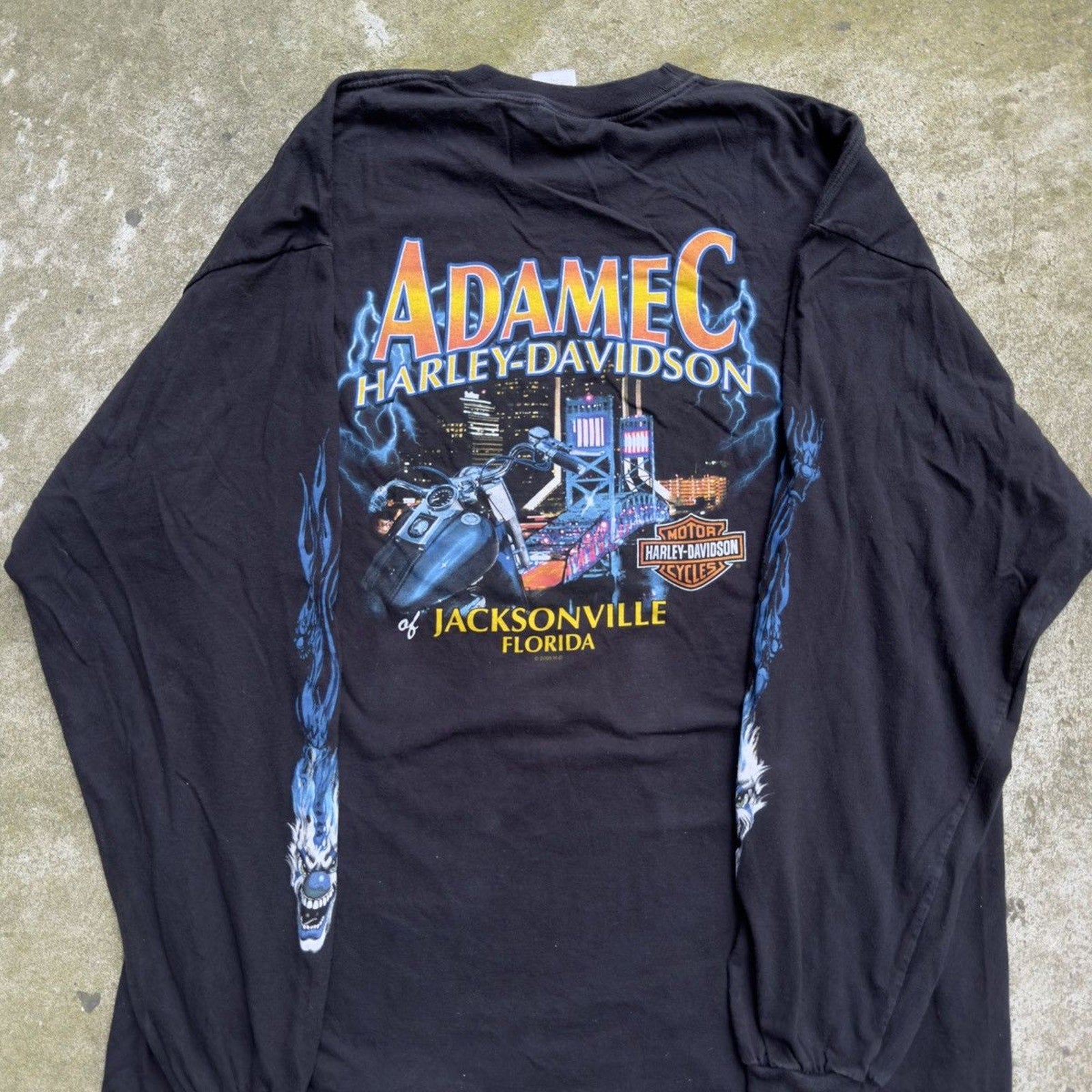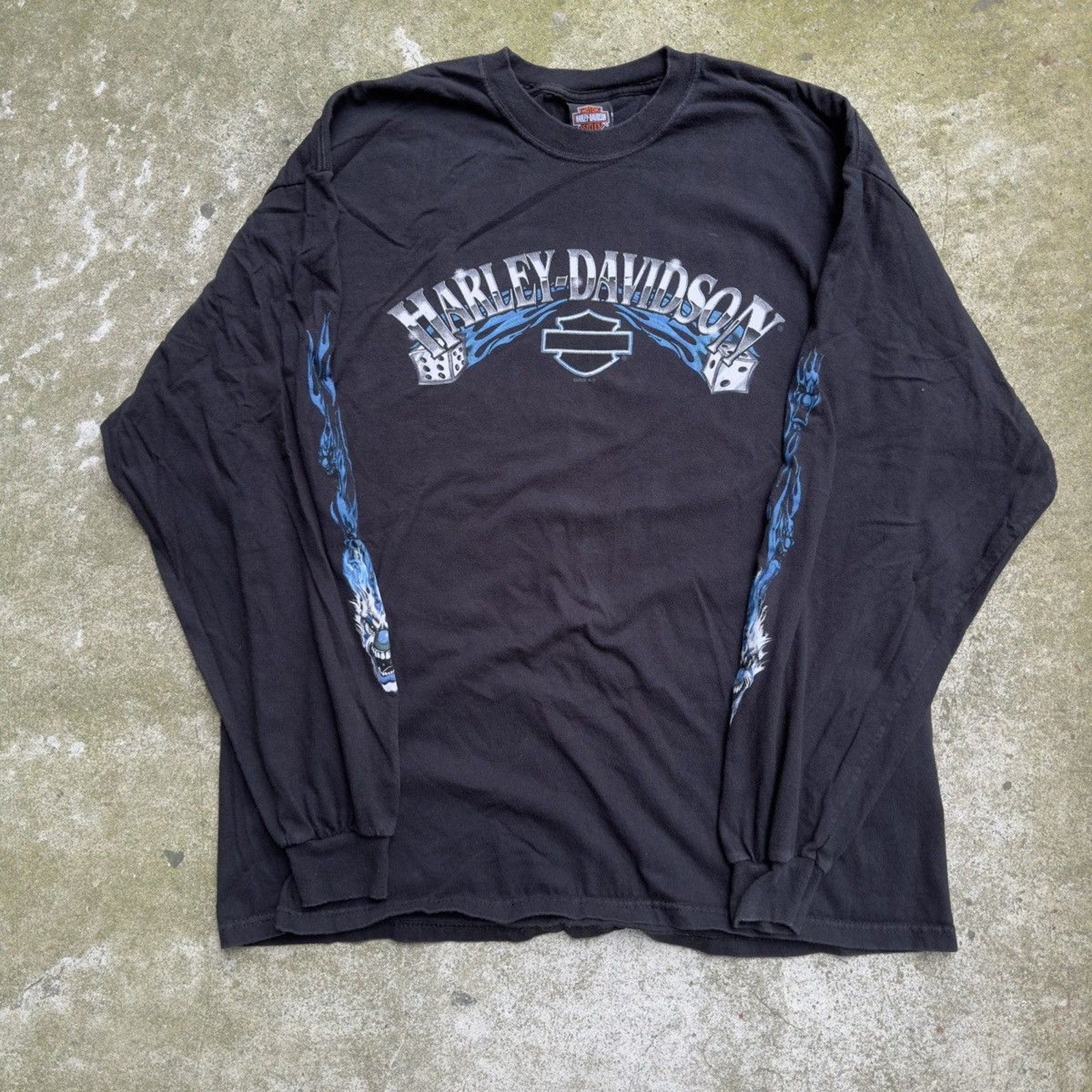 CAMISETA DE MANGA LARGA HARLEY DICE CLOWN FLAME DE LOS AÑOS 2000