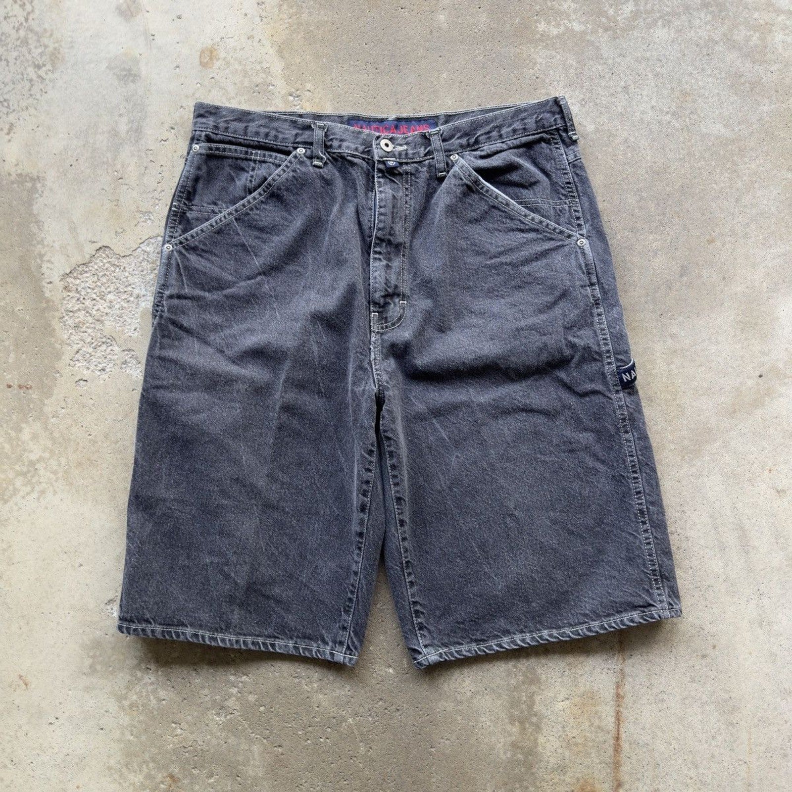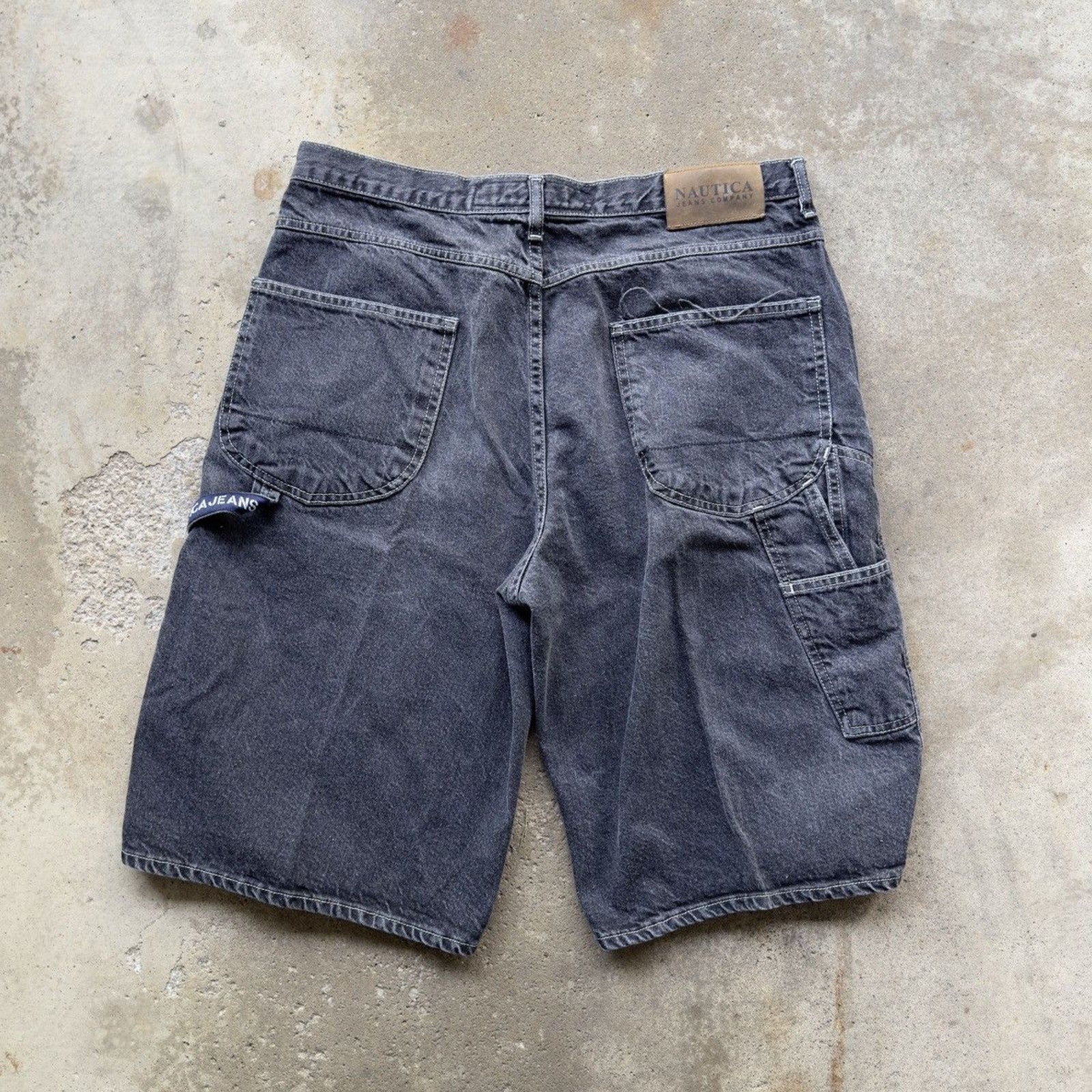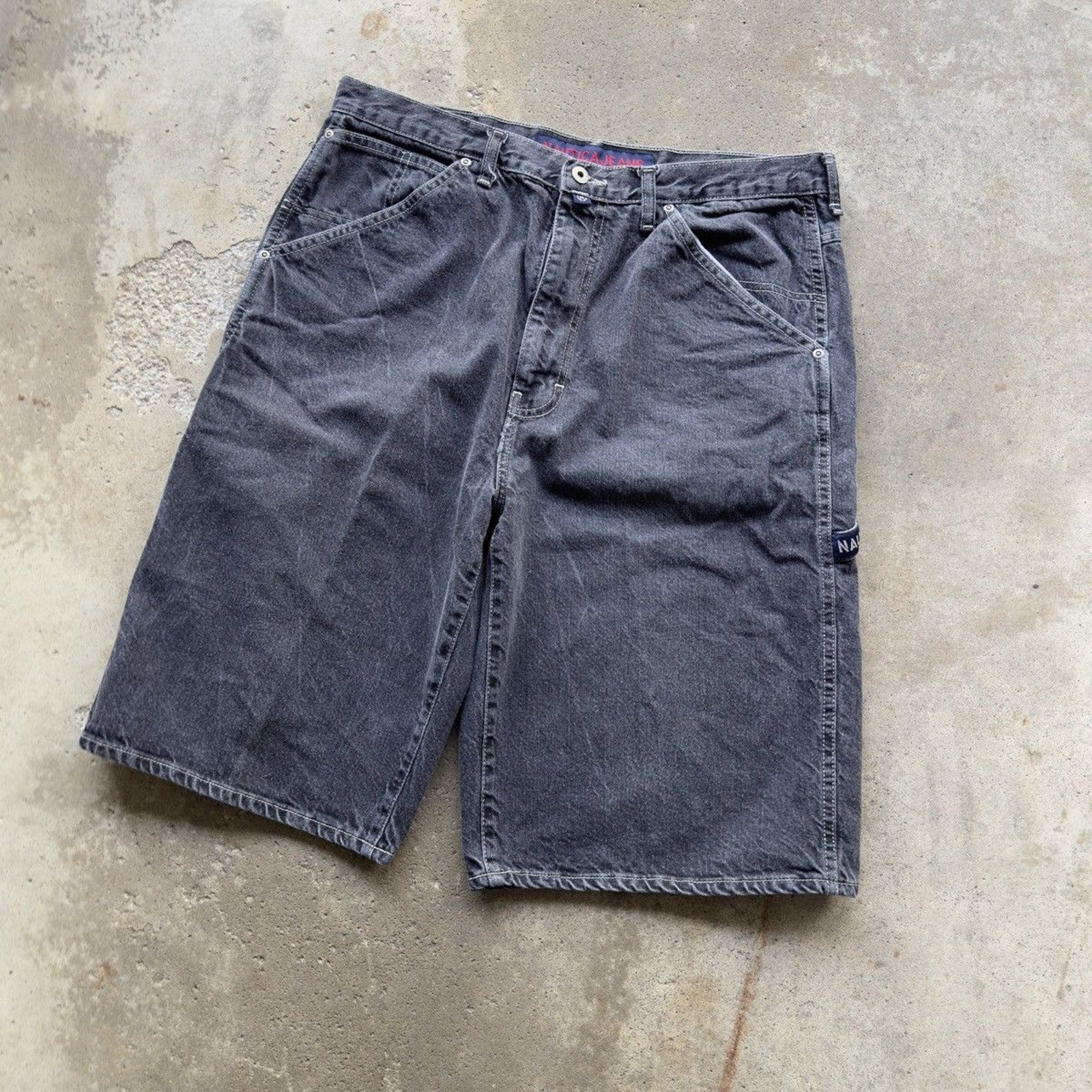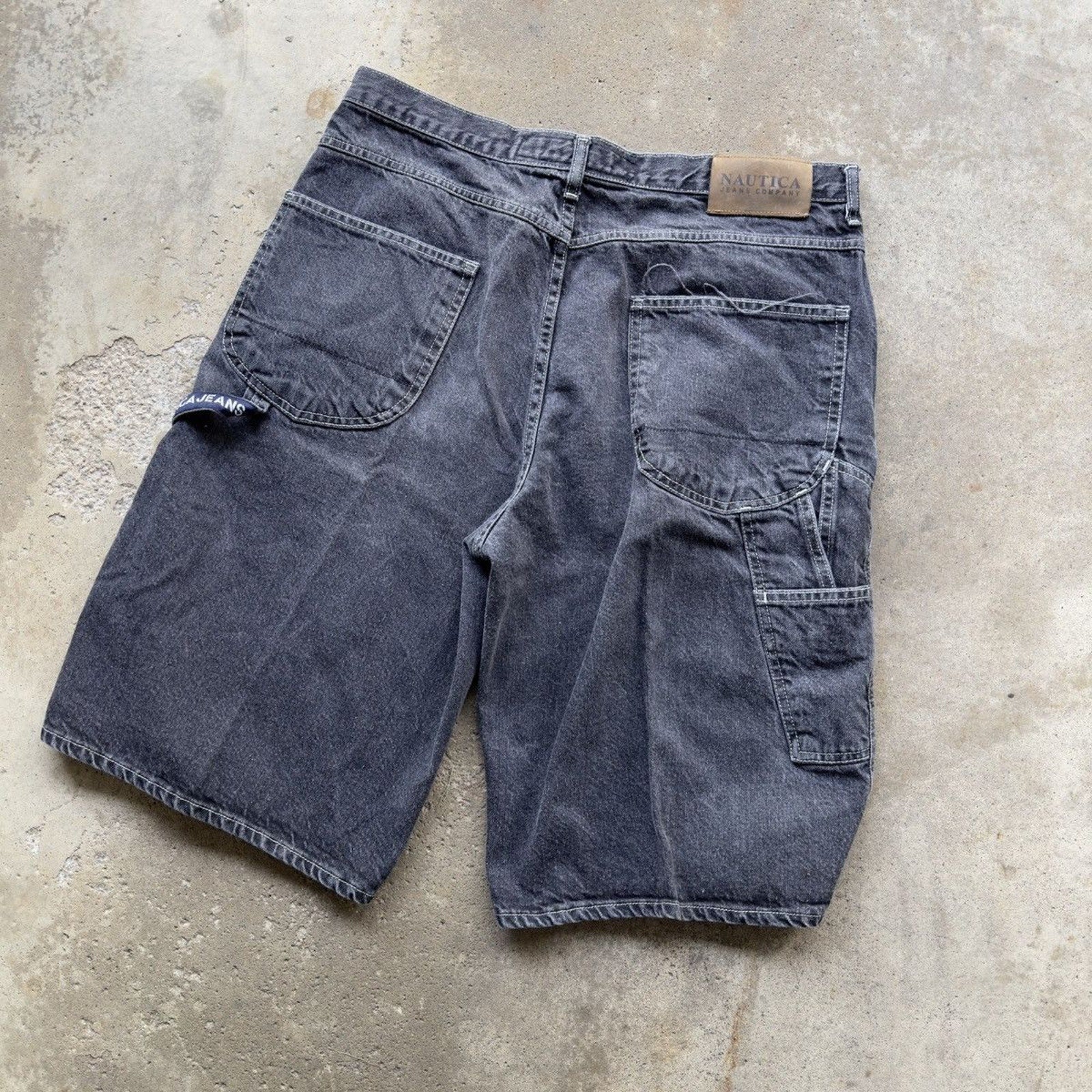 NAUTICA - Pantalones cortos holgados de mezclilla negra descolorida de la década de 2000