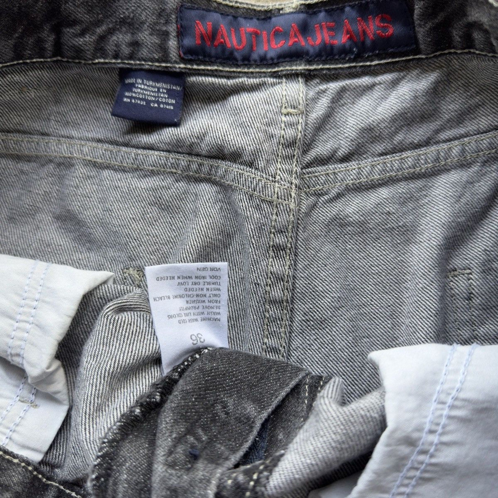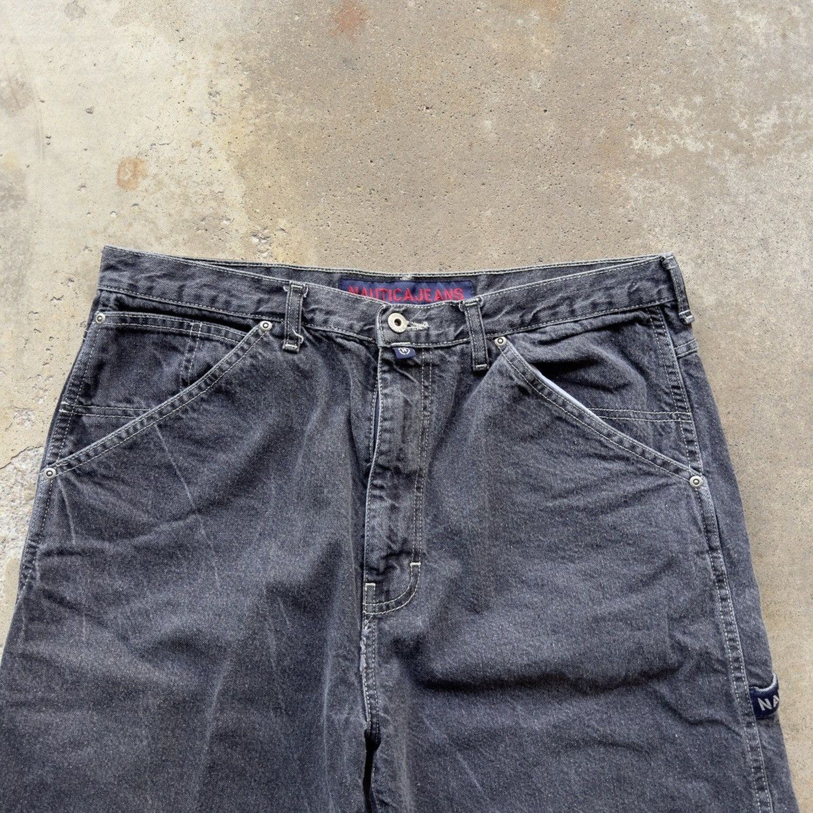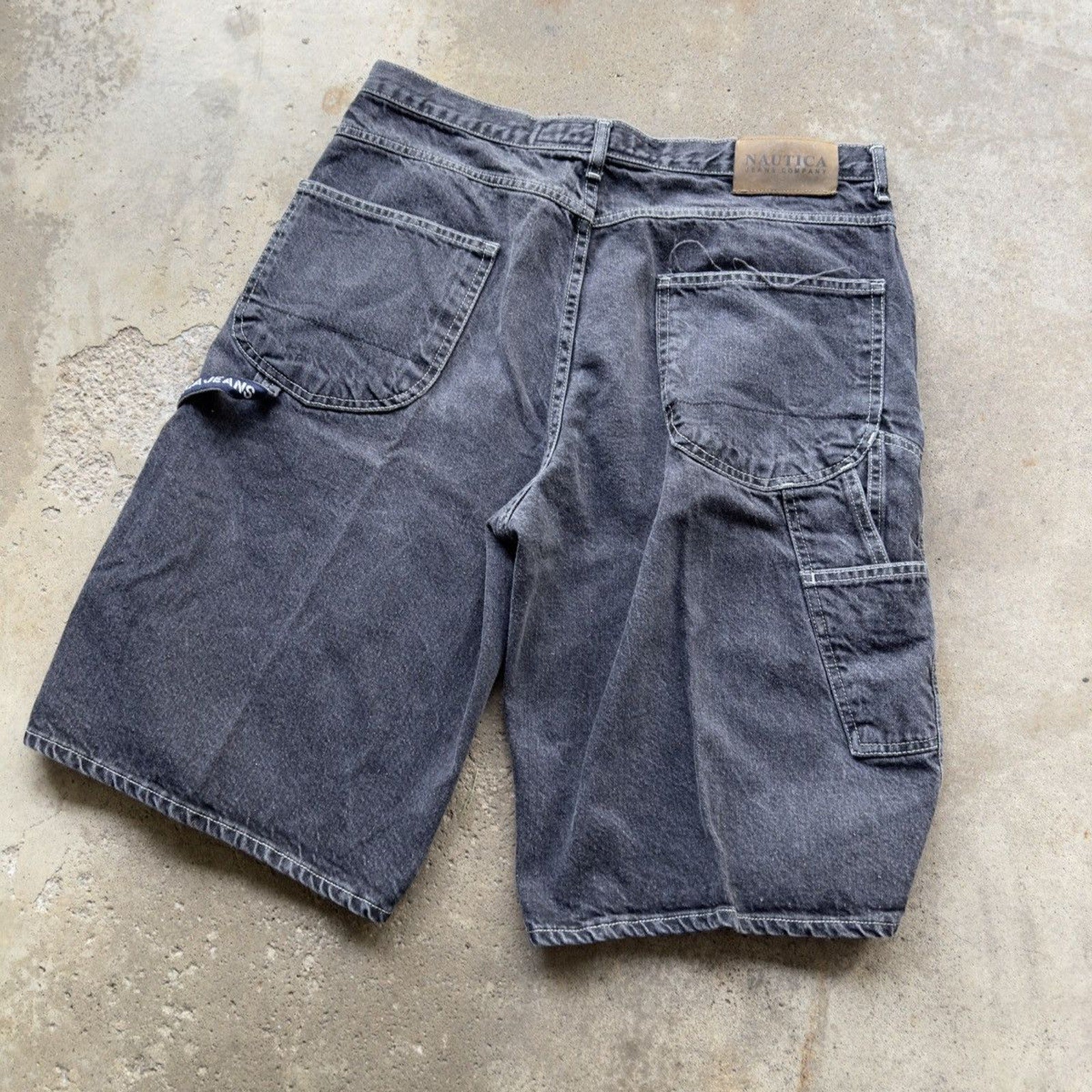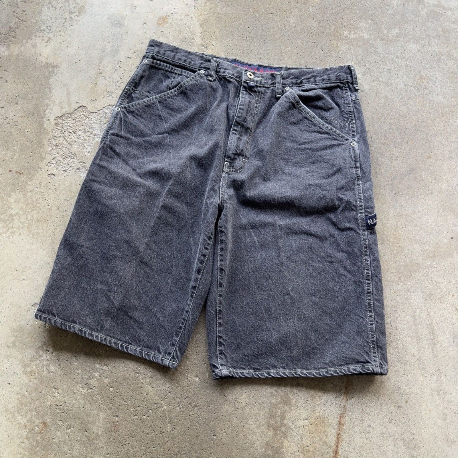 NAUTICA - Pantalones cortos holgados de mezclilla negra descolorida de la década de 2000