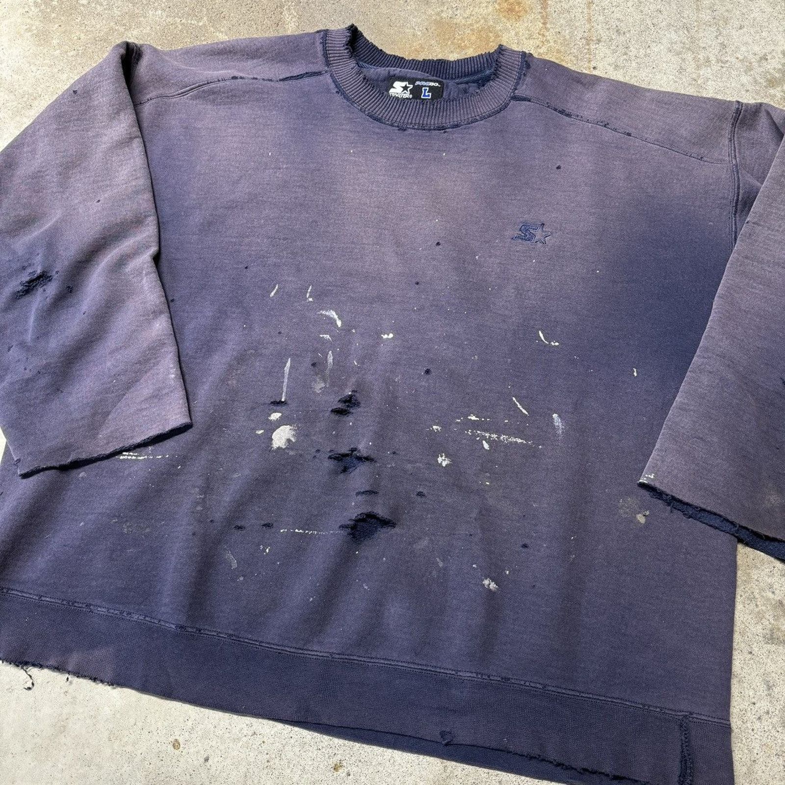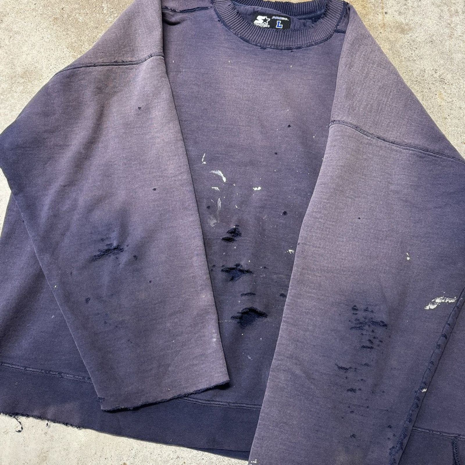 SUDADERA DE CUELLO REDONDO CON PINTURA DESGASTADA Y PERFECTAMENTE DESGASTADA DE LOS AÑOS 2000