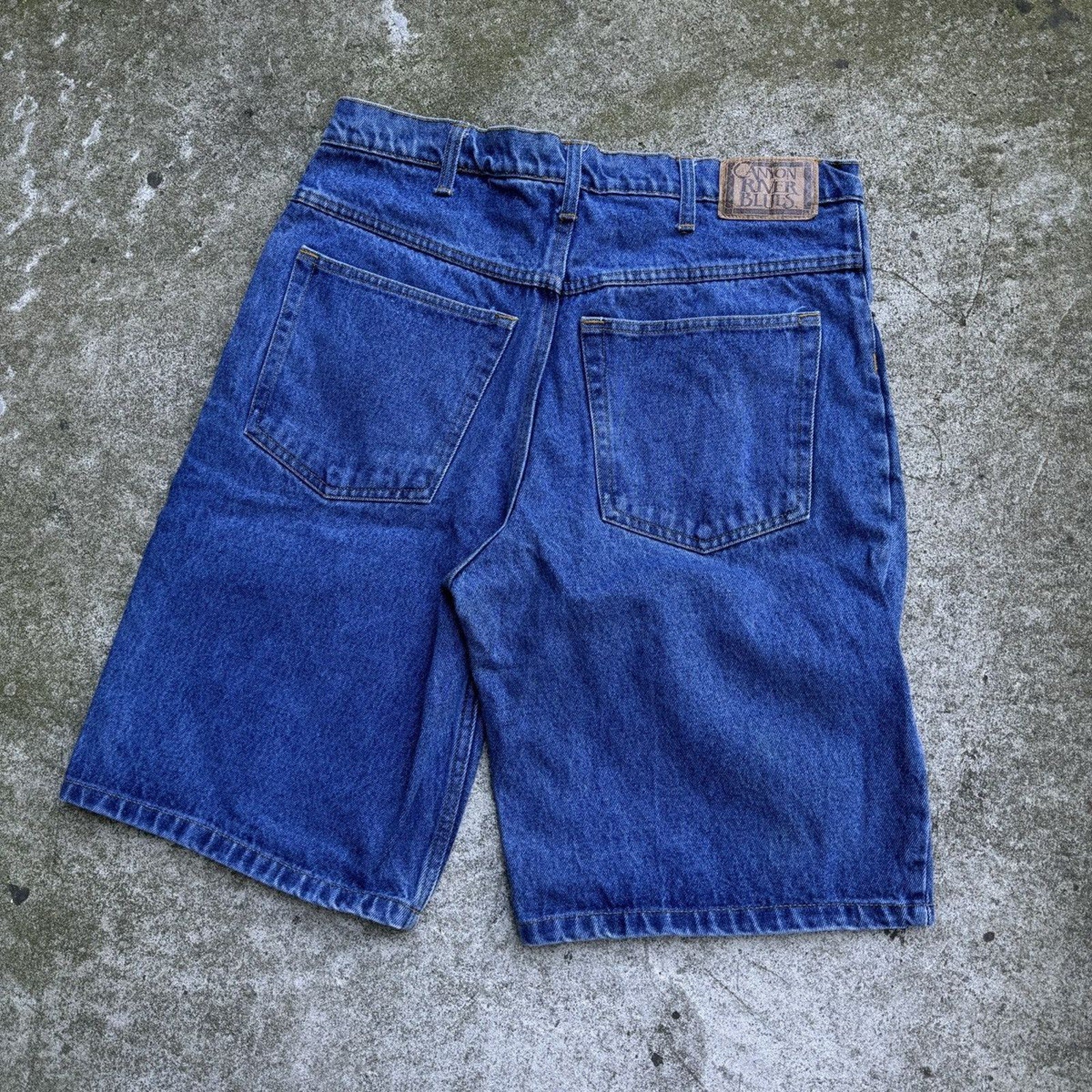 Pantalones cortos vaqueros holgados estilo skater con el logo de Canyon River Blues de los años 2000