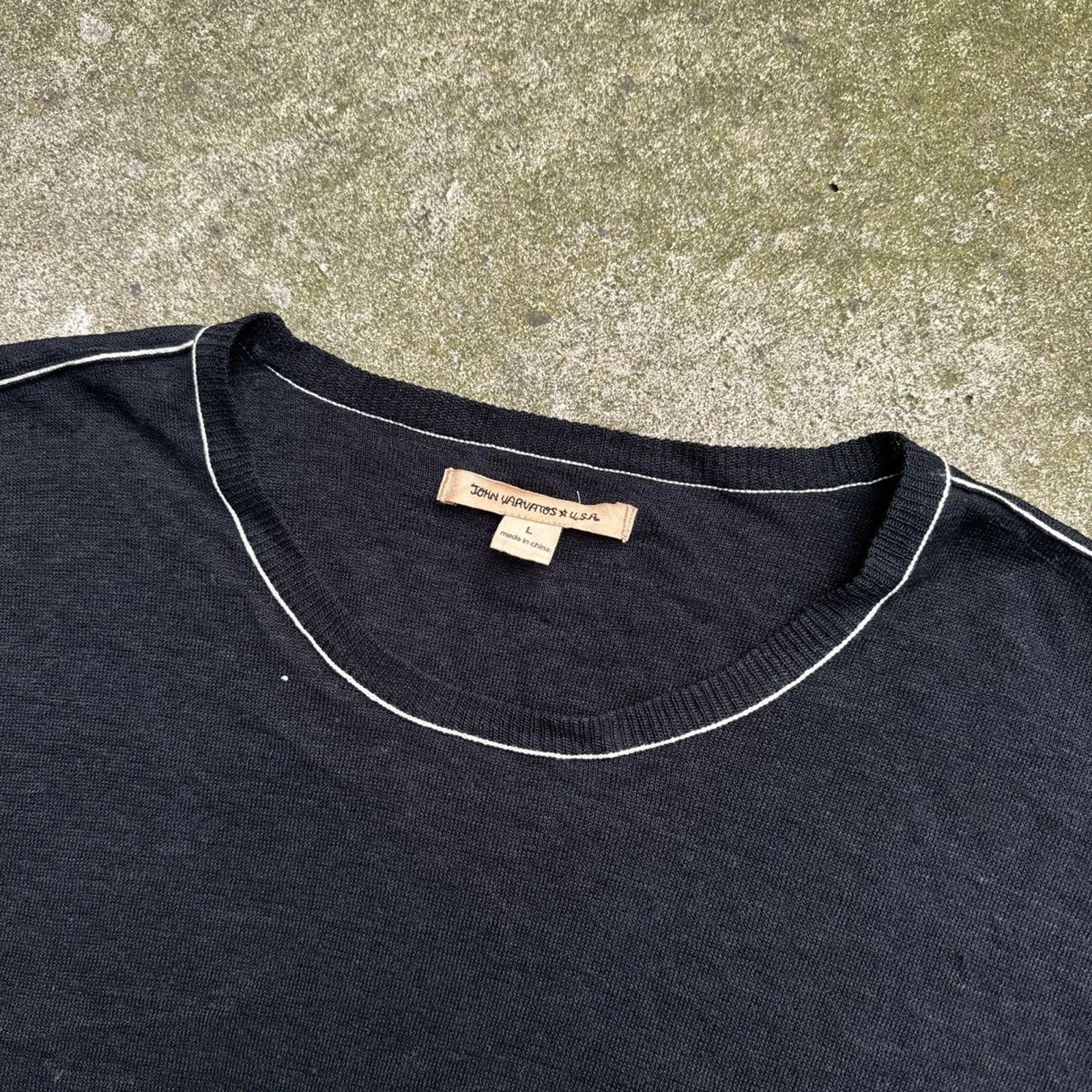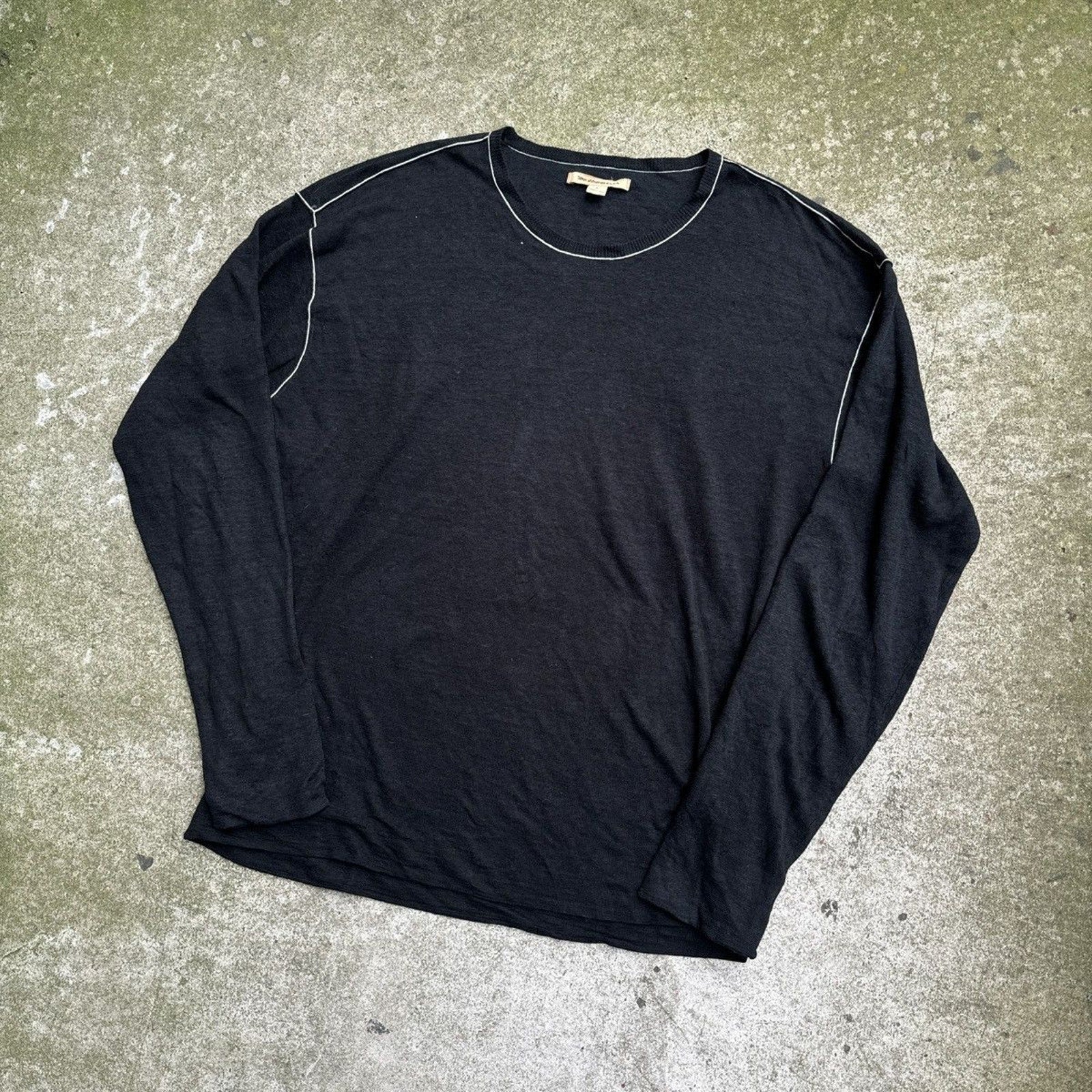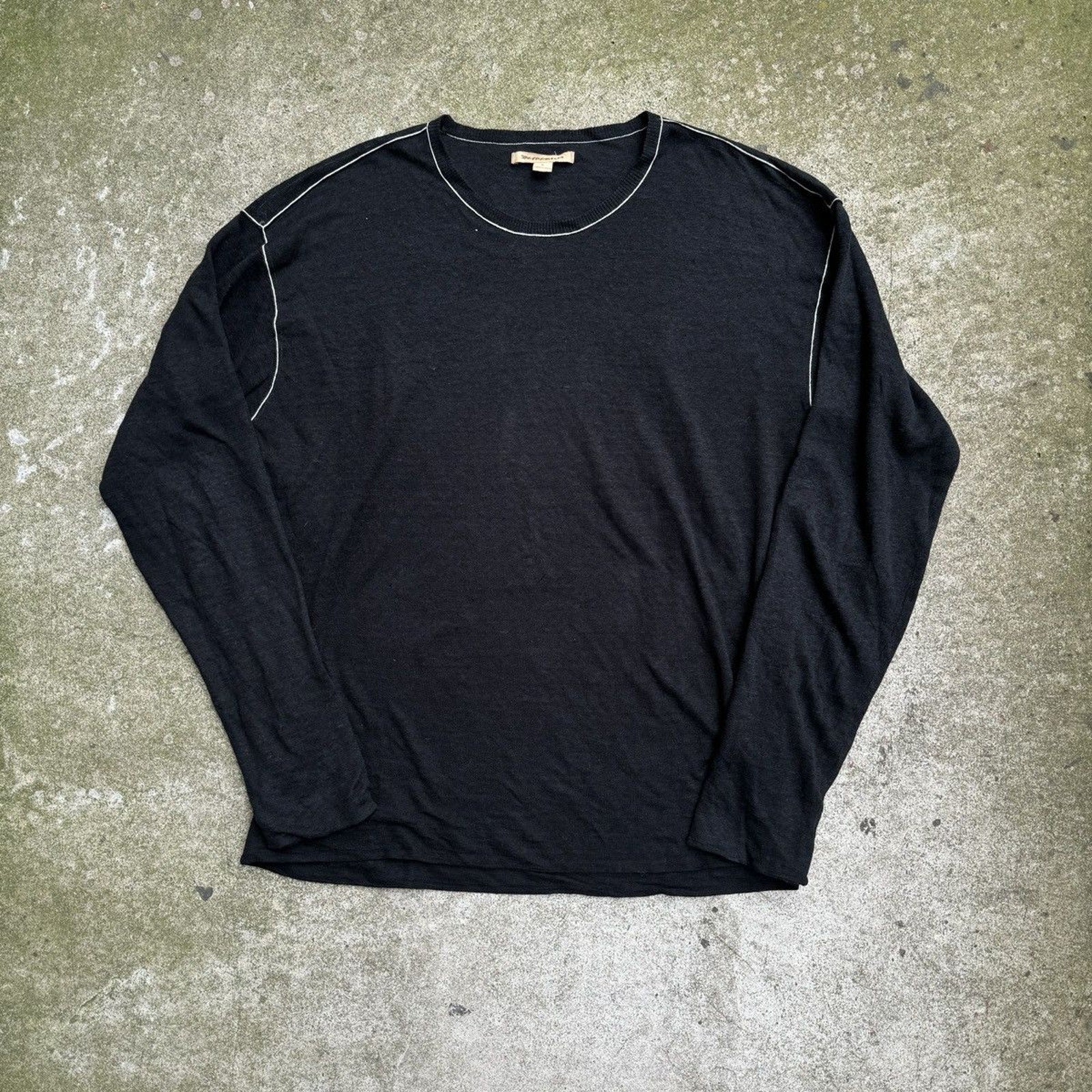 John Varvatos Manga larga de lino y seda con puntadas en contraste