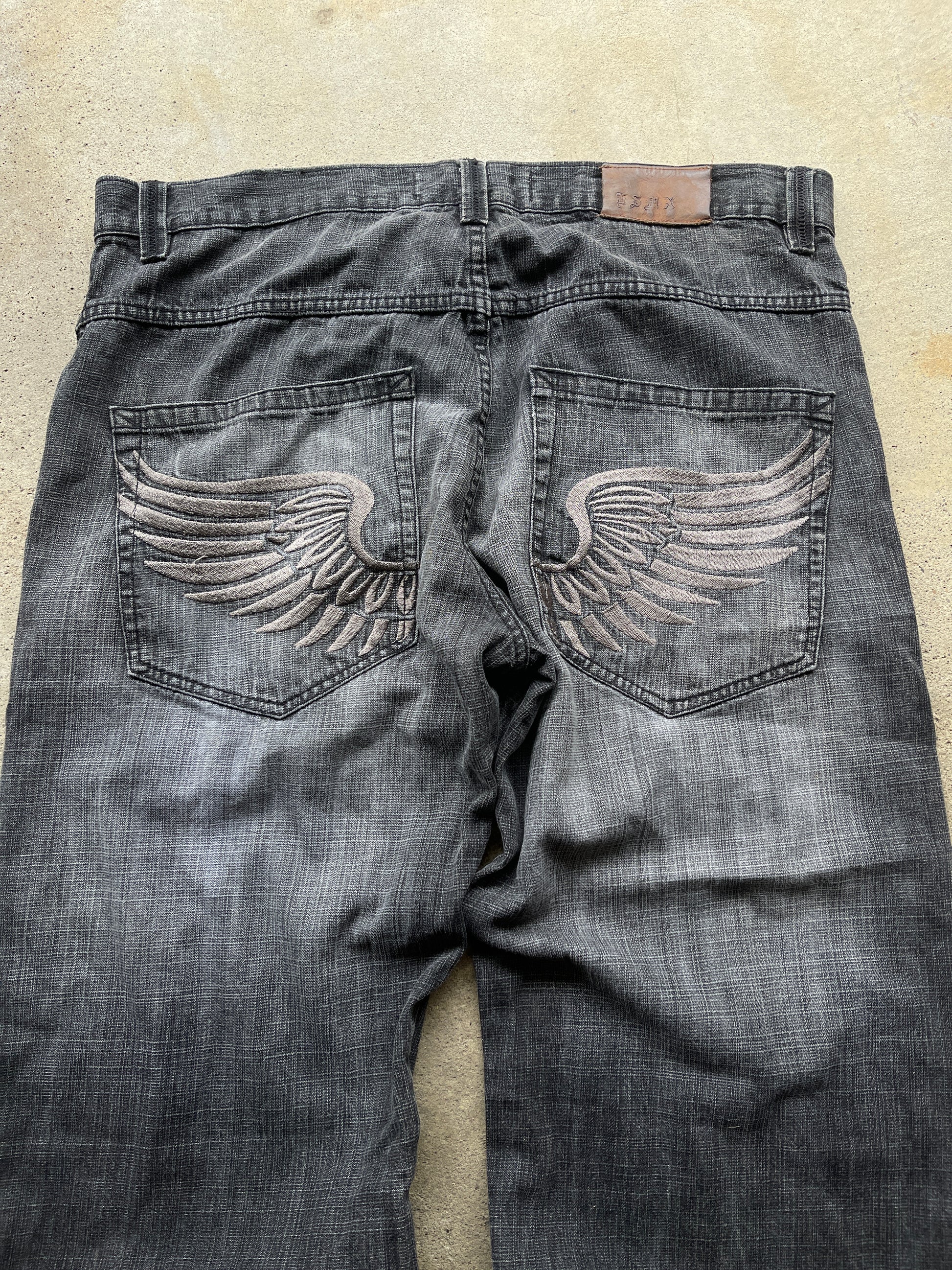 2000年代 スラッシュド バギー ウィング 刺繍 デニム スケーター ジーンズ