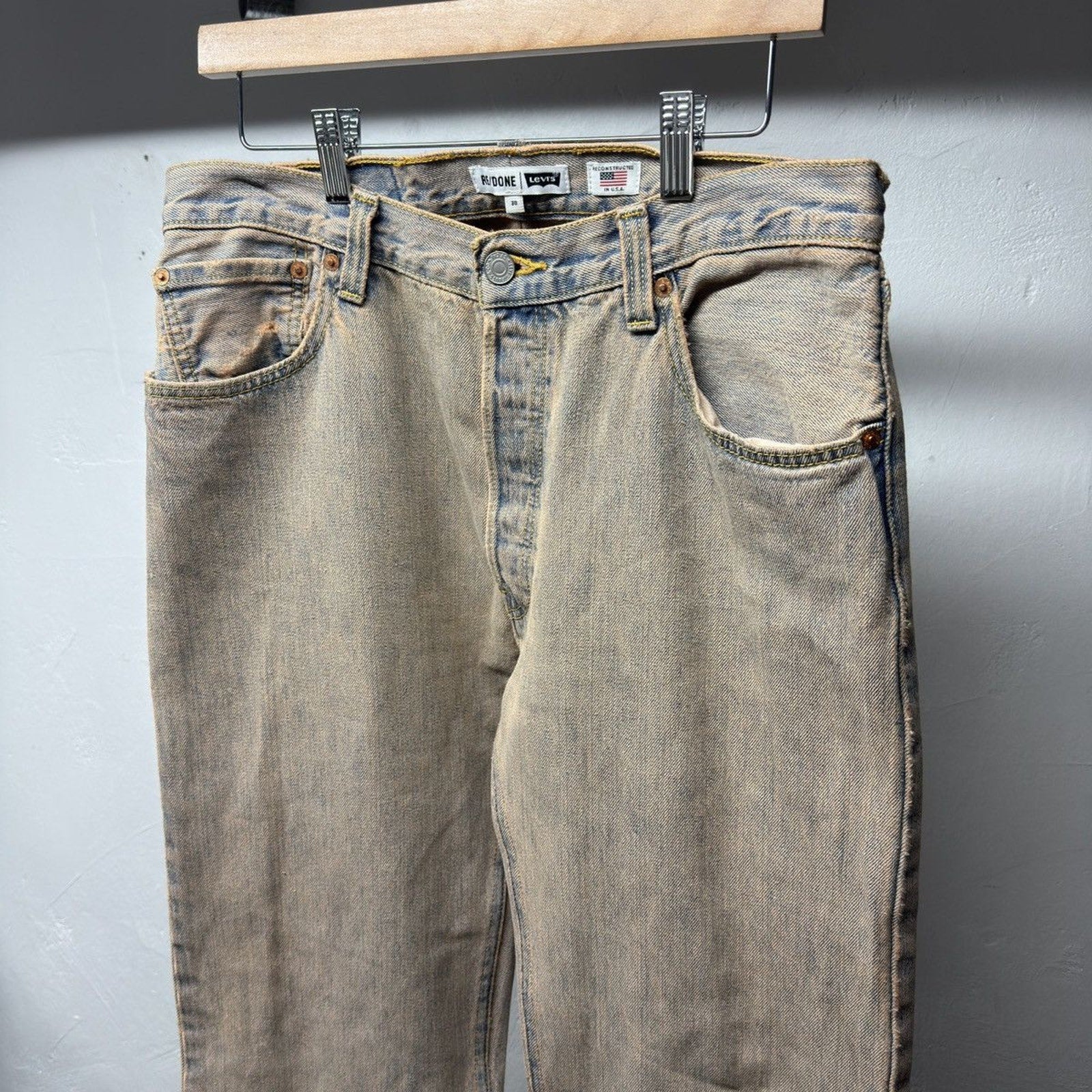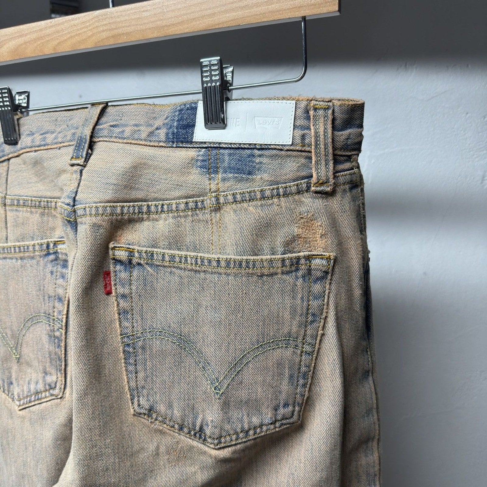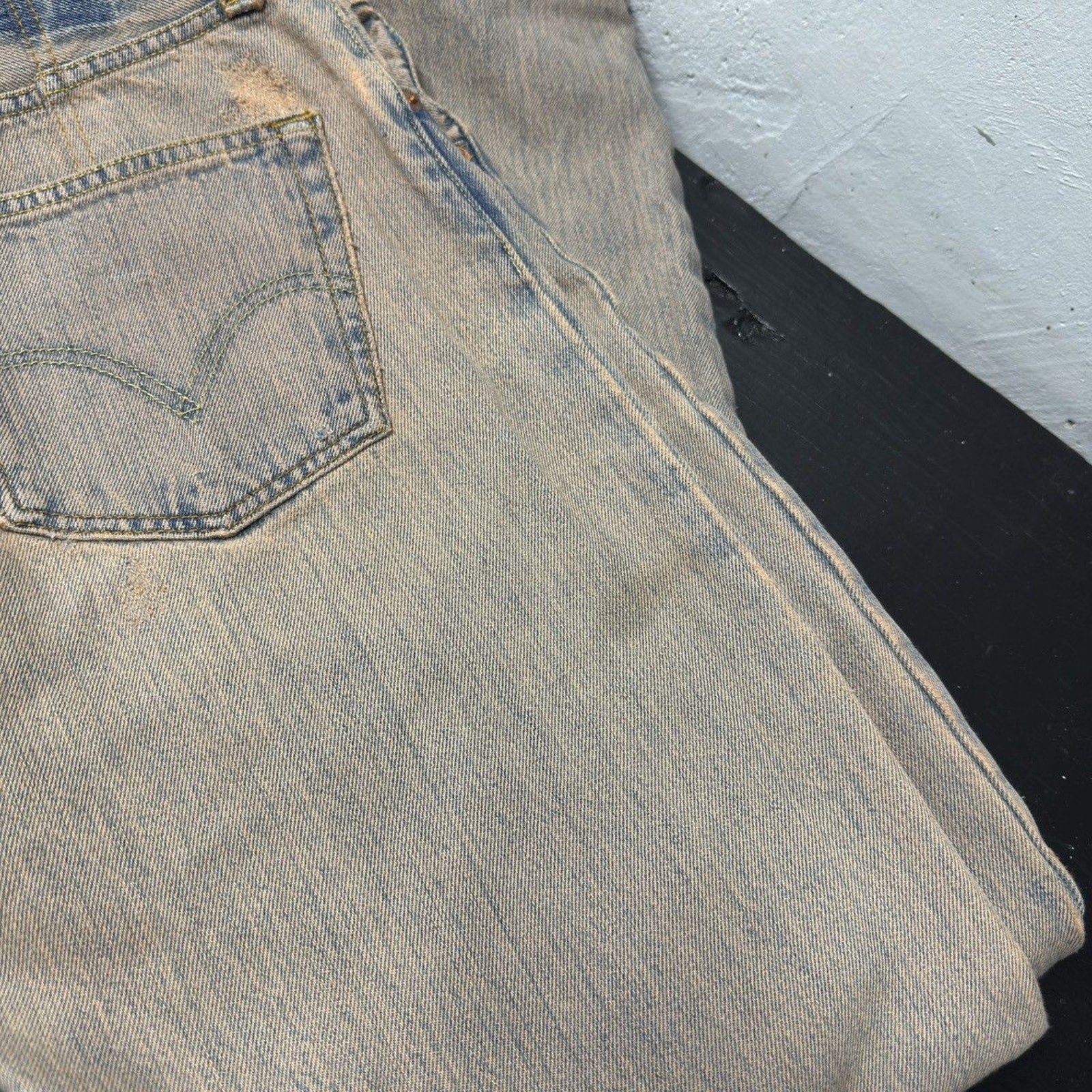 Excellent condition. Amazing wash. Great pair. 501 cut with button fly. Love these. Rare. Slight distressing as produced. So so good. Very rare