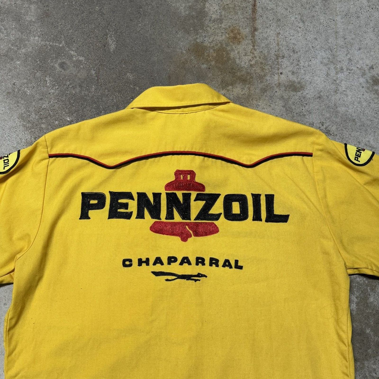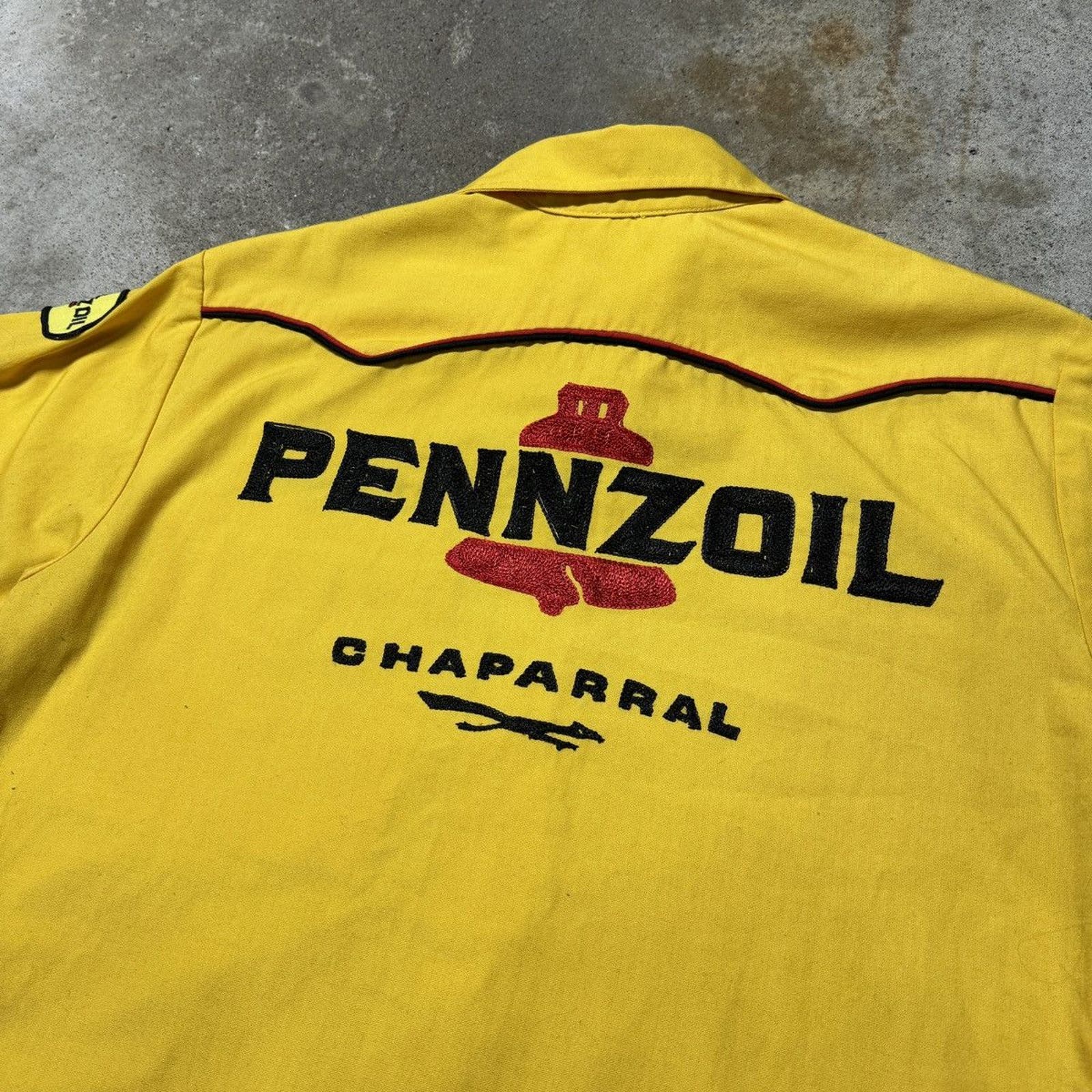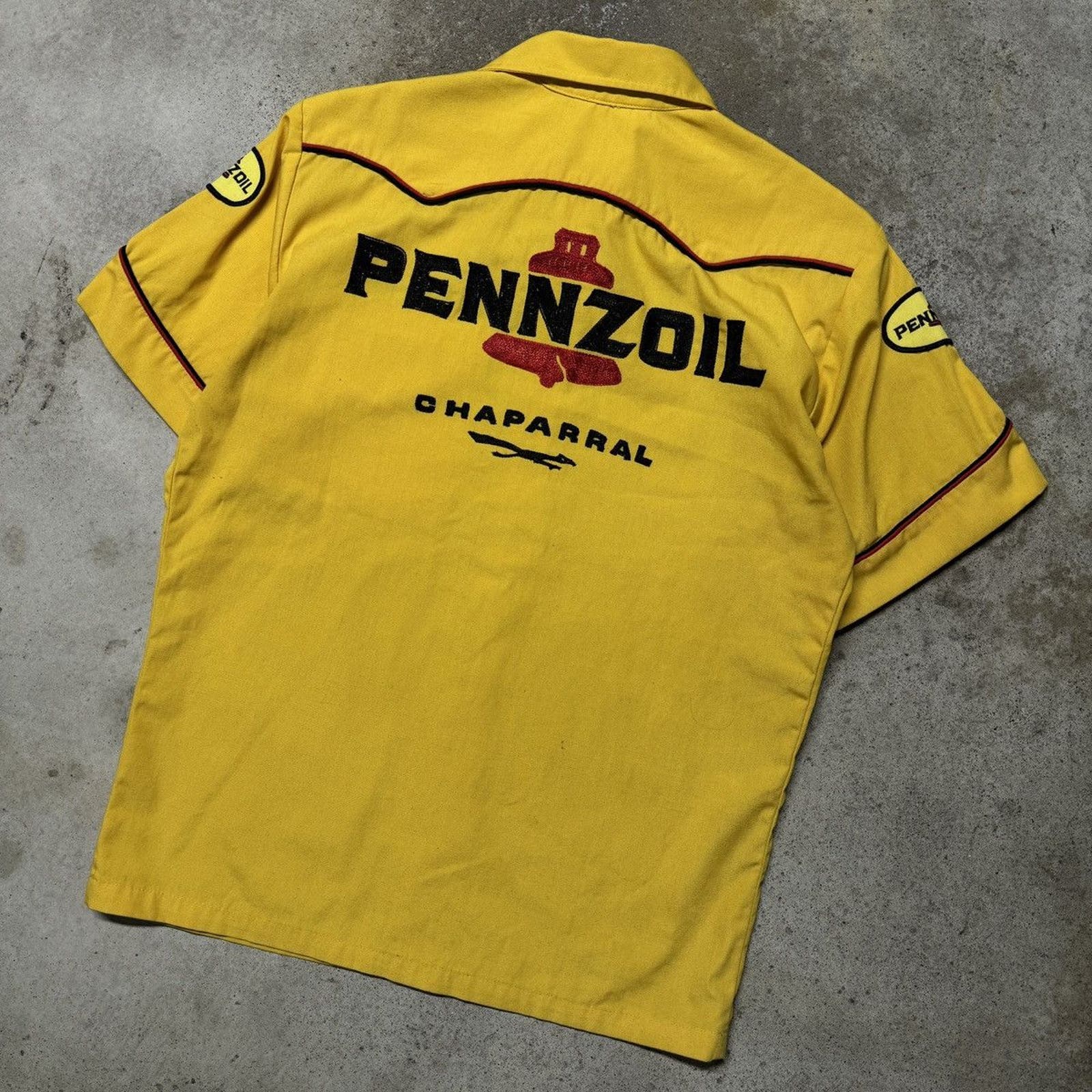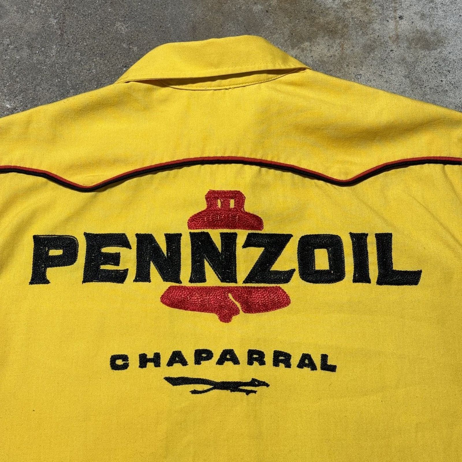 1950s 1960s PENNZOIL CHAPARRAL CHAIN STITCH BOWLING GARAGE SHIRT
