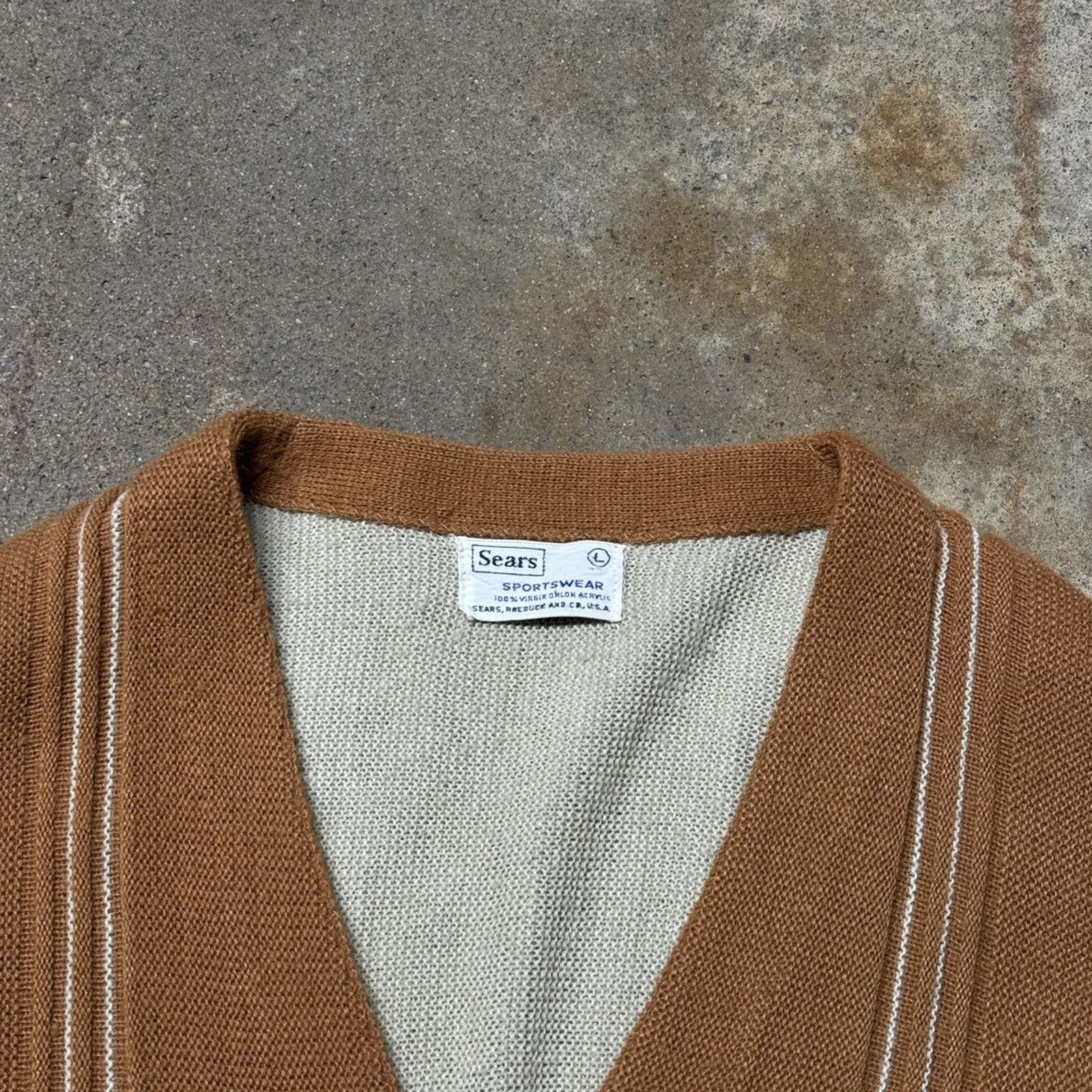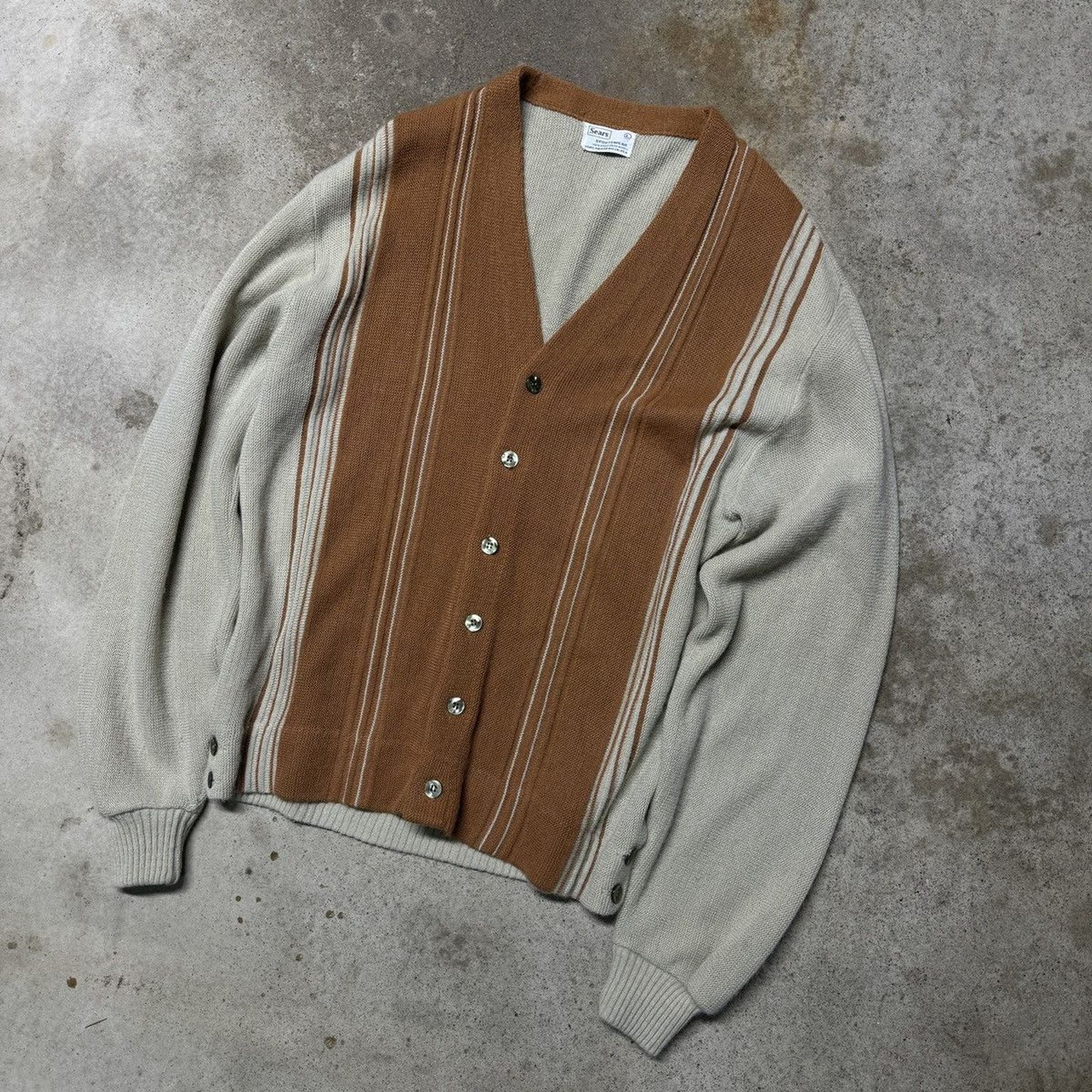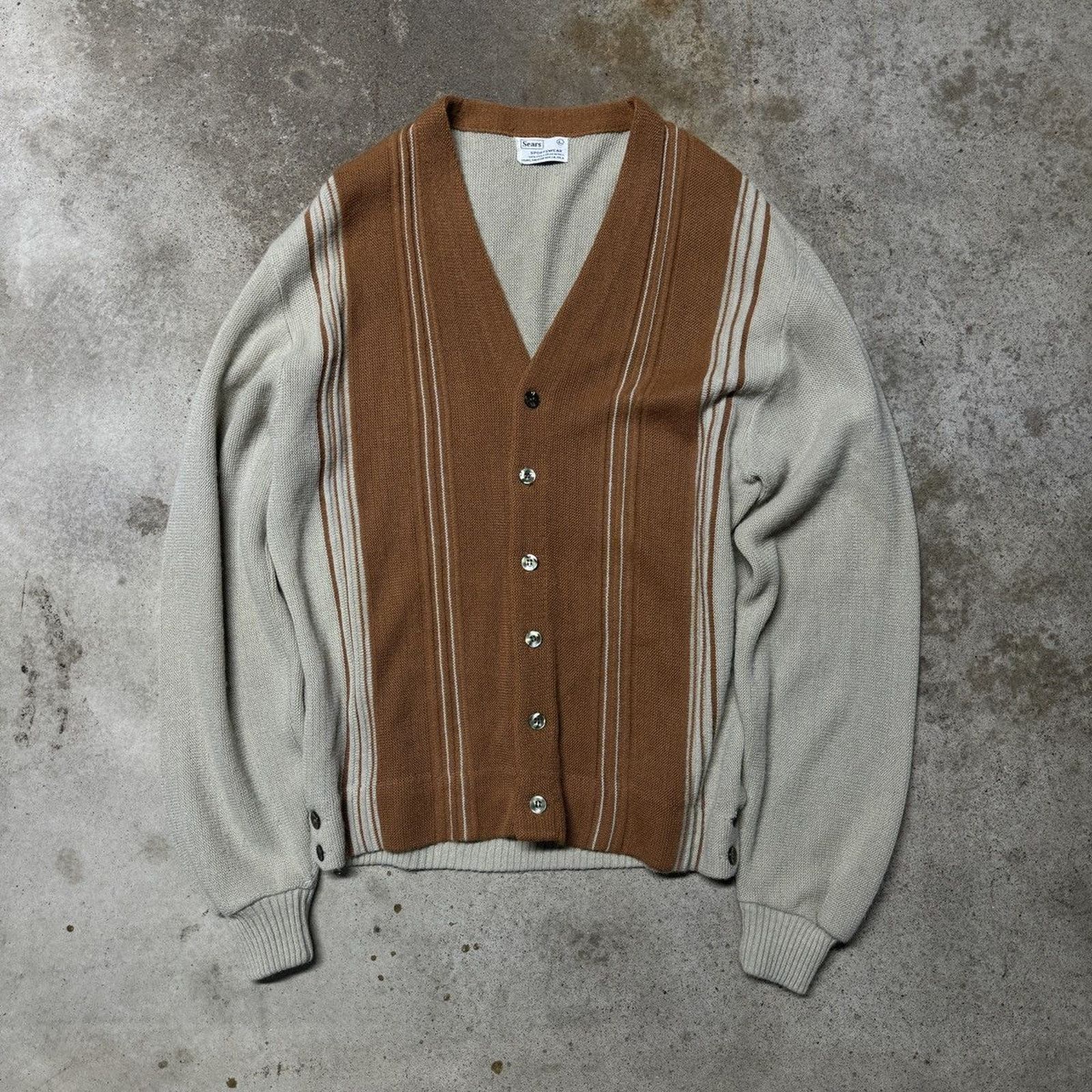 1960s 1970s Sears Striped Acrylic Cardigan Sweater