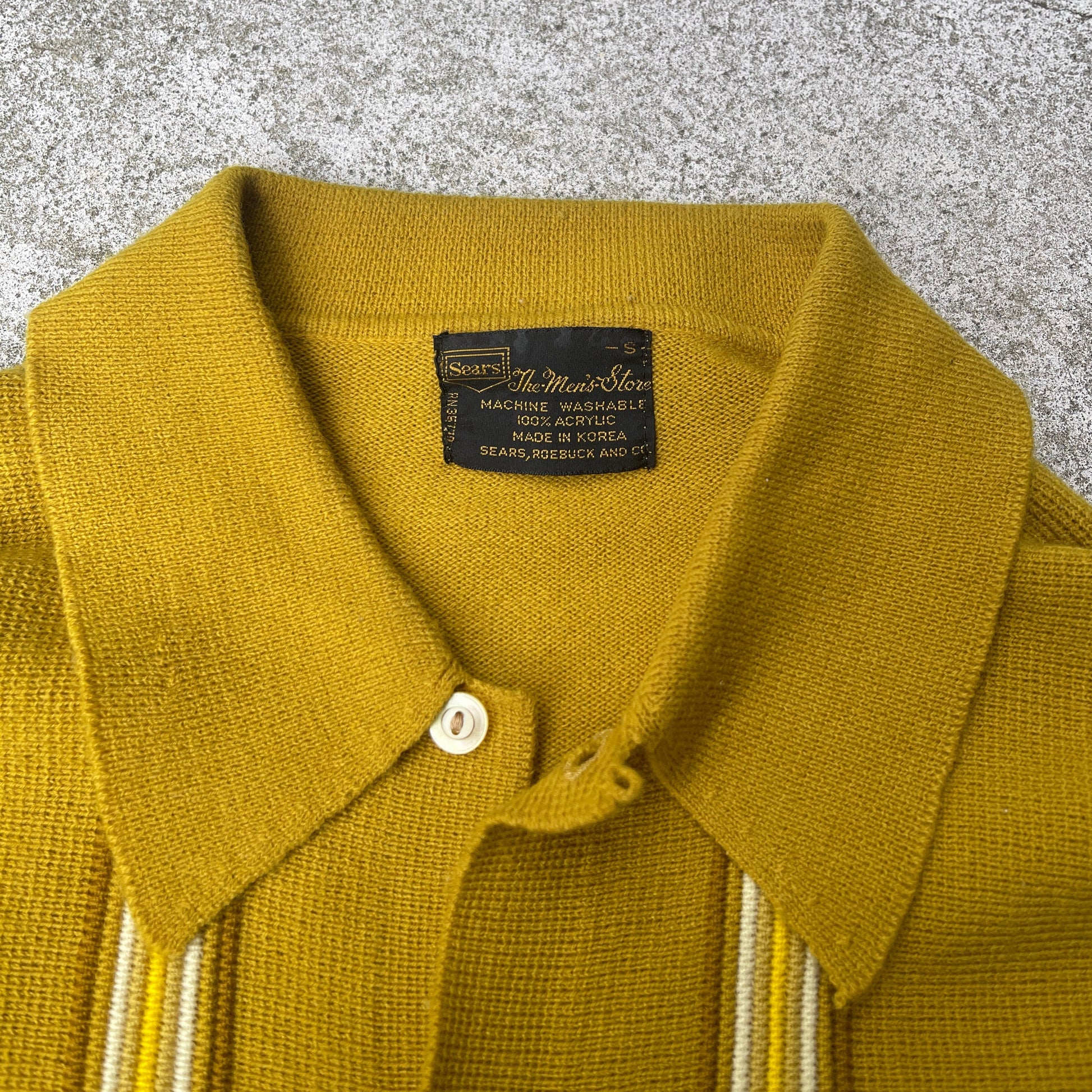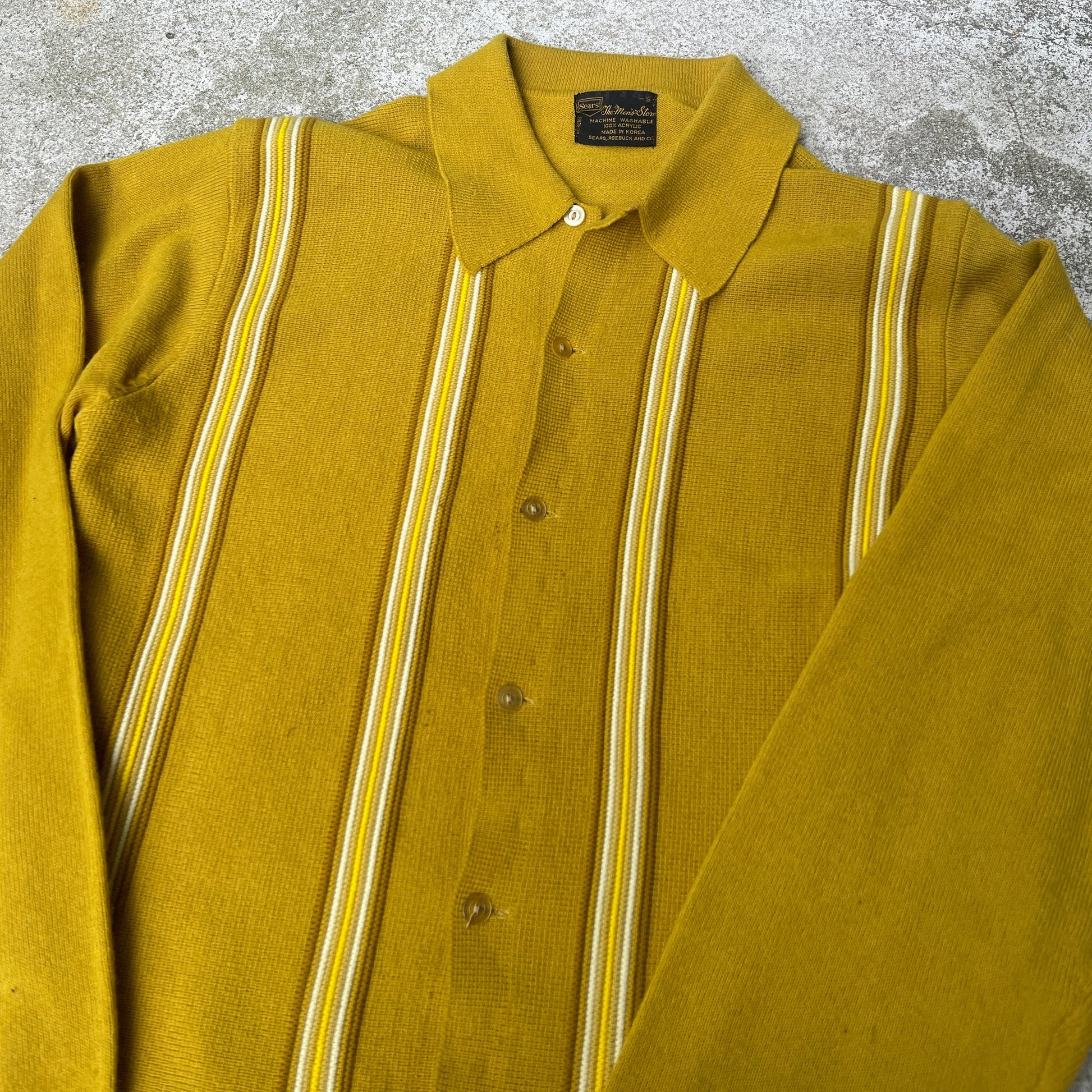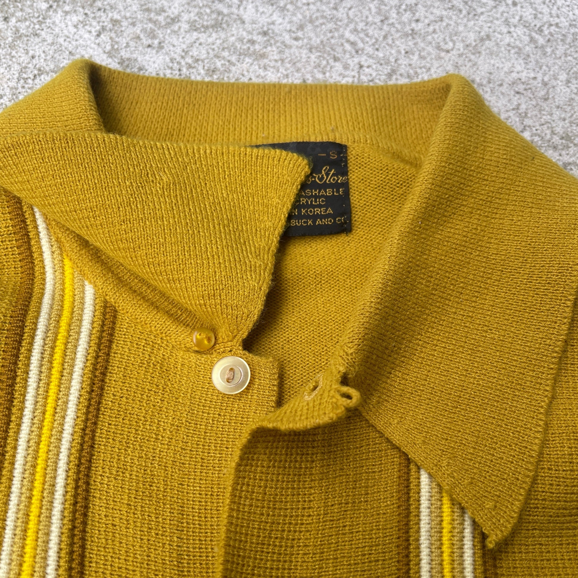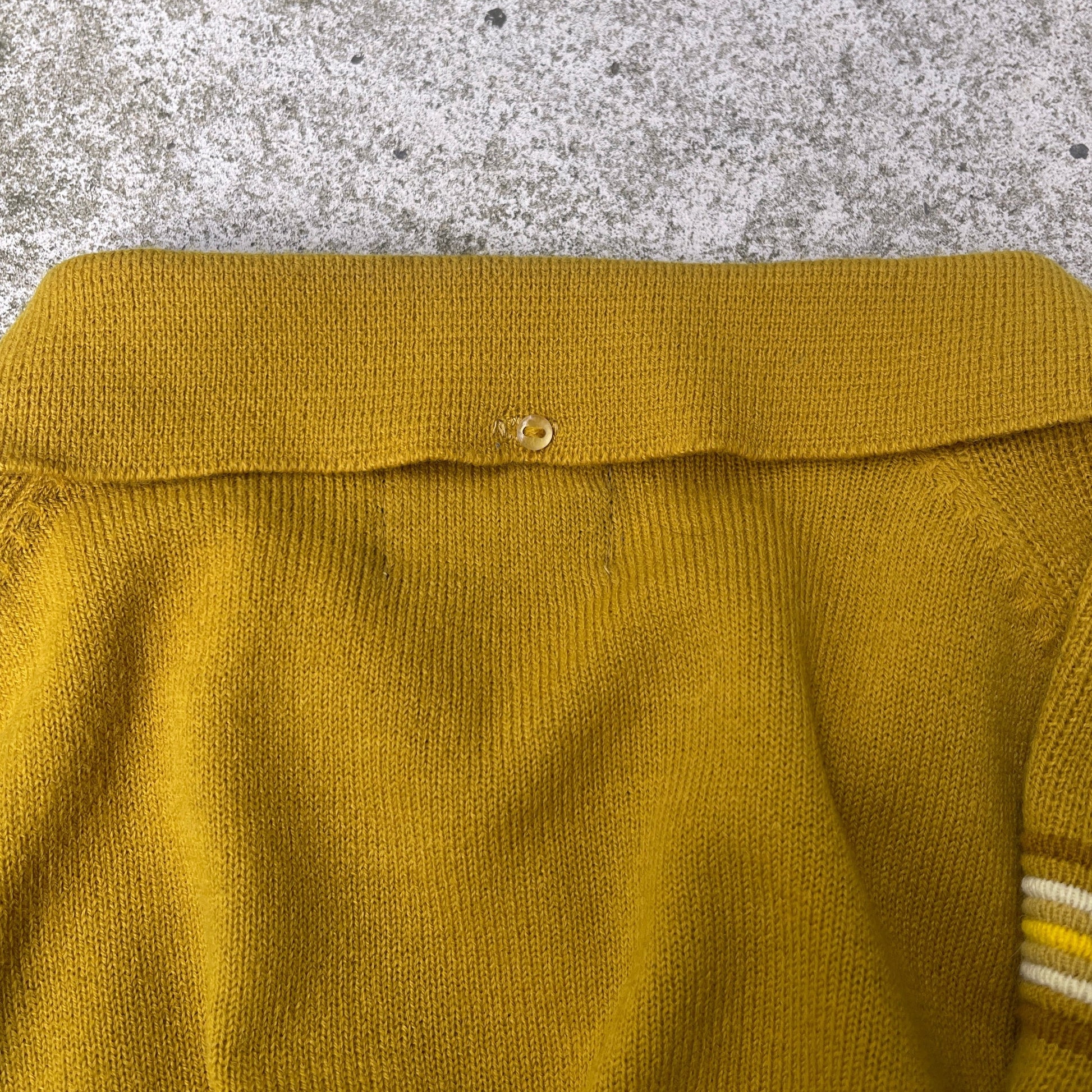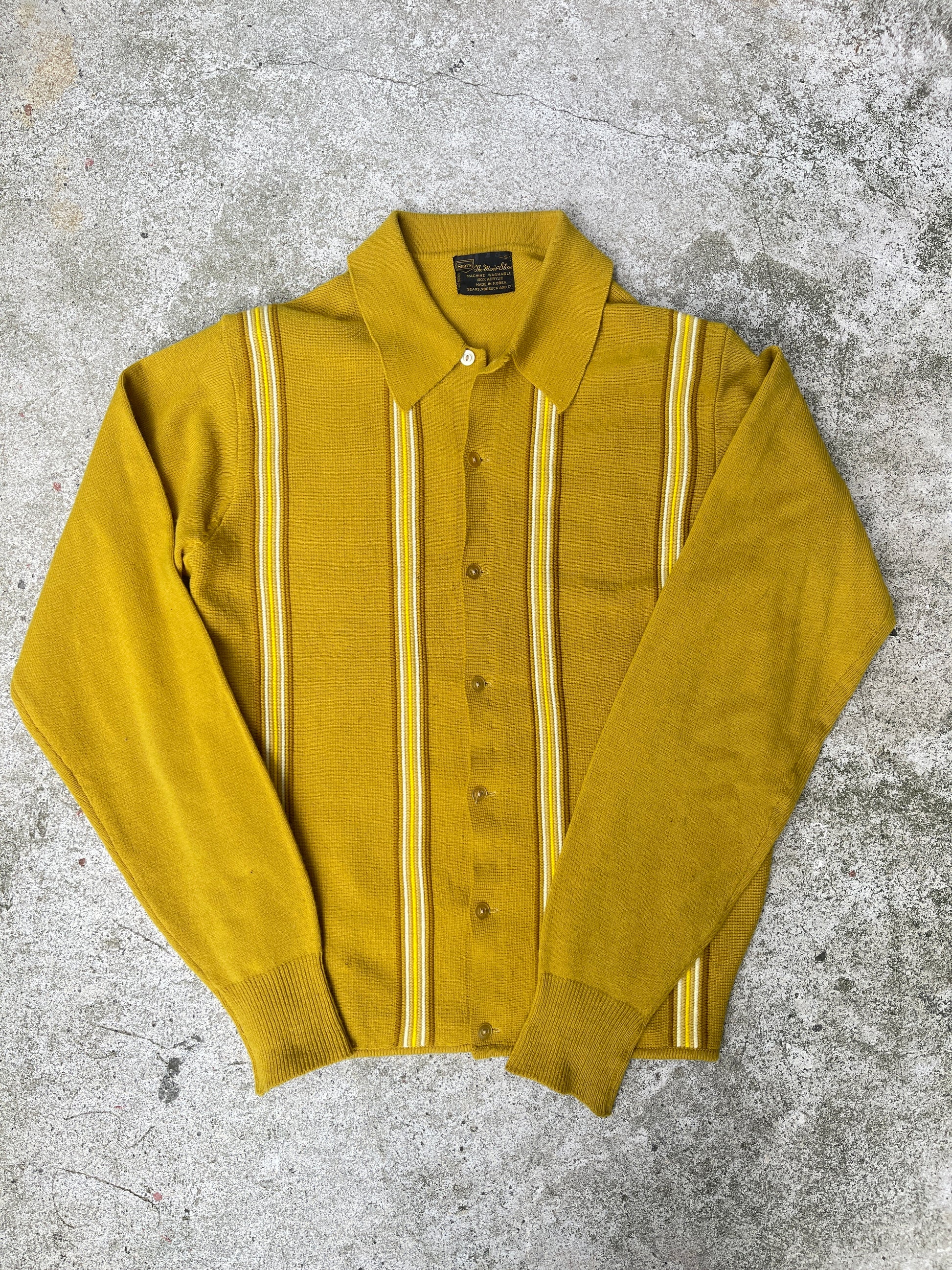 1960s 1970s SEARS STRIPED MUSTARD ACRYLIC CARDIGAN