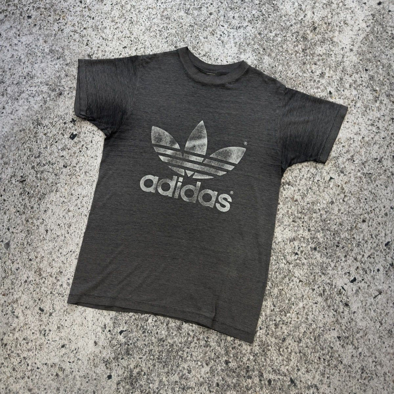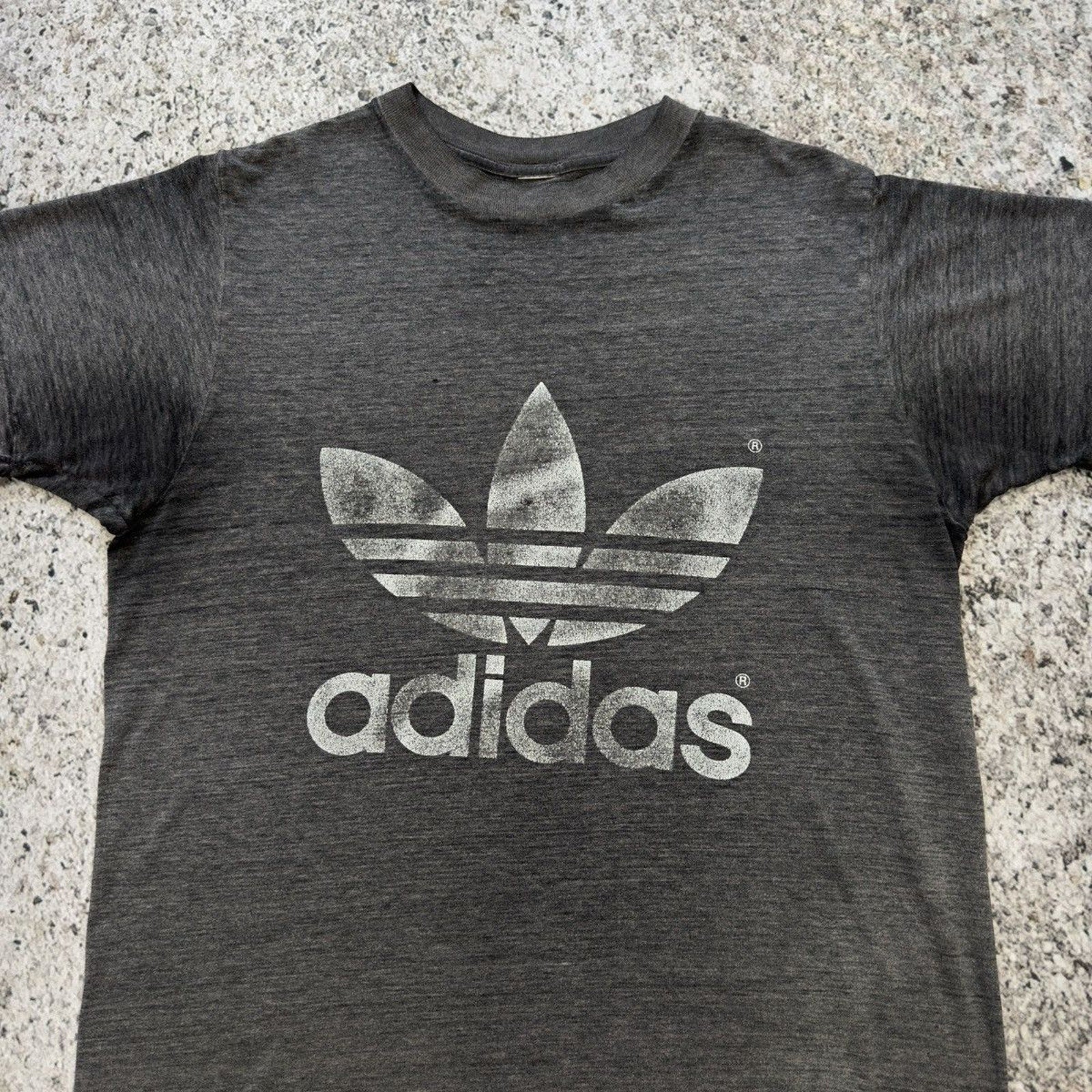 1980s Adidas Thrashed Faded Logo Tee