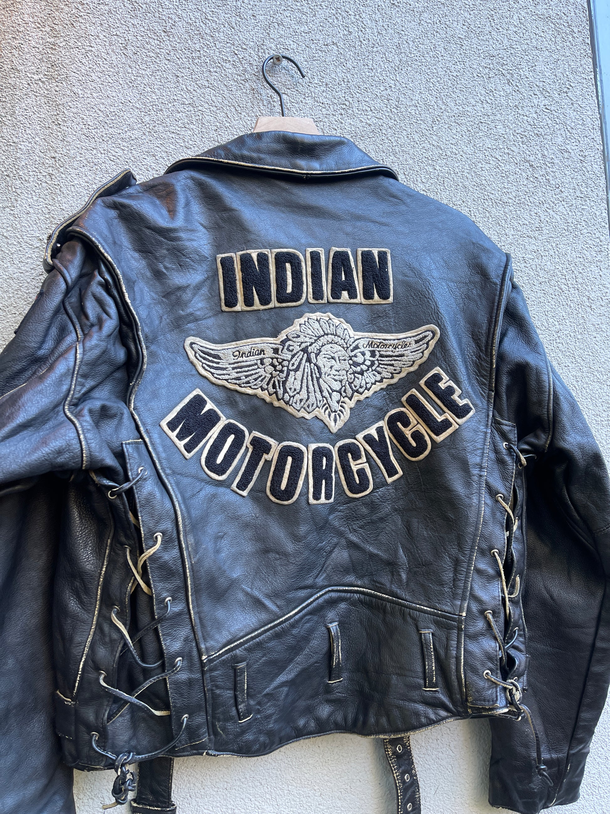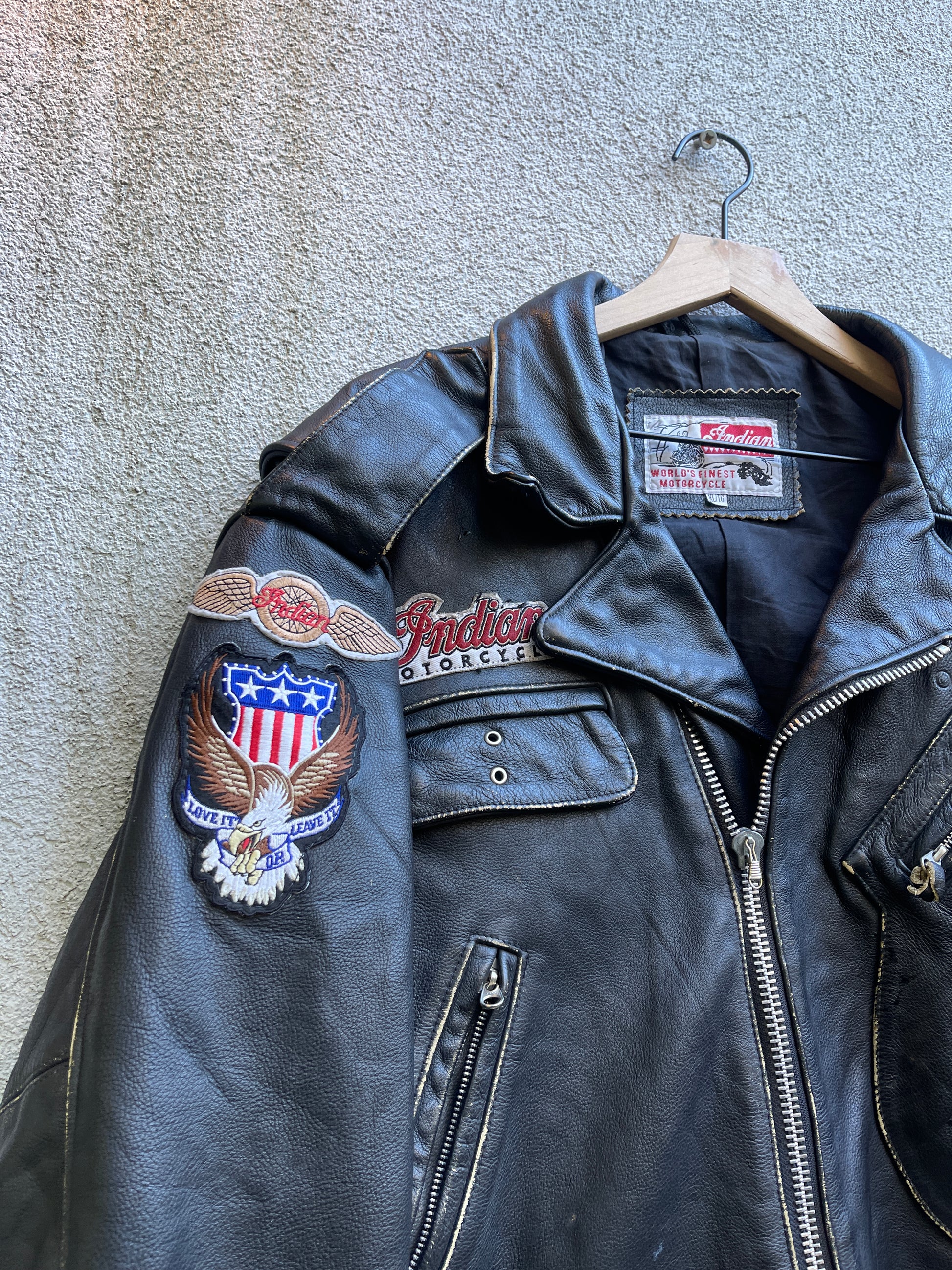 1980s Indians Motorcycles Patched Genuine Leather Biker Jacket
