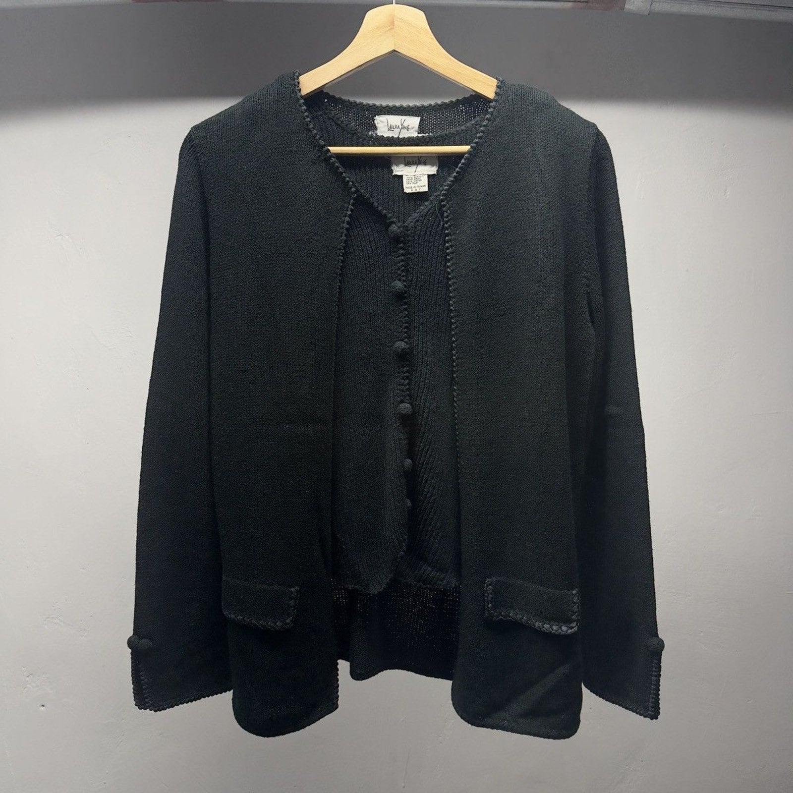 1980s Women's Saks Fifth Ave Laura Yang Knit Cardigan Twinset Sweater