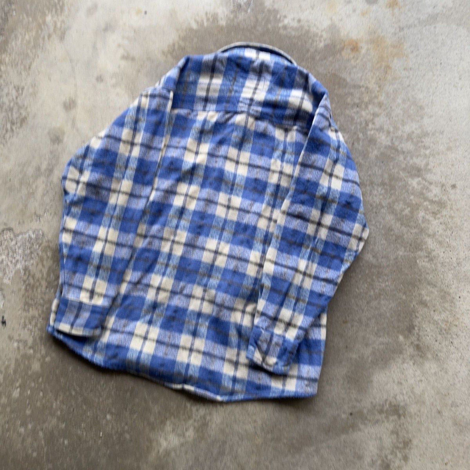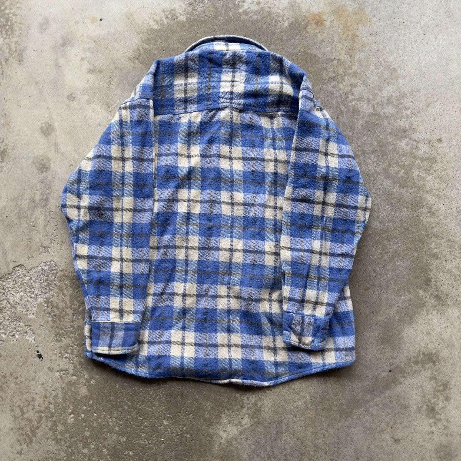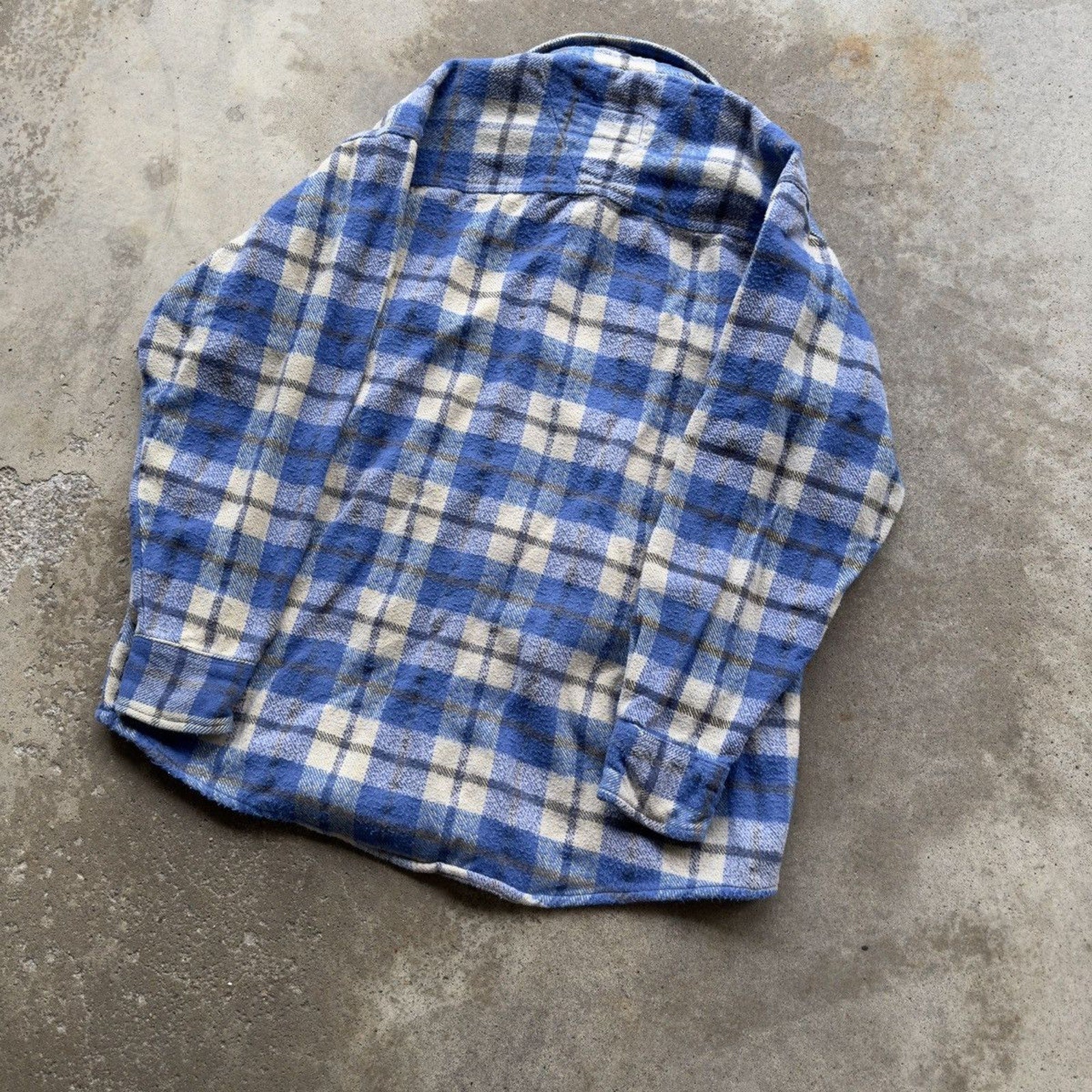 1990S/2000S Y2K BLUE PLAID WOOL FLANNEL BUTTON UP SHIRT