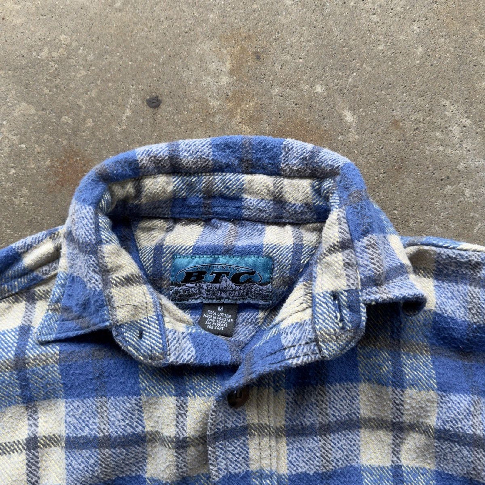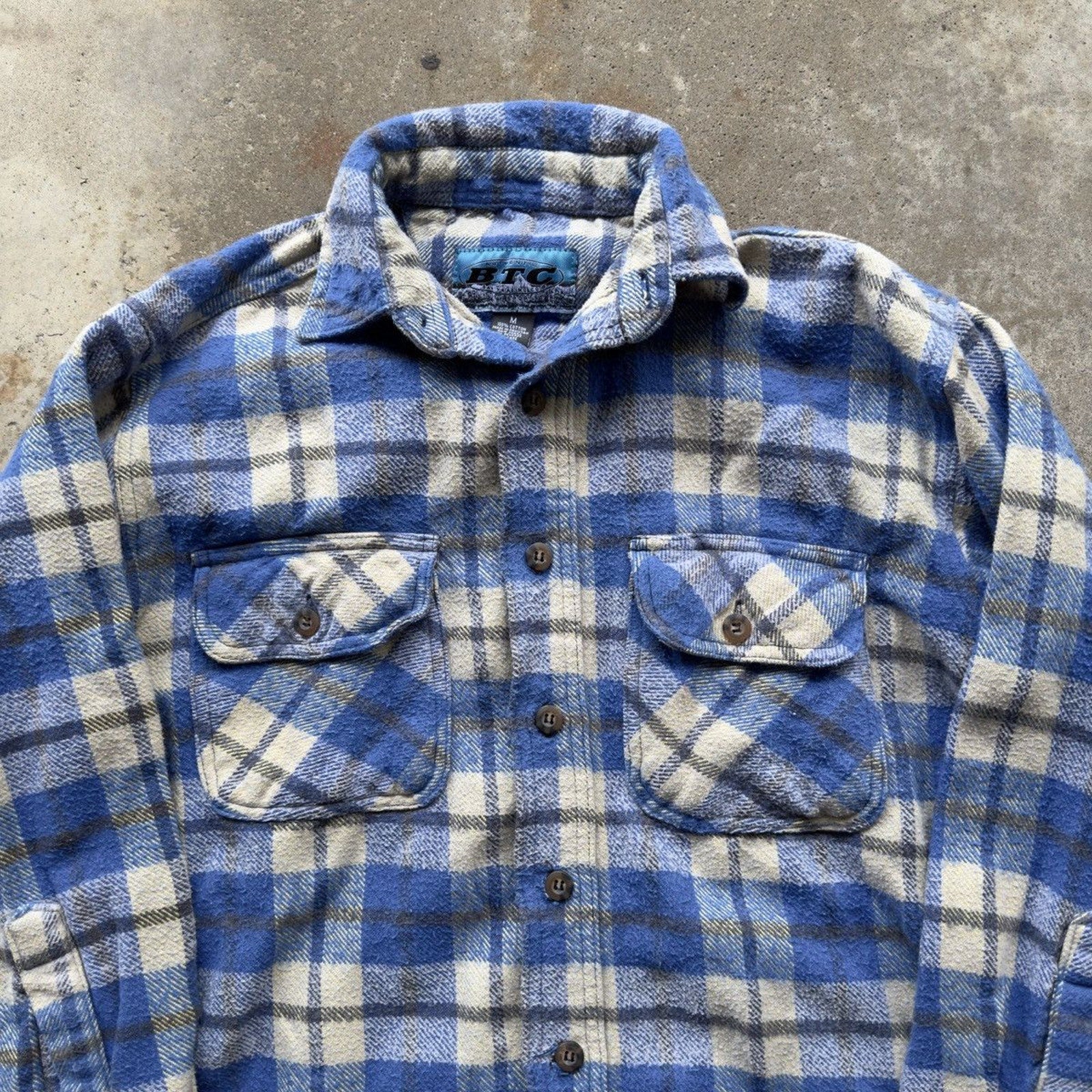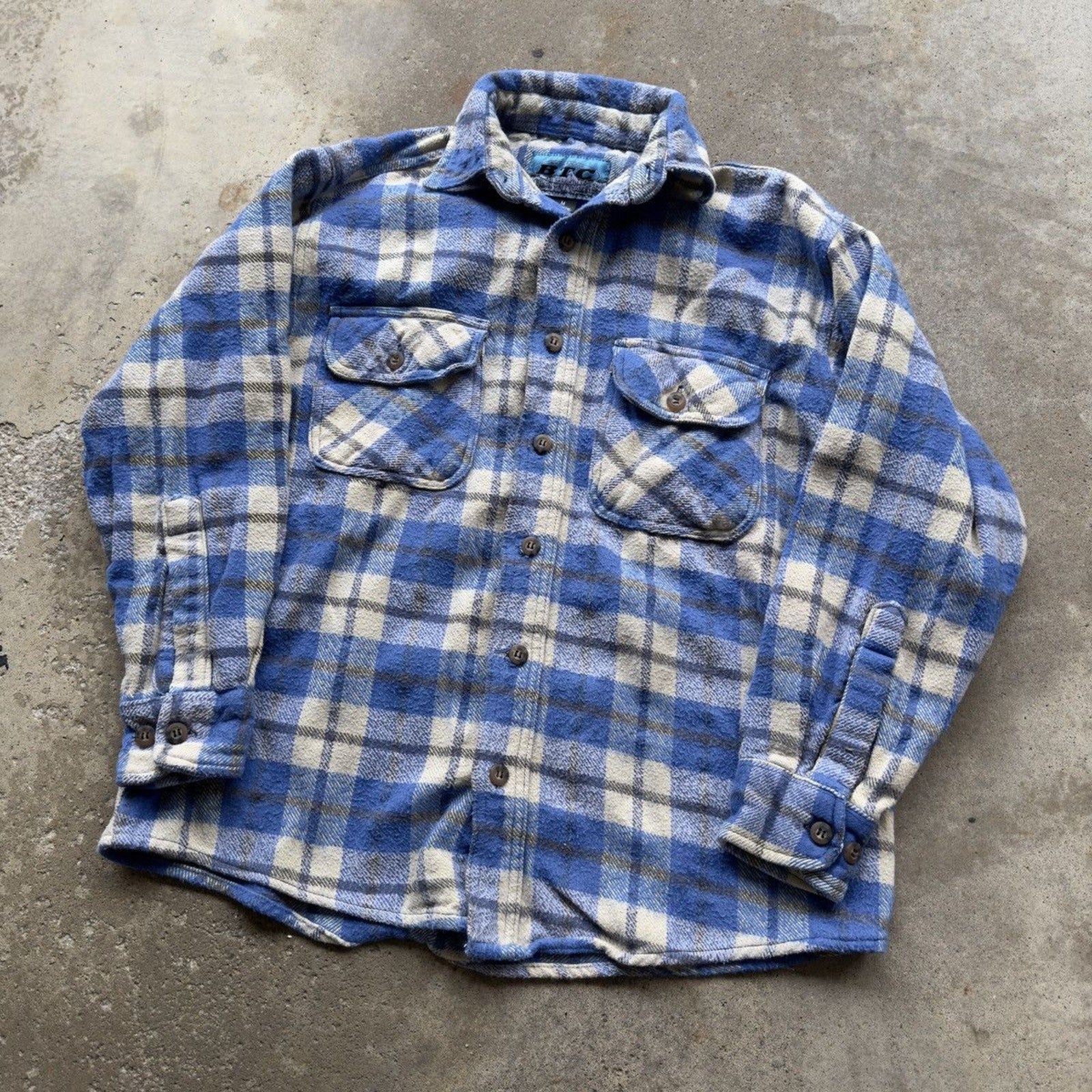 1990S/2000S Y2K BLUE PLAID WOOL FLANNEL BUTTON UP SHIRT