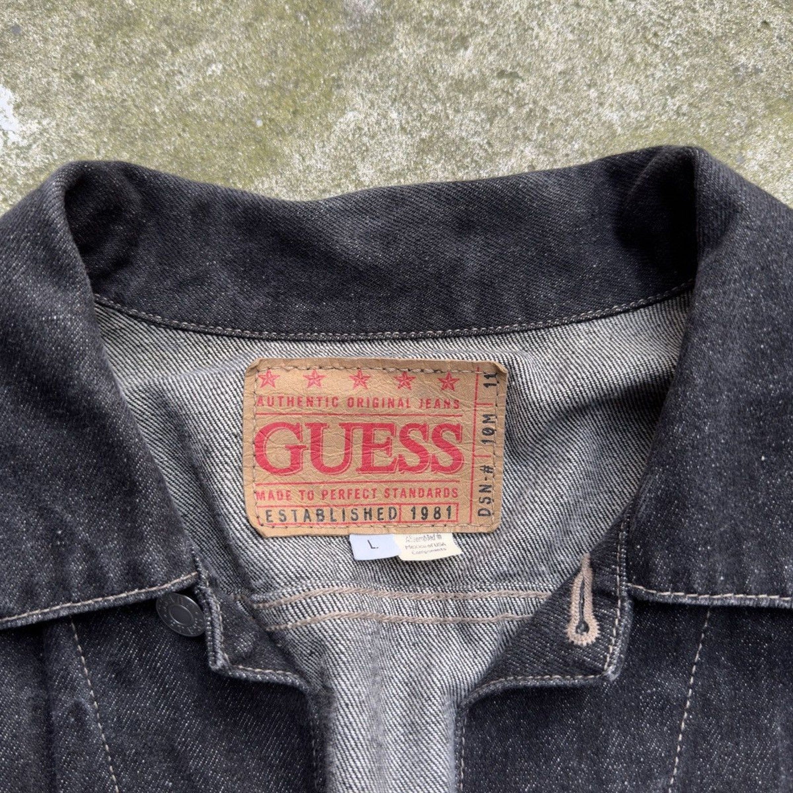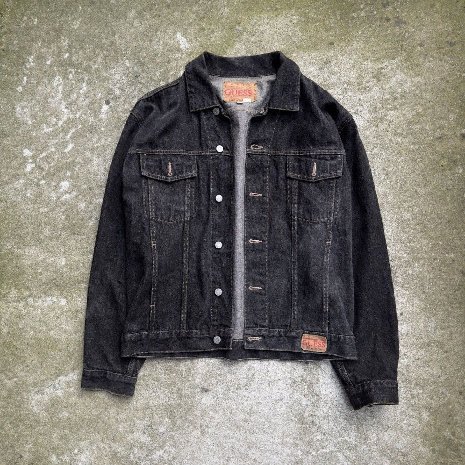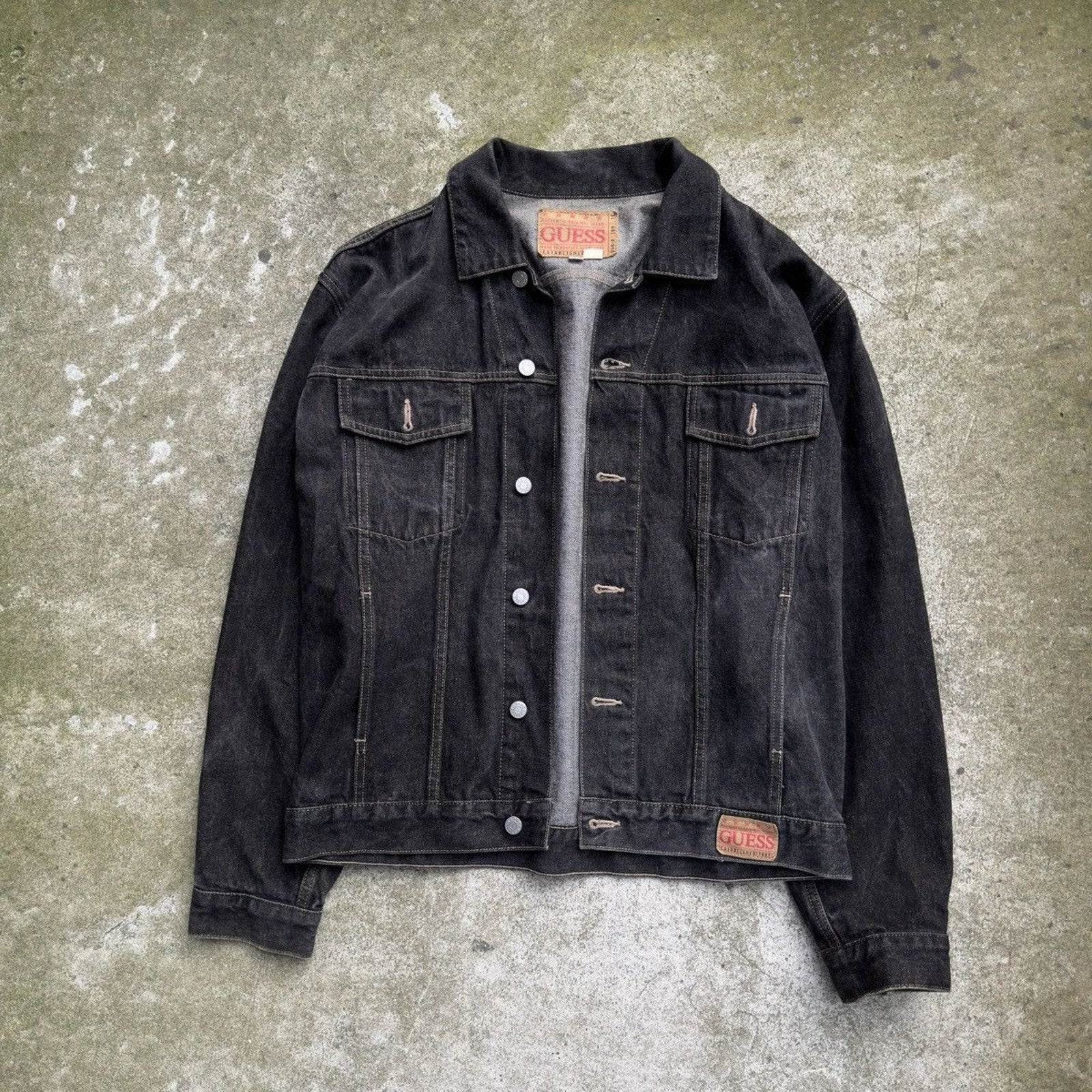 1990 Guess Faded Washed Black Denim Trucker Jacket