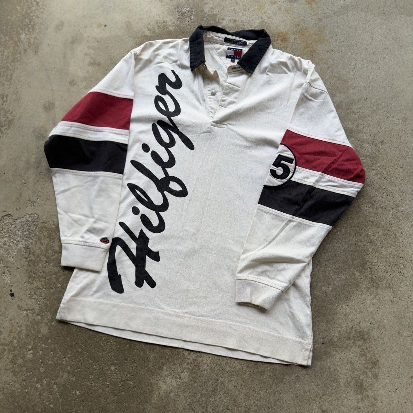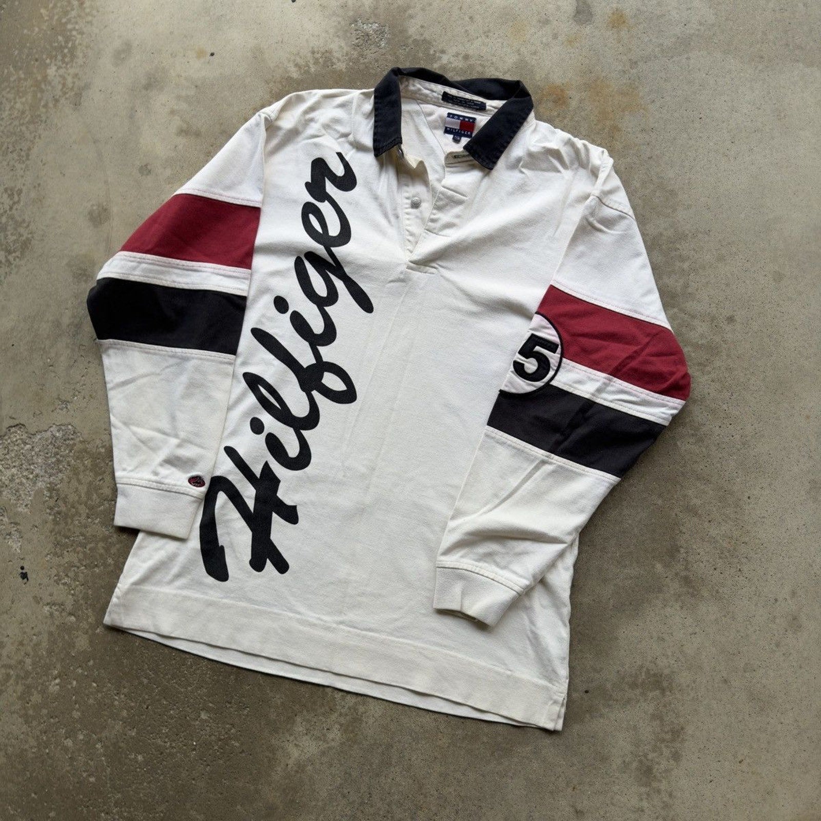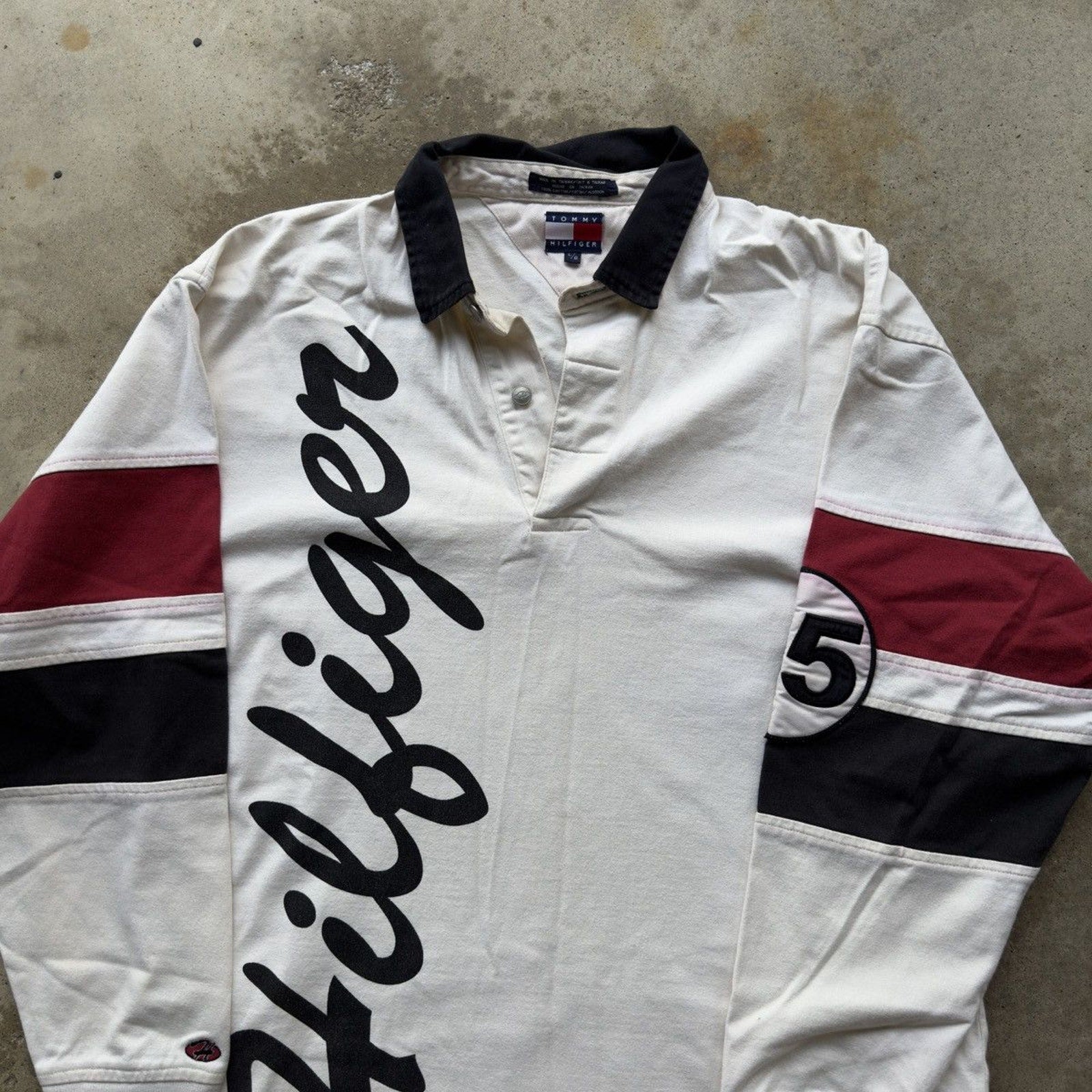 1990S/2000S Y2K TOMMY HILFIGER STRIPED LOGO RUGBY SHIRT