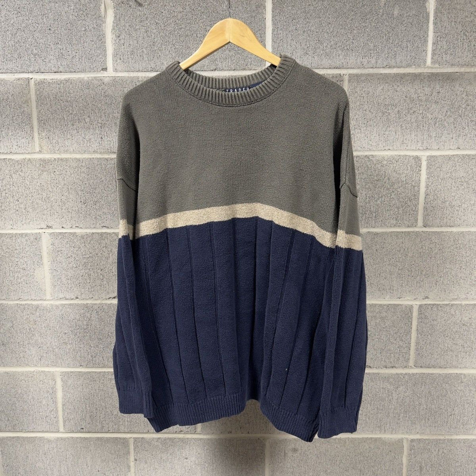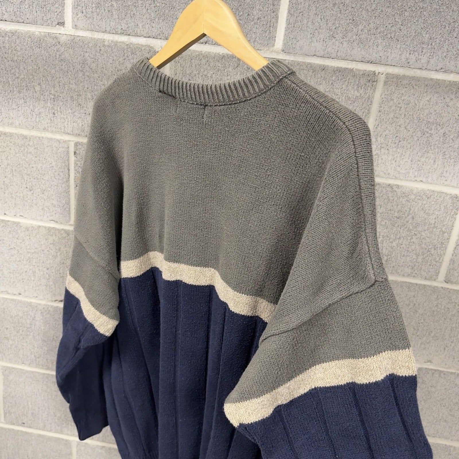 1990s Blue Green Ribbed Cotton Sweater