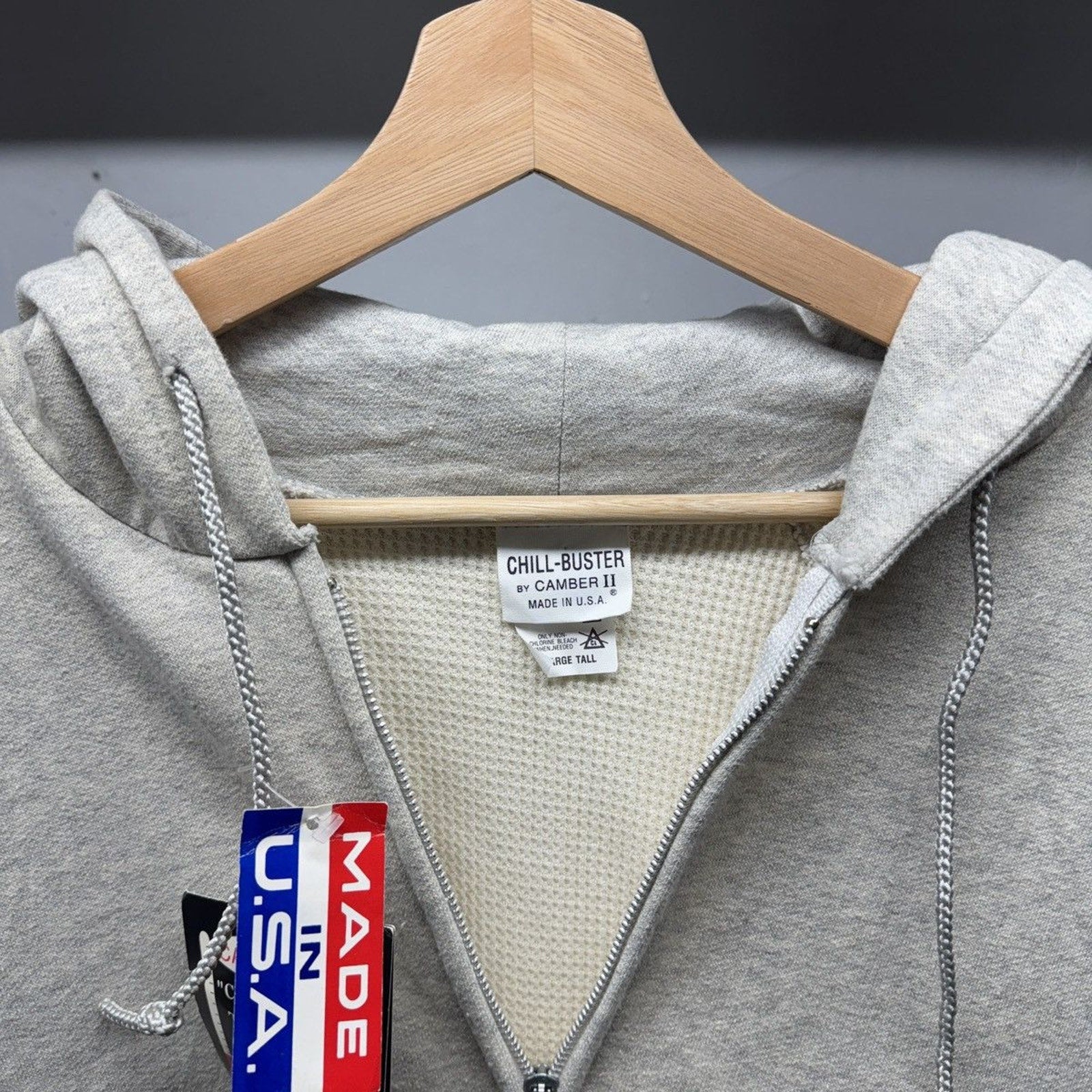 1990s Camber Chill-Buster II Blank Grey Thermal Lined Zip Up Hoodie