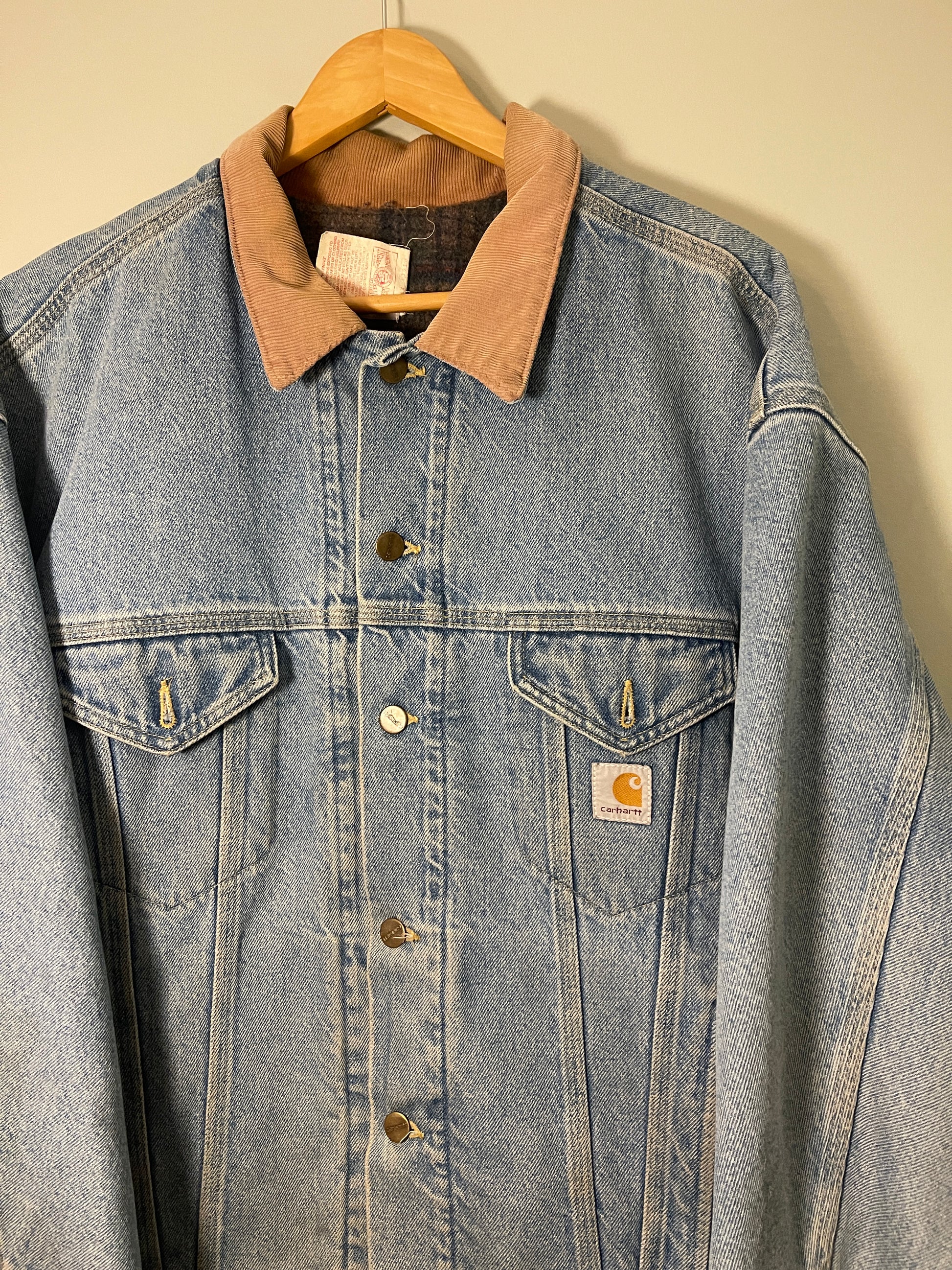 1990s CARHARTT BLANKET LINED DENIM TRUCKER JACKET