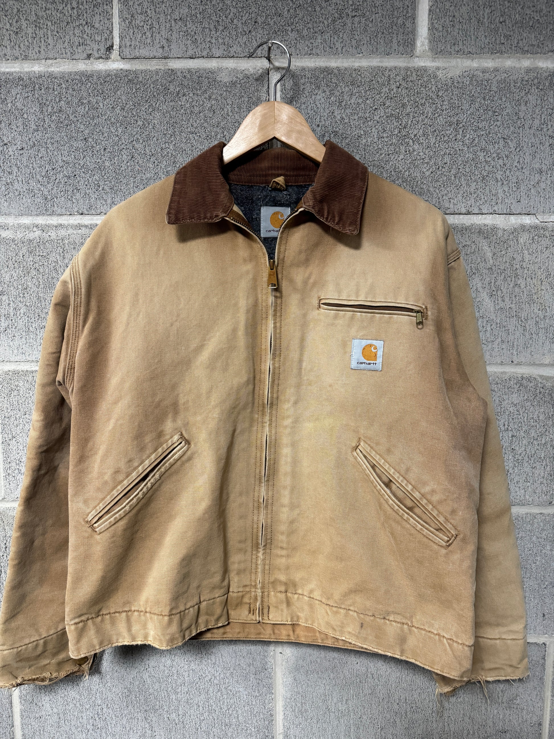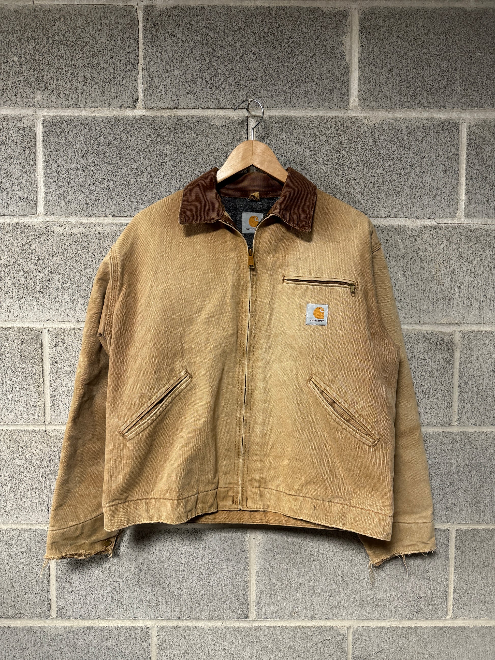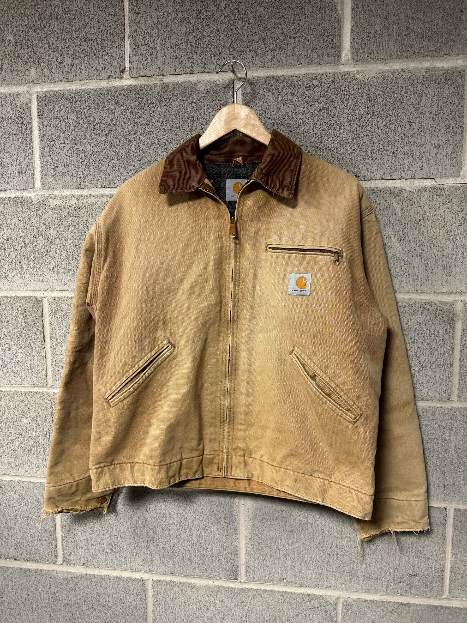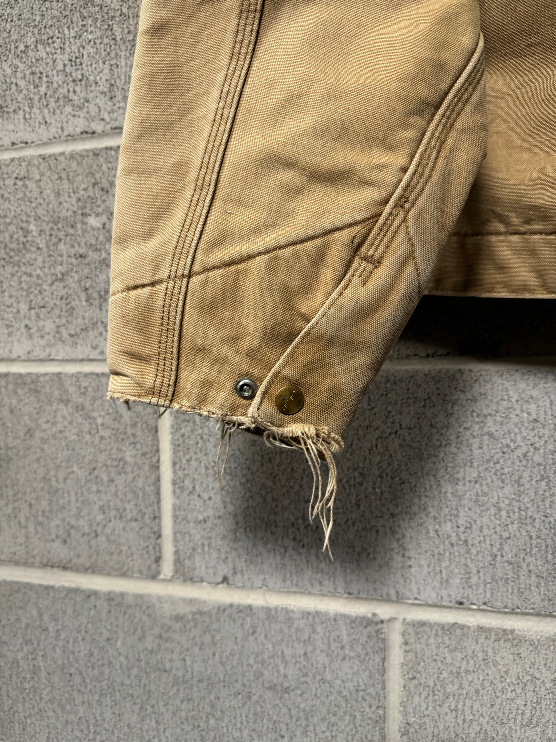 1990S CARHARTT BLANKET LINED DETROIT JACKET TAN LIGHTY THRASHED FADED