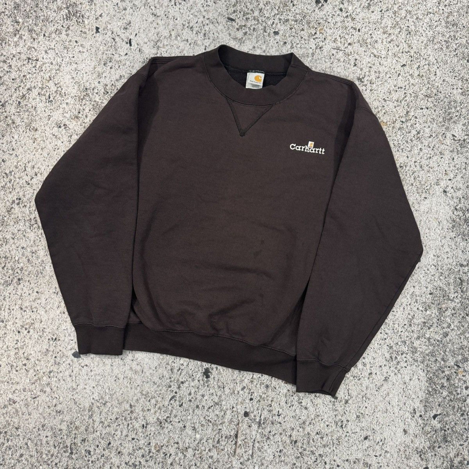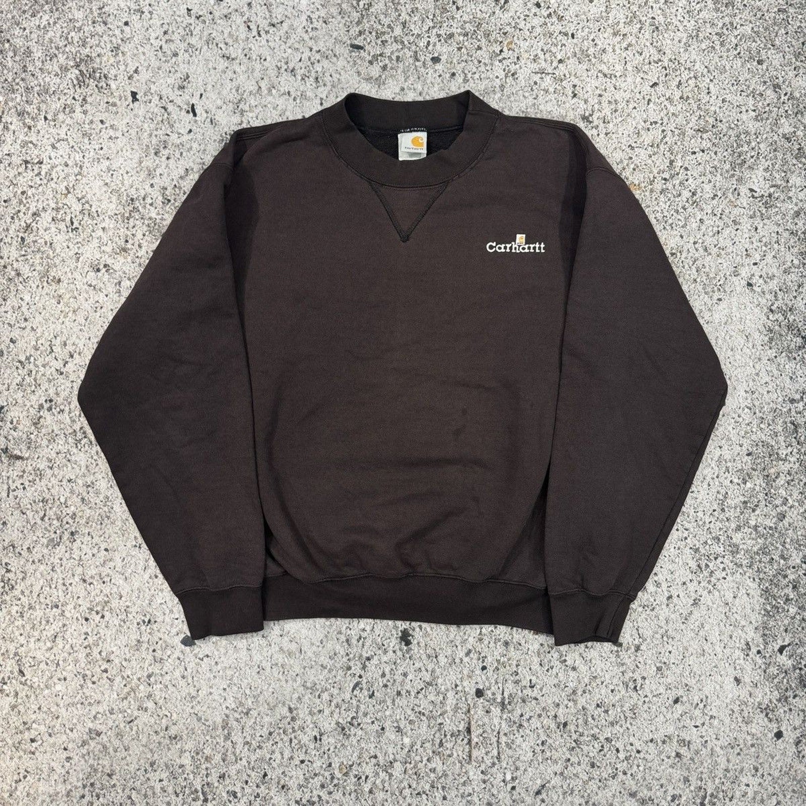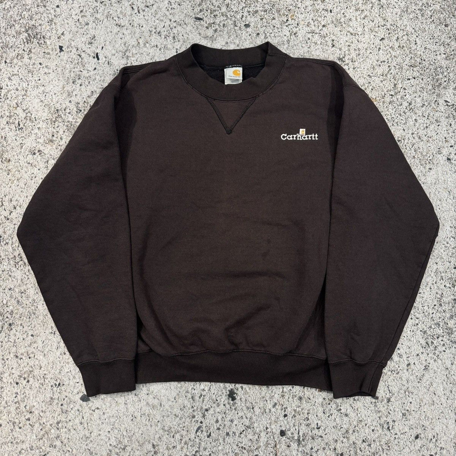 1990s Carhartt Faded Black Heavyweight Logo Crewneck