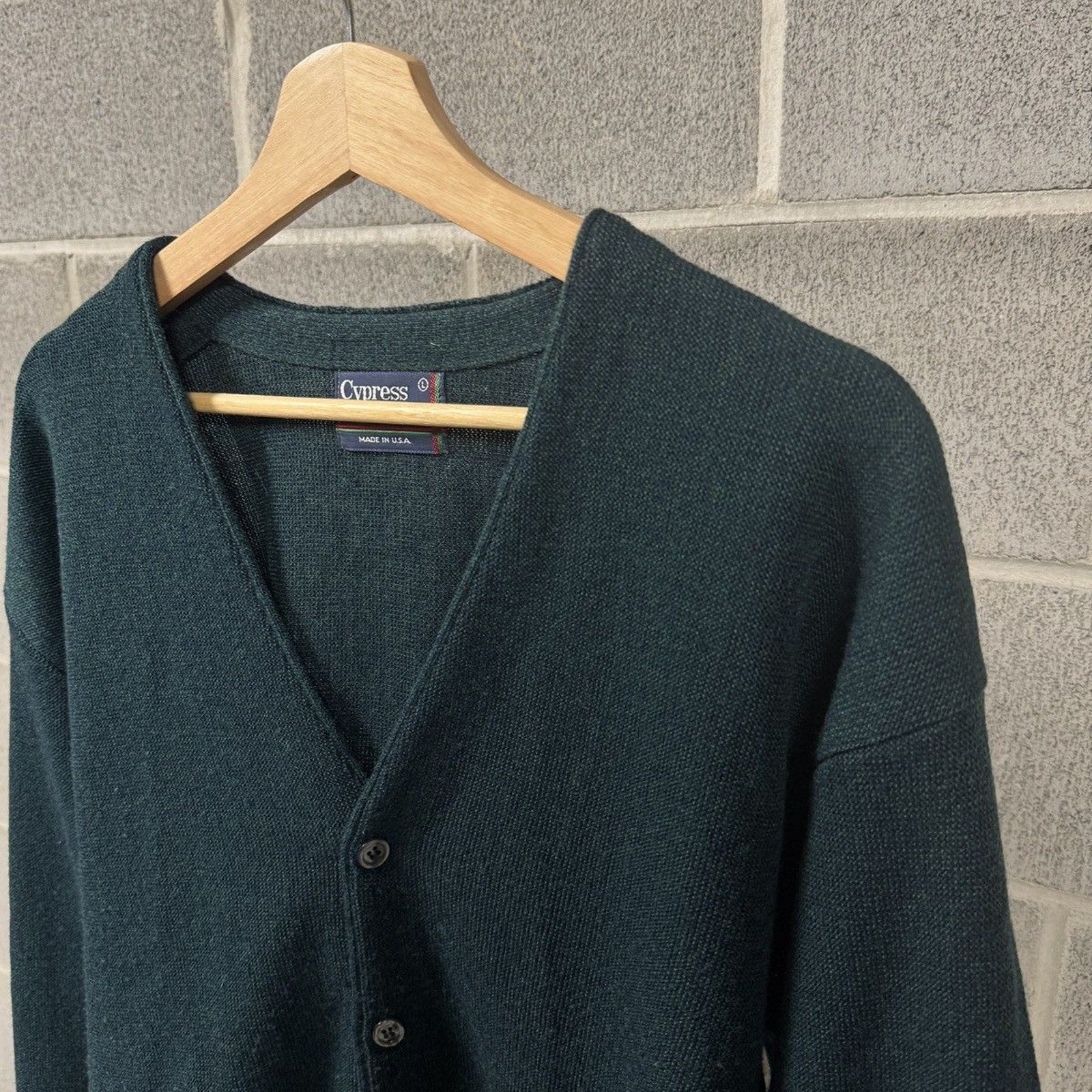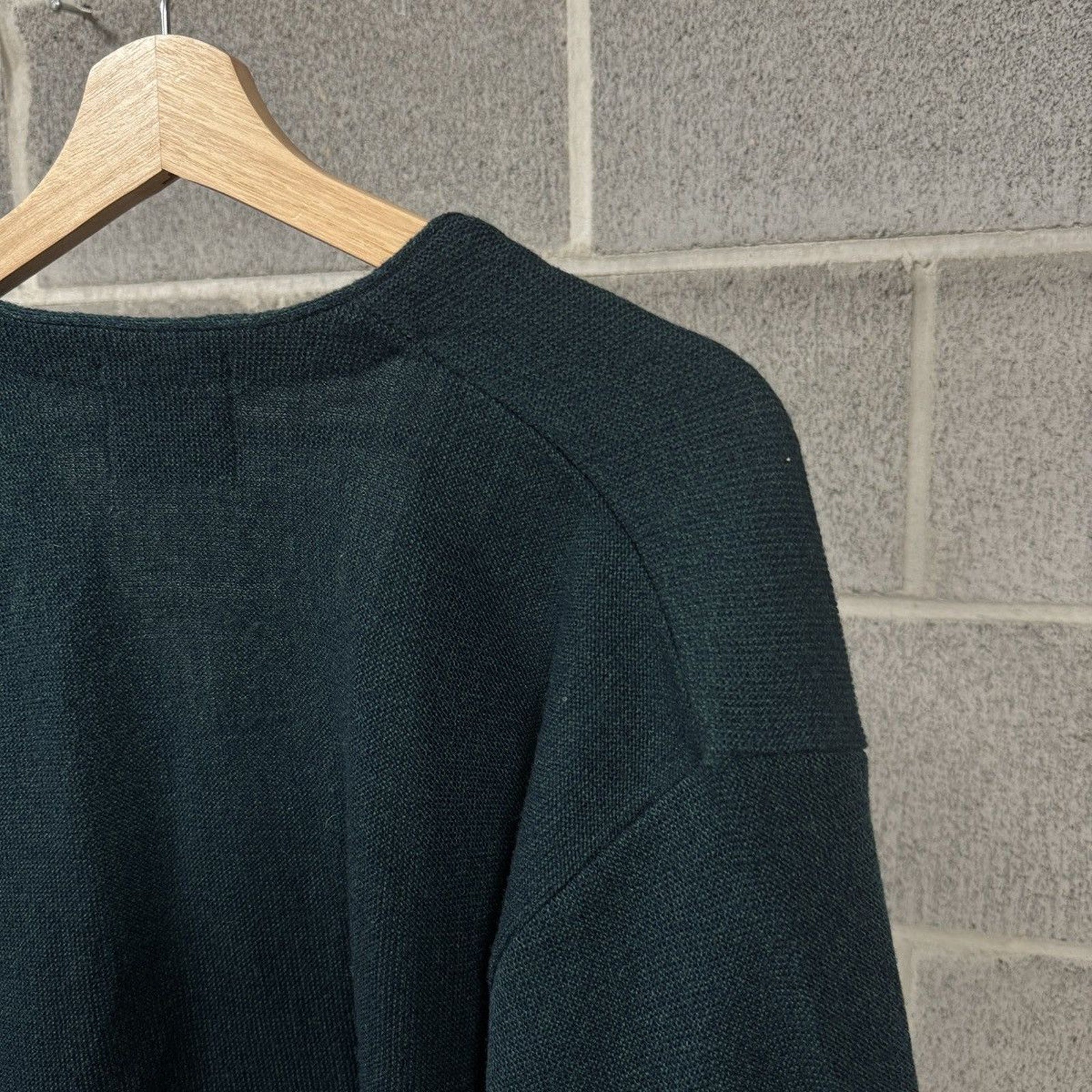 Great overall condition. acrylic cardigan. dark green with blue. so good