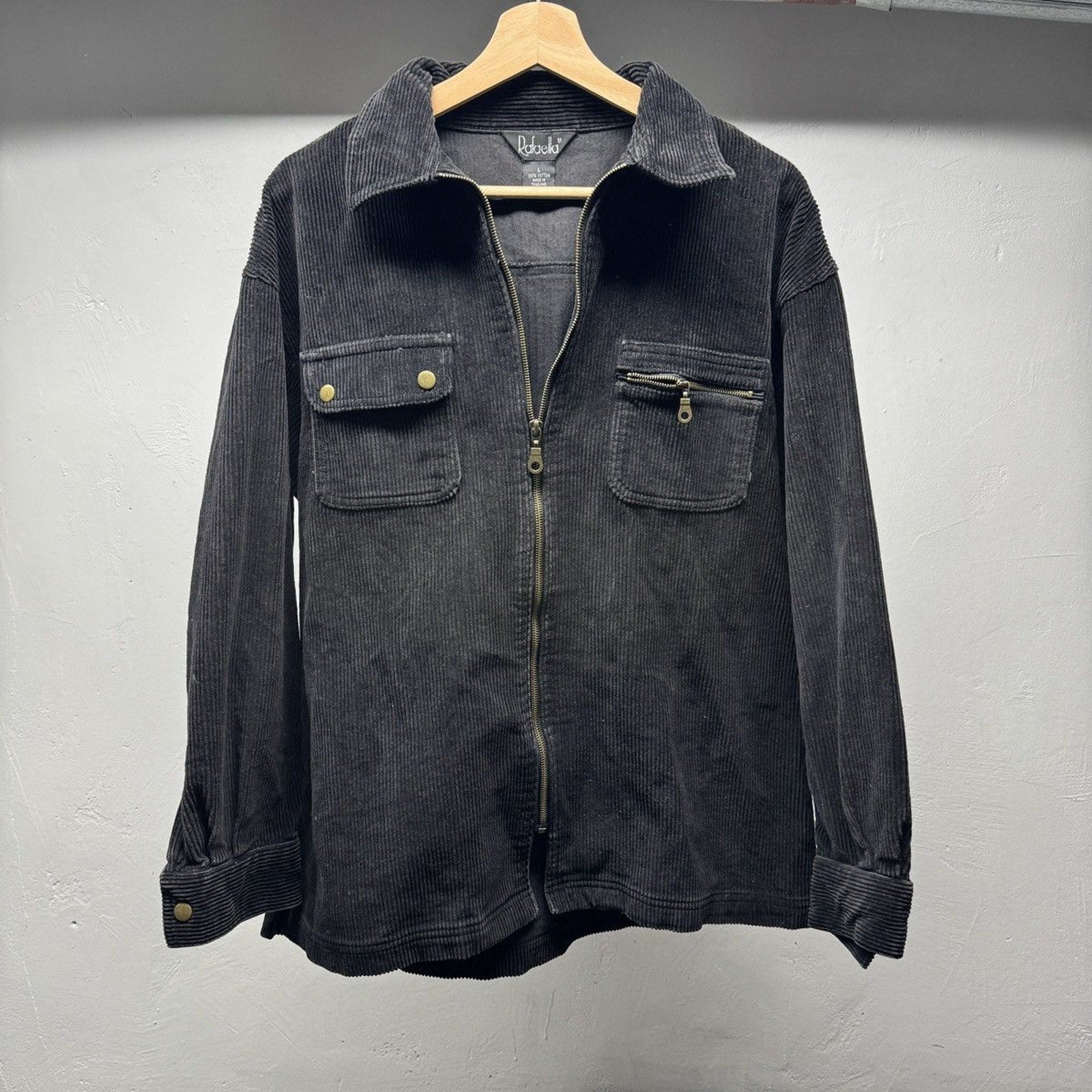 1990s Faded Black Corduroy Zip Up Shirt Jacket