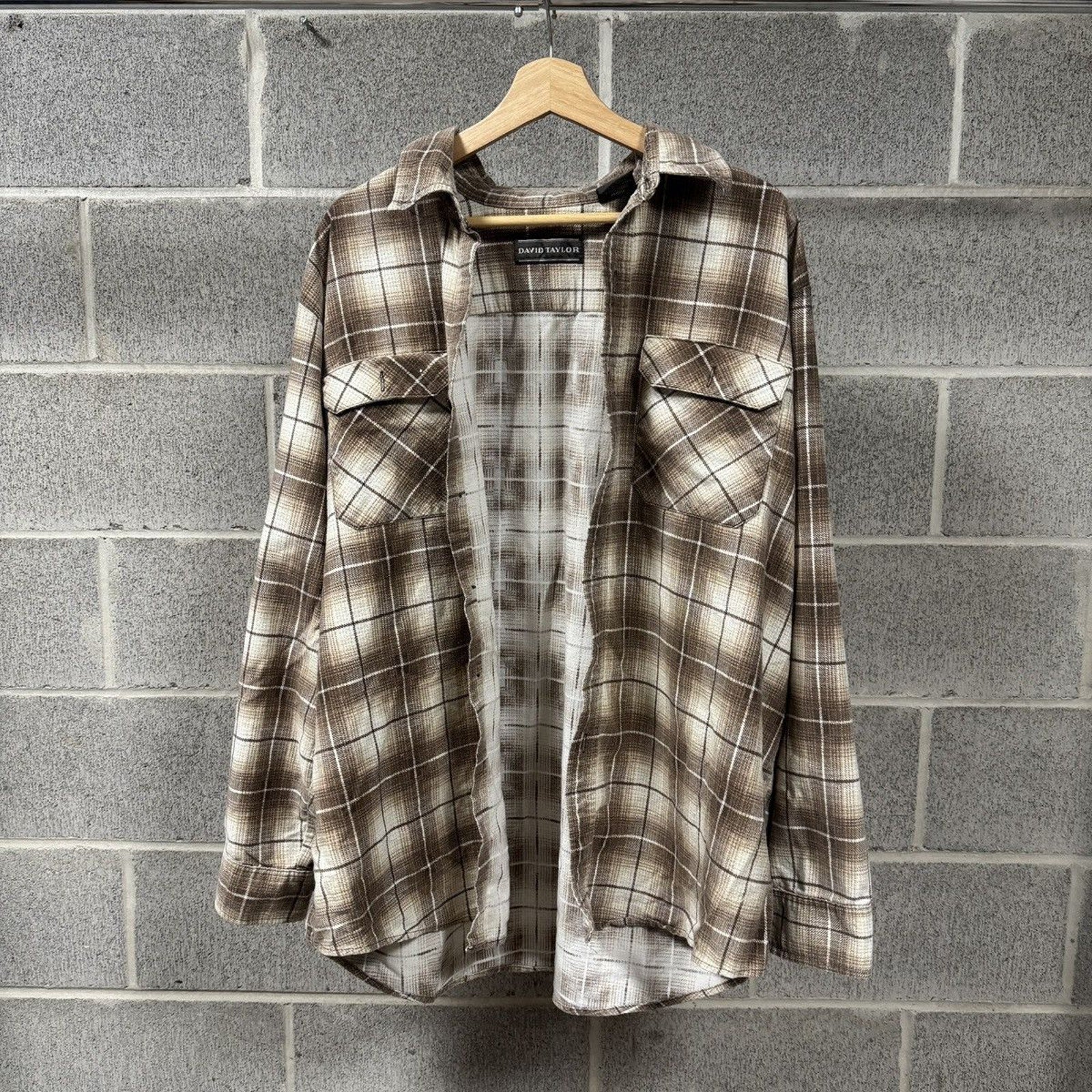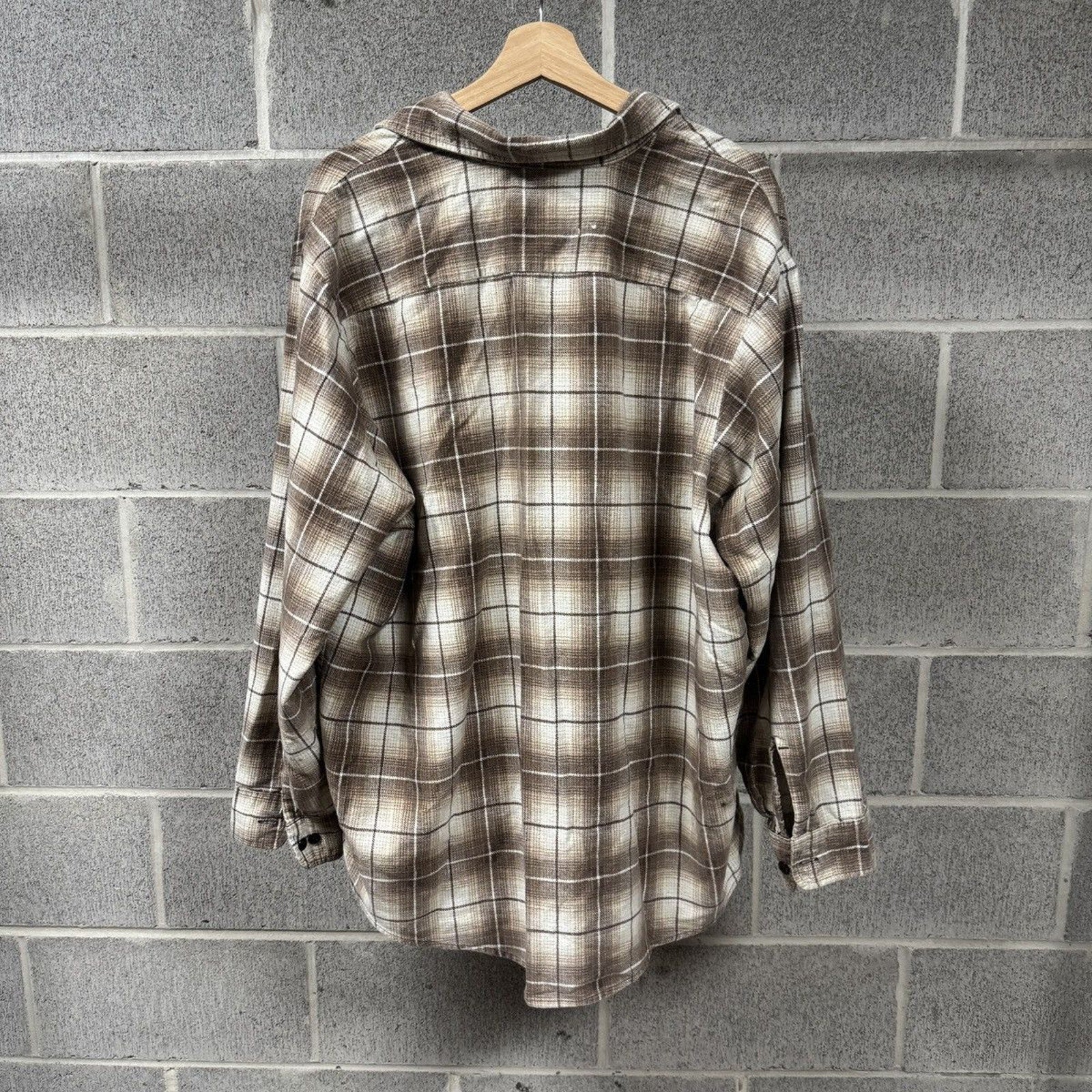 1990s Faded Brown Plaid Grunge Flannel Shirt
