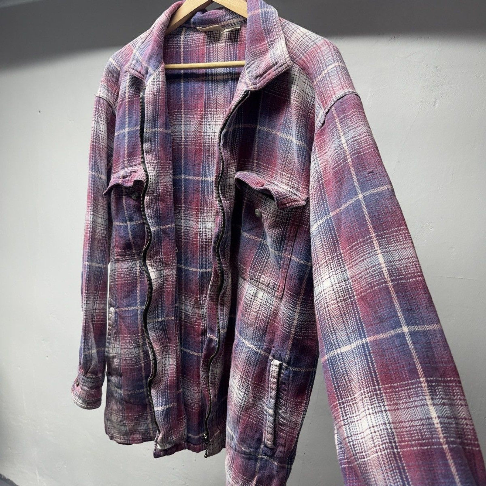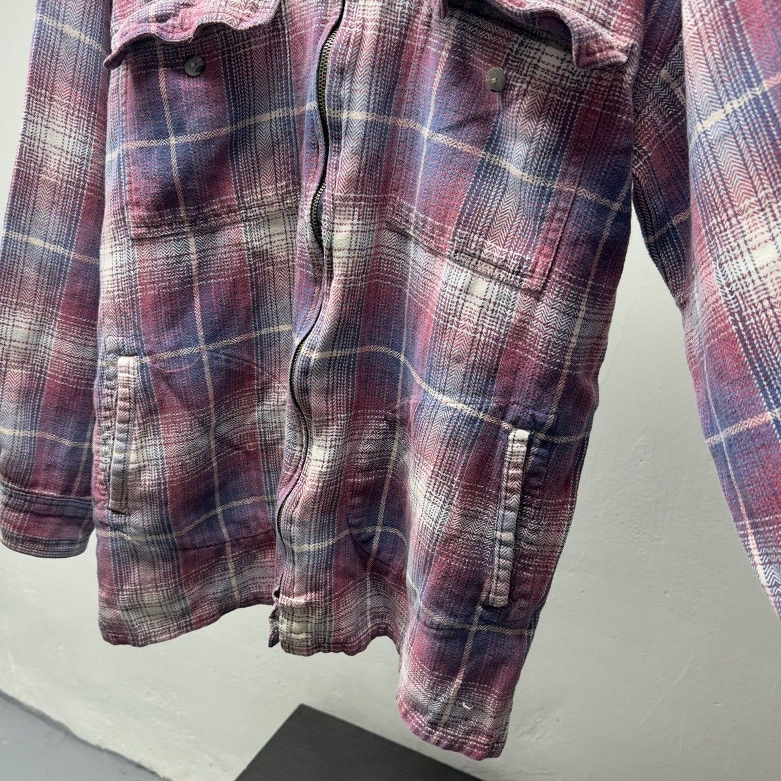 1990s Faded Distressed Plaid Grunge Zip Flannel Shirt
