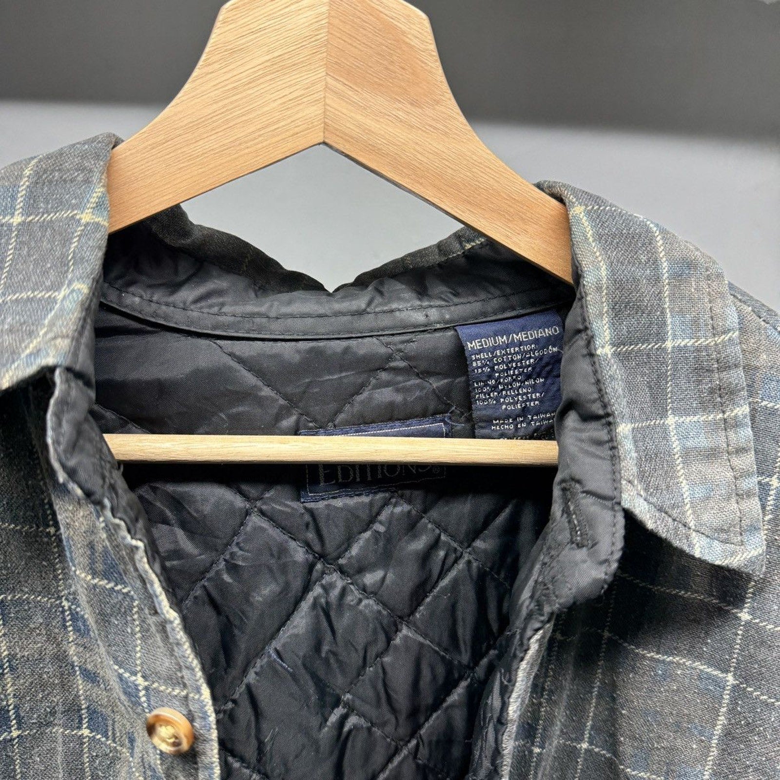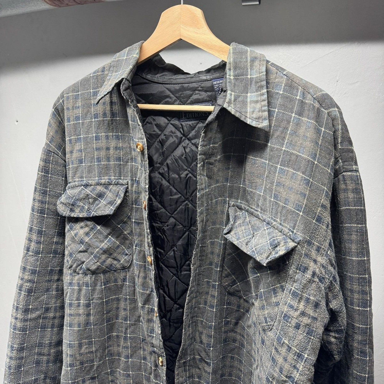 1990s Faded Distressed Quilted Plaid Grunge Flannel Shirt Jacket