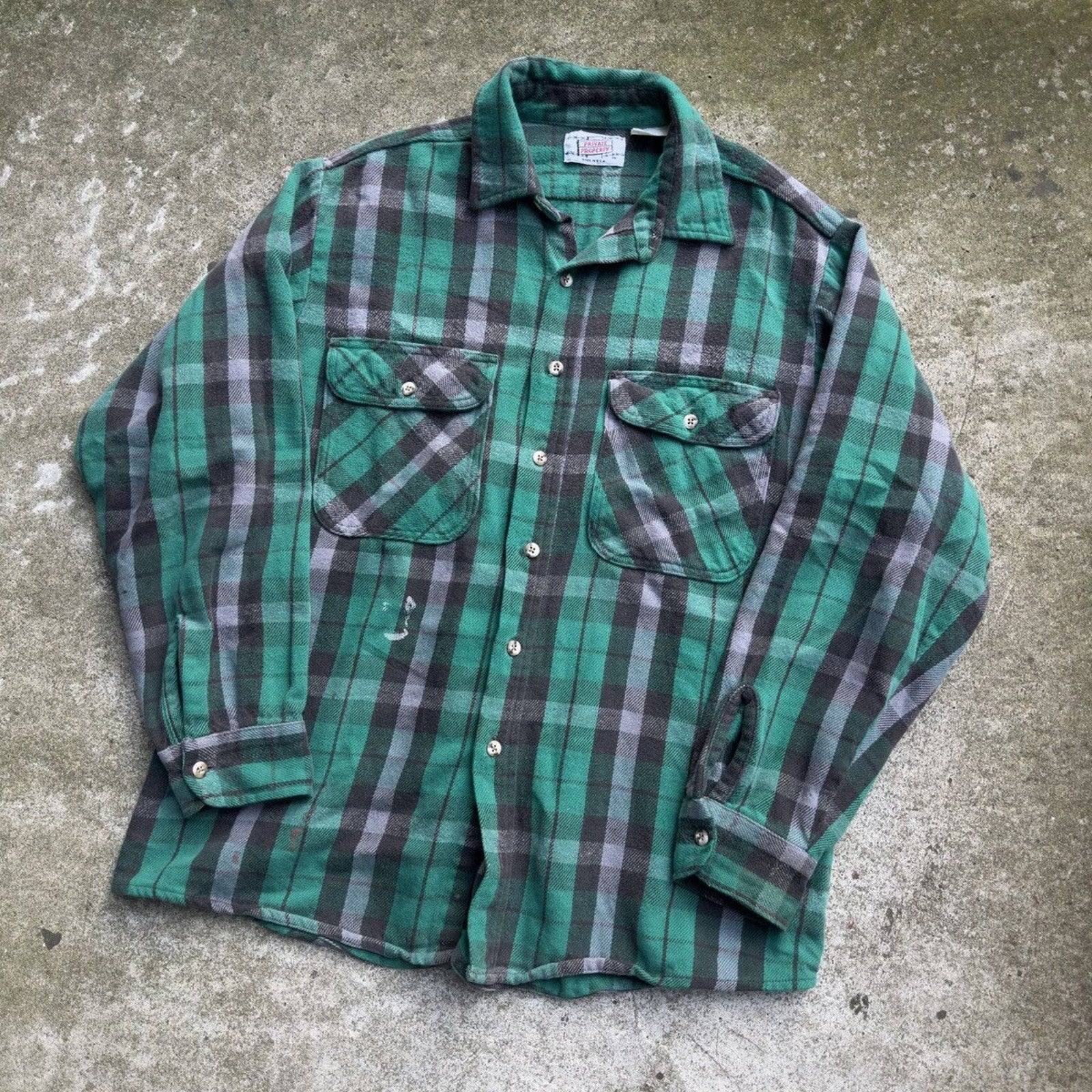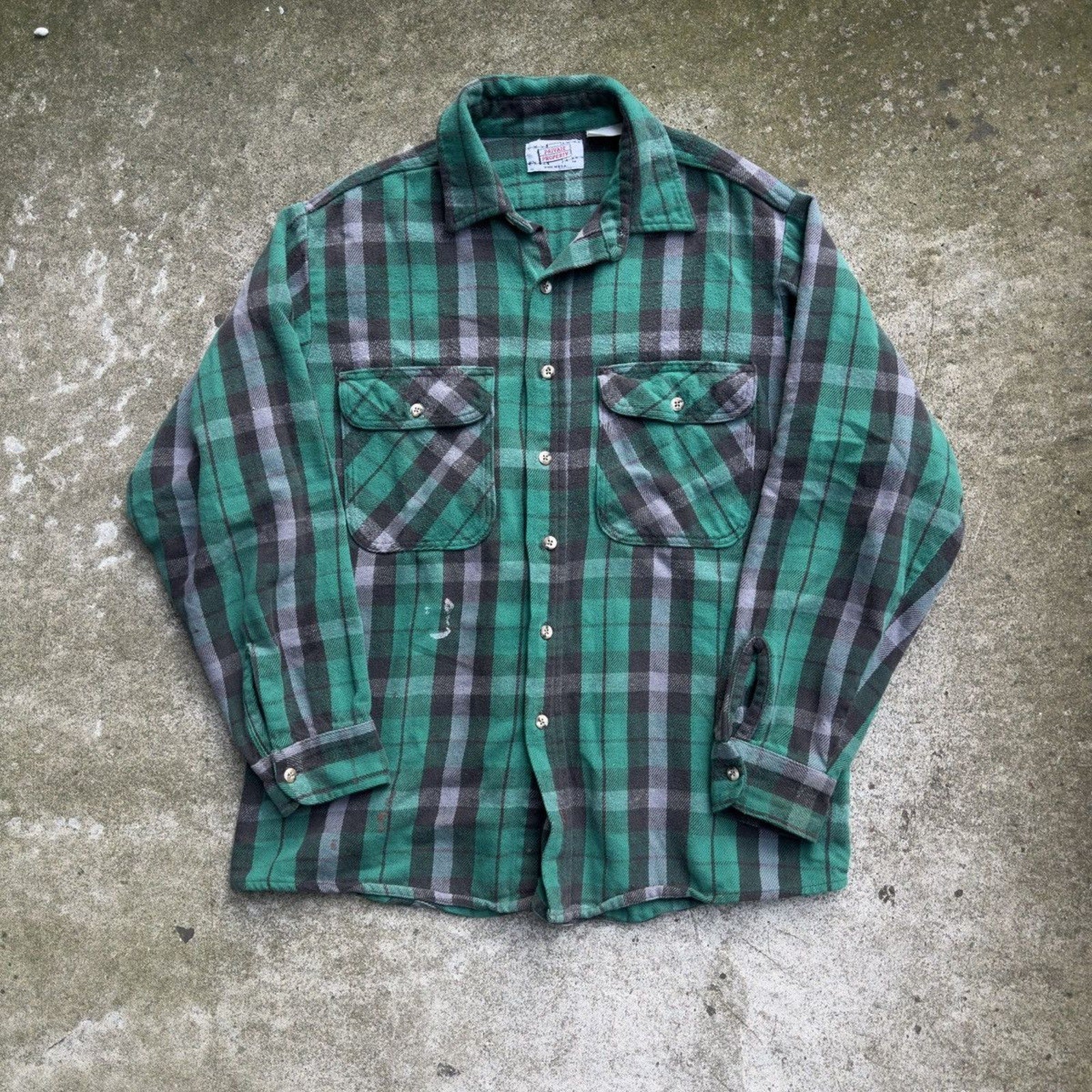 Our sizing is determined by the measurements taken by hand, rather than the tagged size on the garment. Many items, especially with vintage clothing, generally measures different than the tagged size on the article itself. A standard size large tee shirt from decades ago generally fits different than a standard size large in modern sizing, due to changes in manufacturing standards, different practices by brand, shrinkage, aging, varying fabrics & materials, etc.