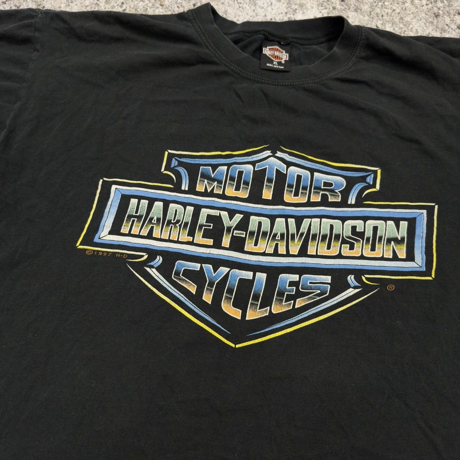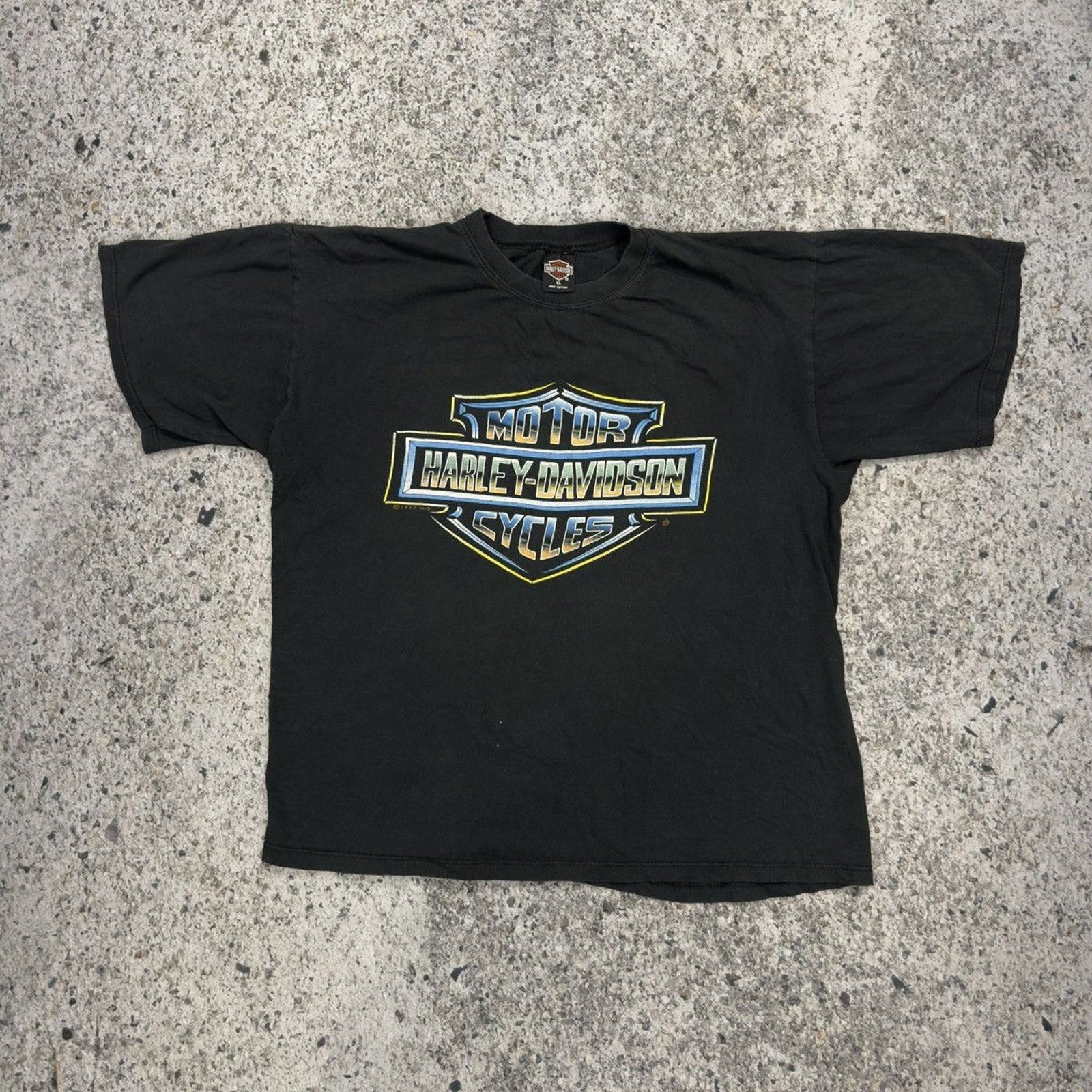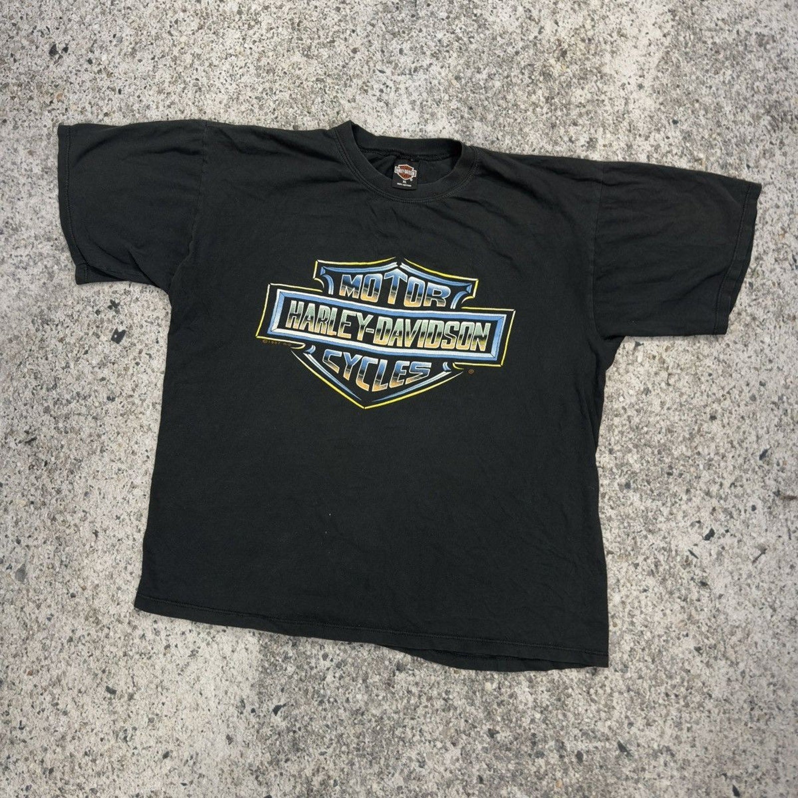 1990s Harley Davidson Faded Chrome Big Logo Tee