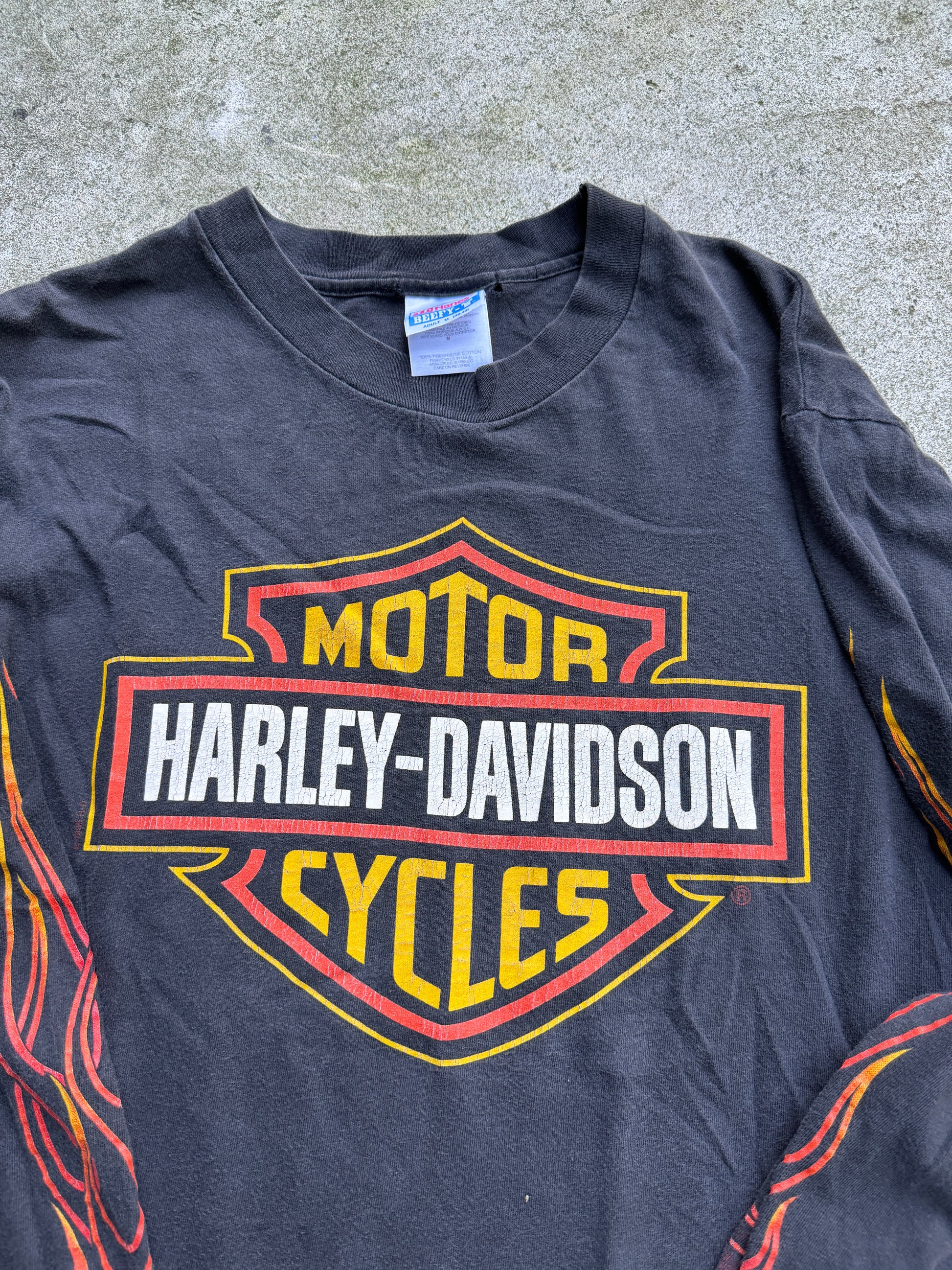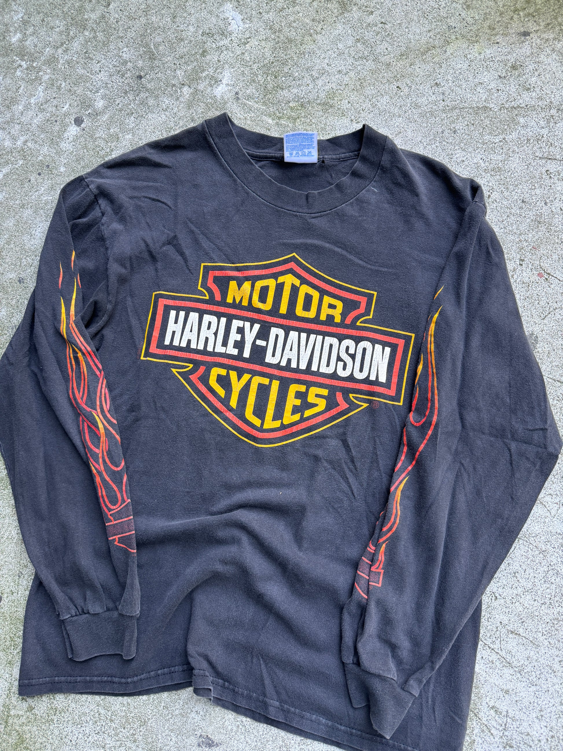 1990s HARLEY DAVIDSON FLAME LOGO LONGSLEEVE TEE