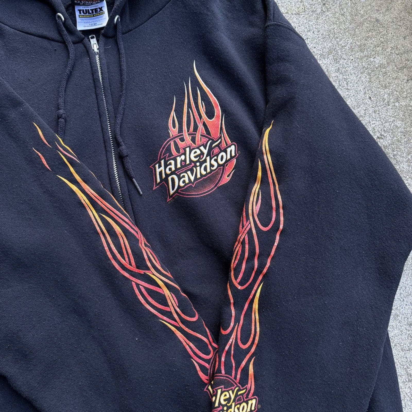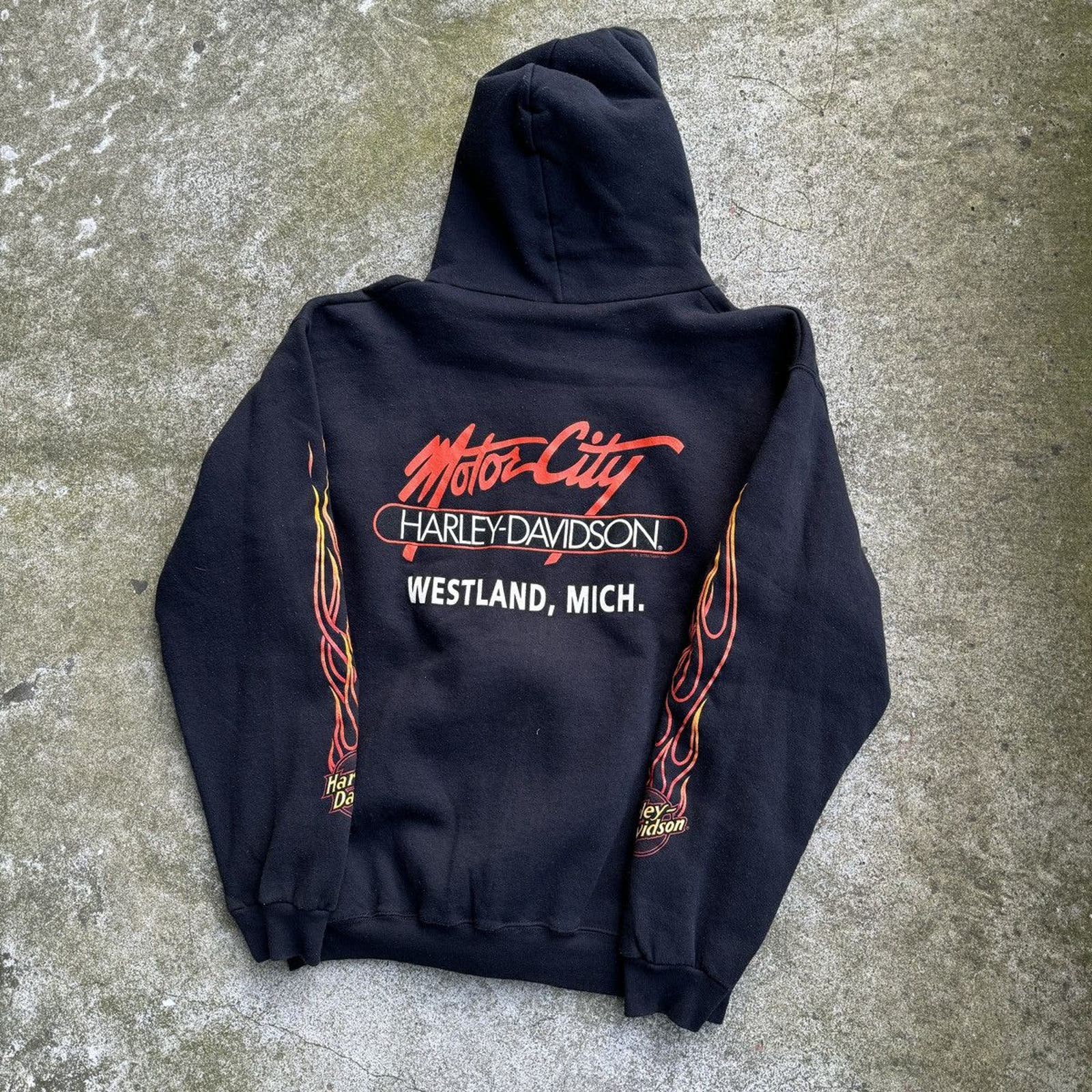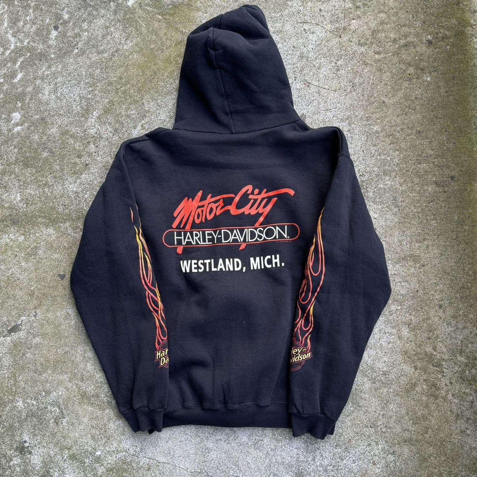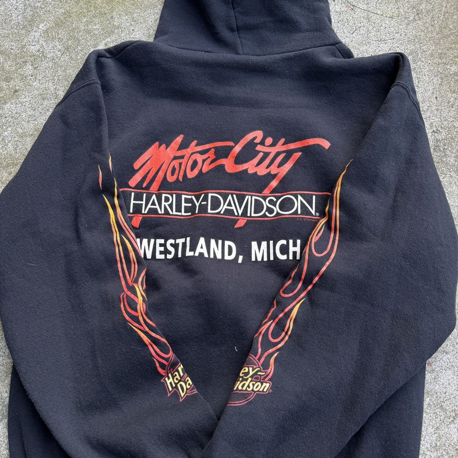 1990s HARLEY DAVIDSON MOTOR CITY FLAME ZIP UP HOODIE